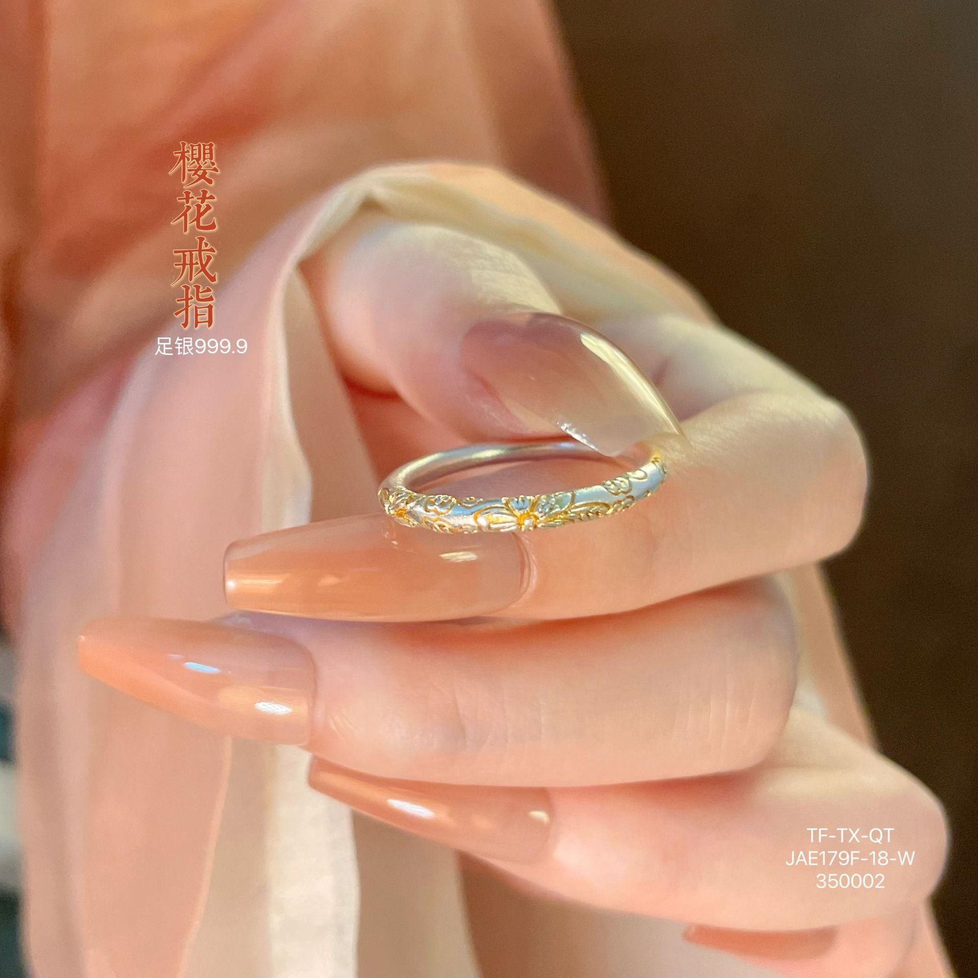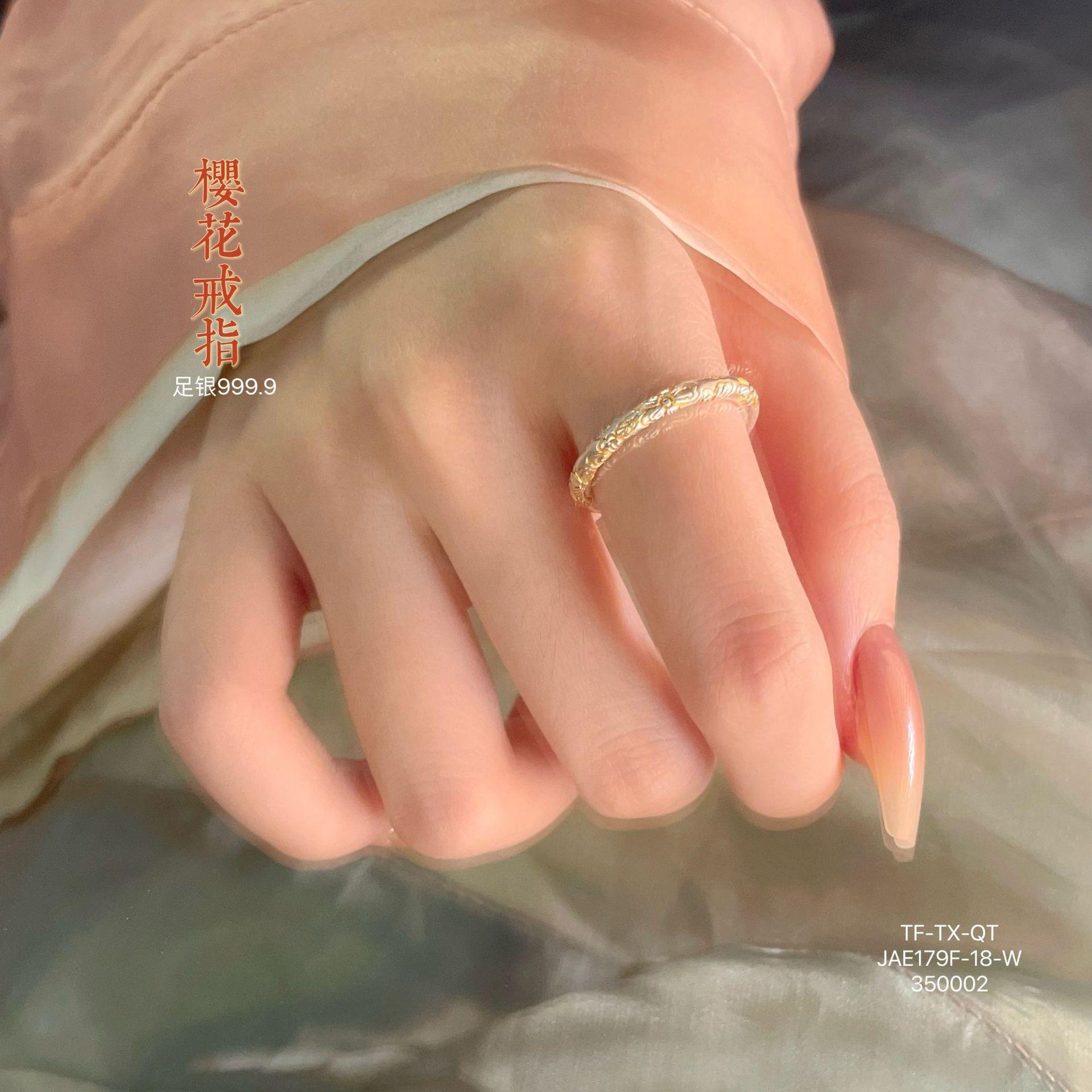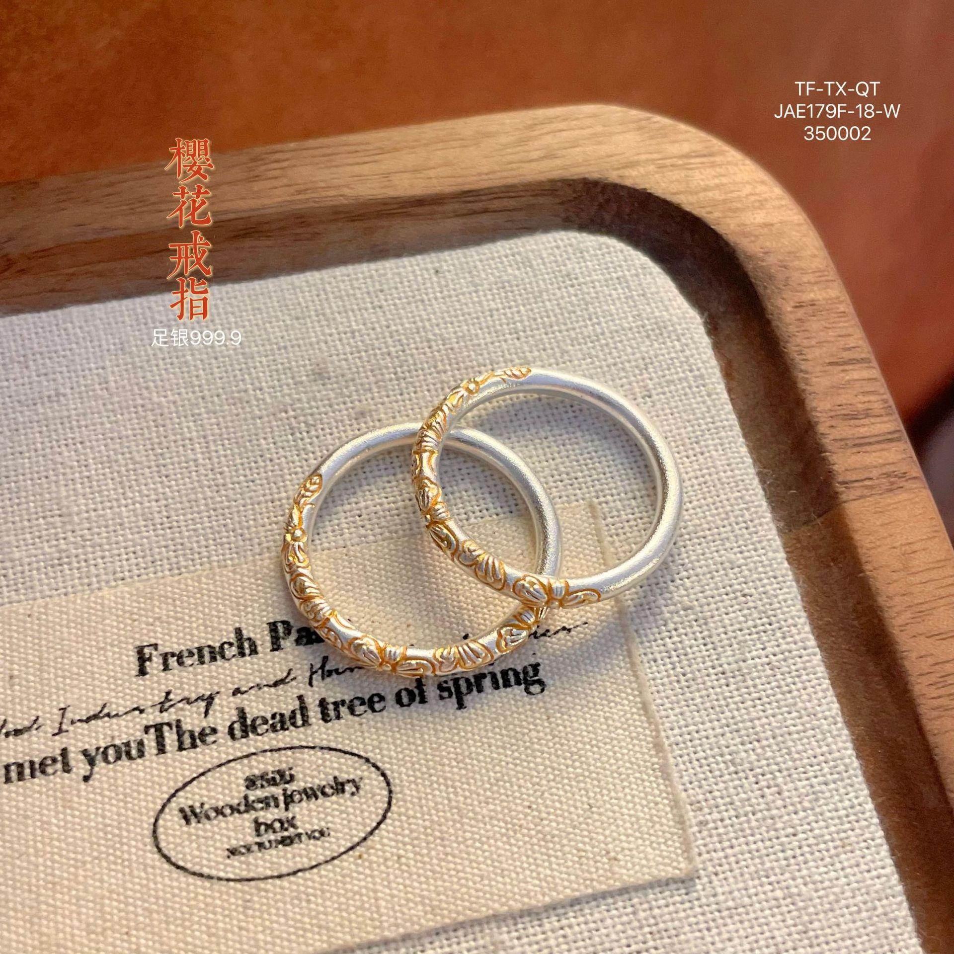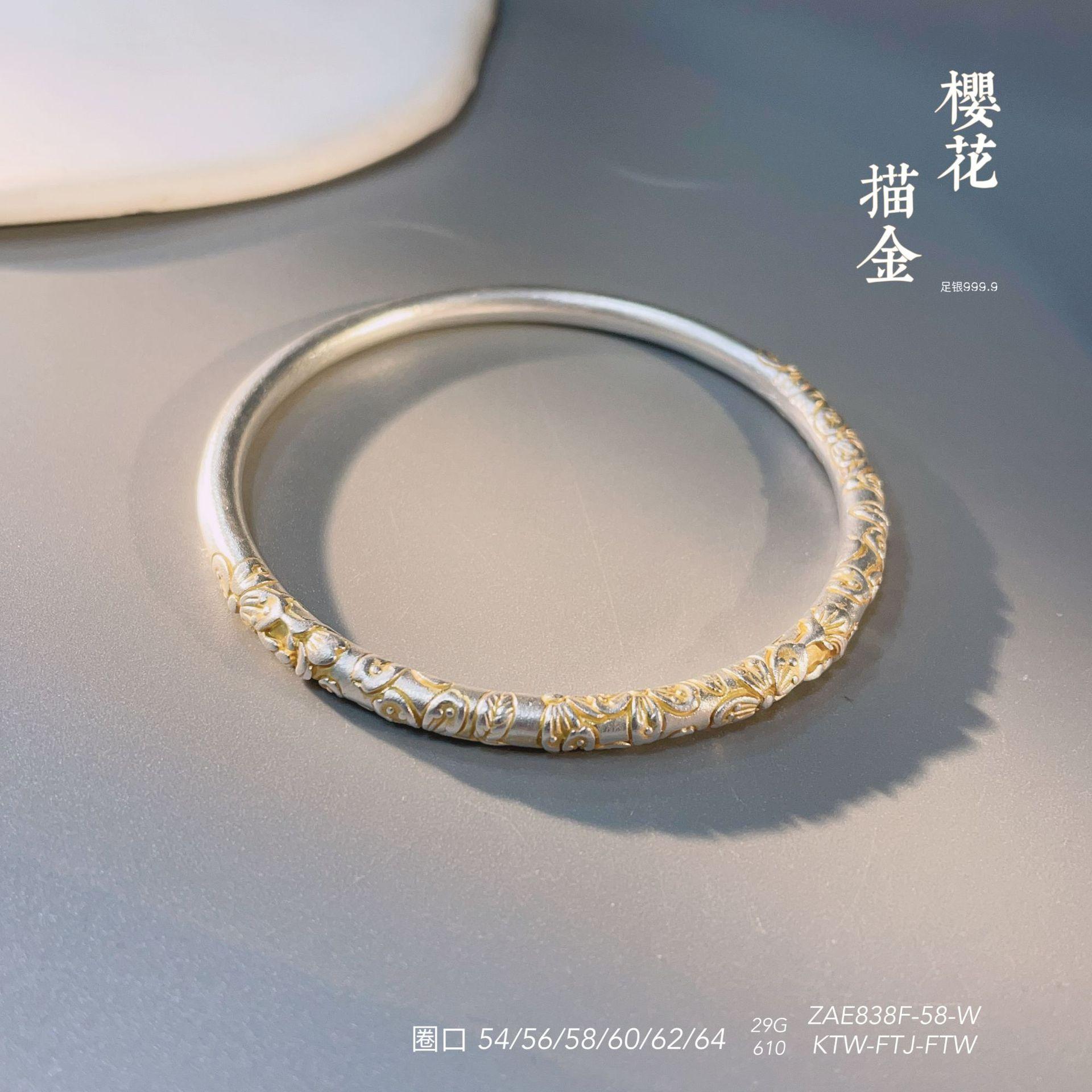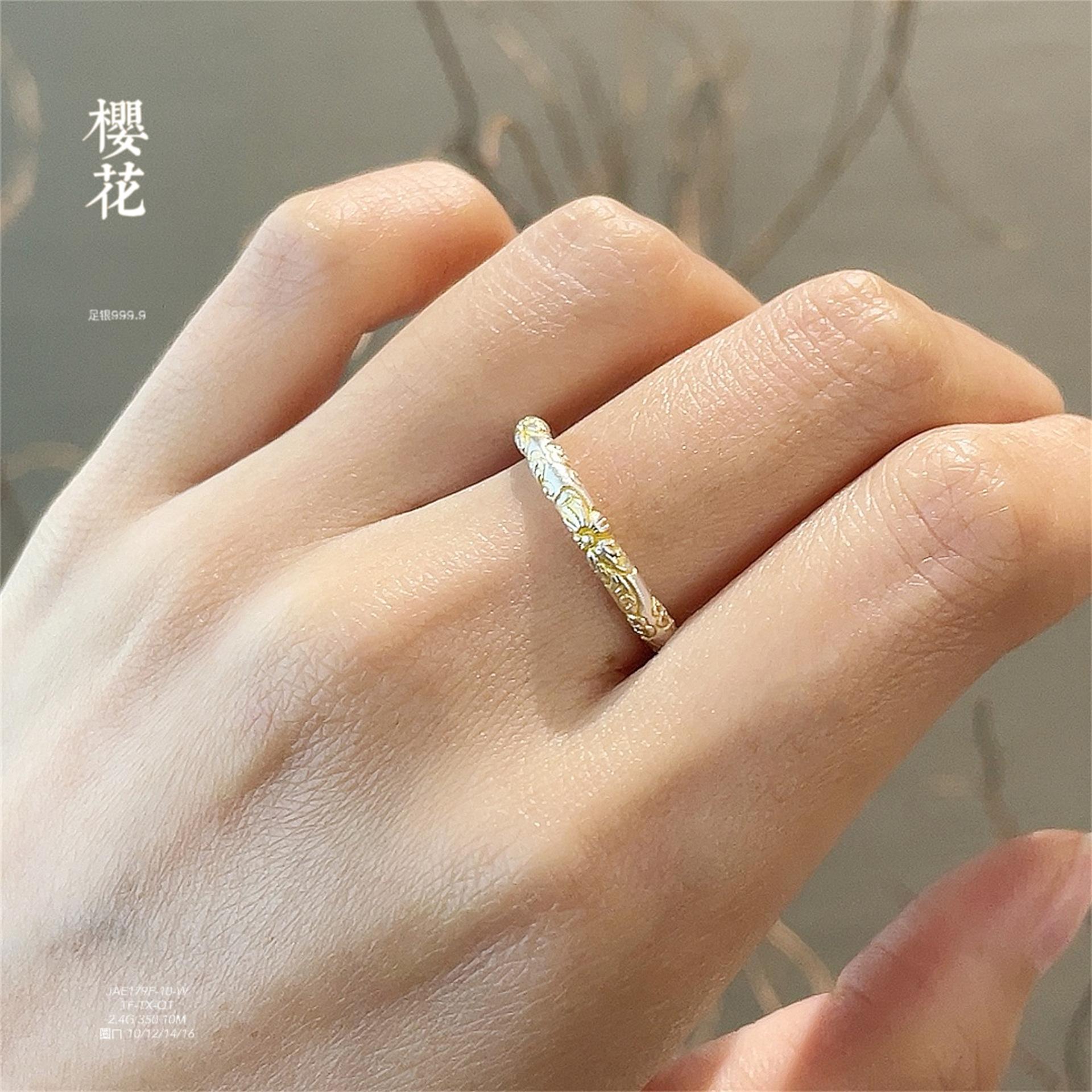 Anillo de pulsera cerrado con flor de cerezo en oro de 999,9 con pie de viento y rollo de plata para mujer, regalo para madre, estilo antiguo.