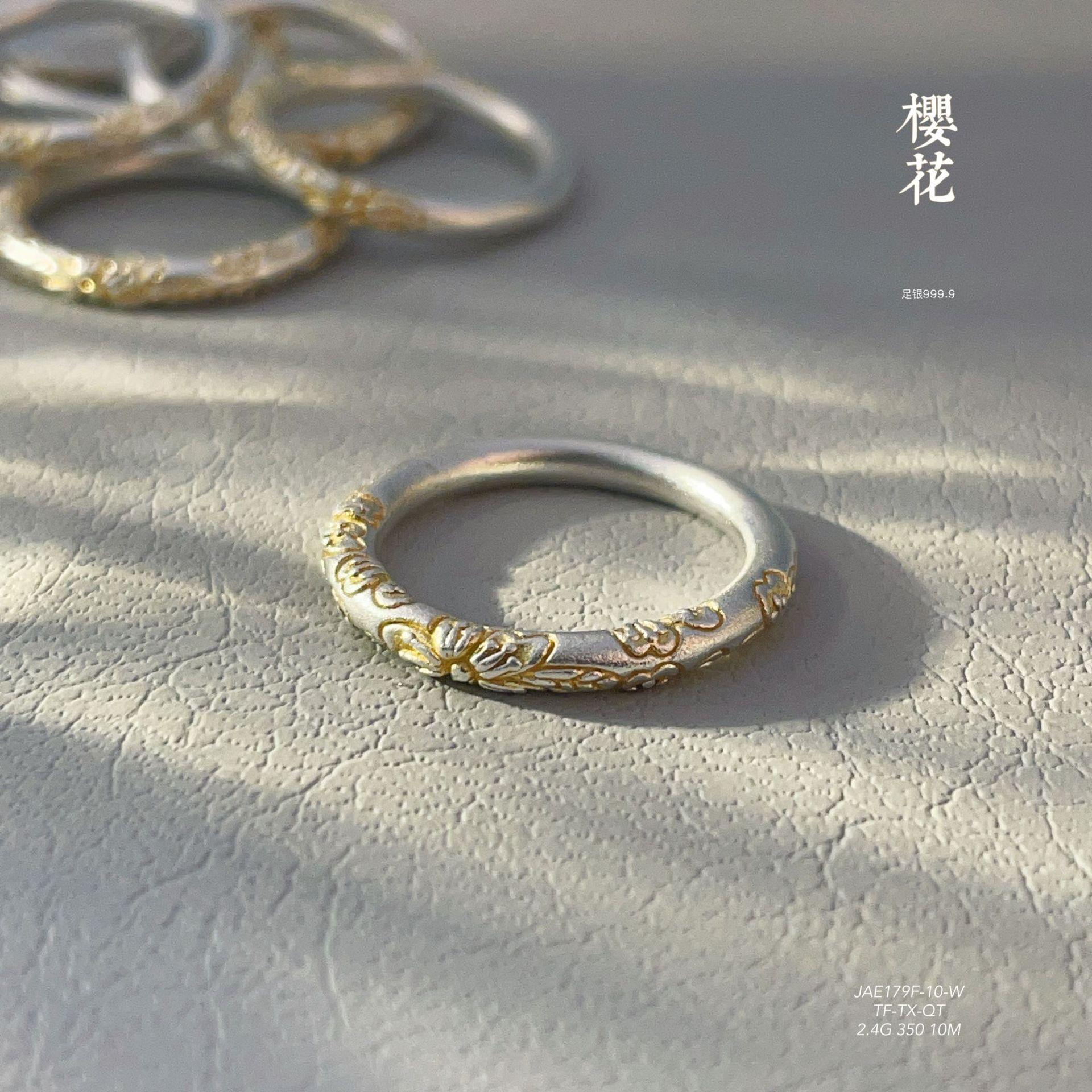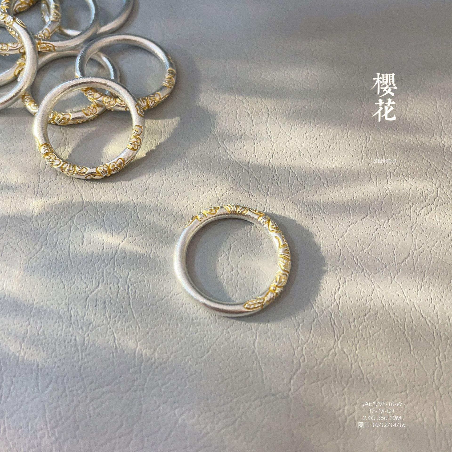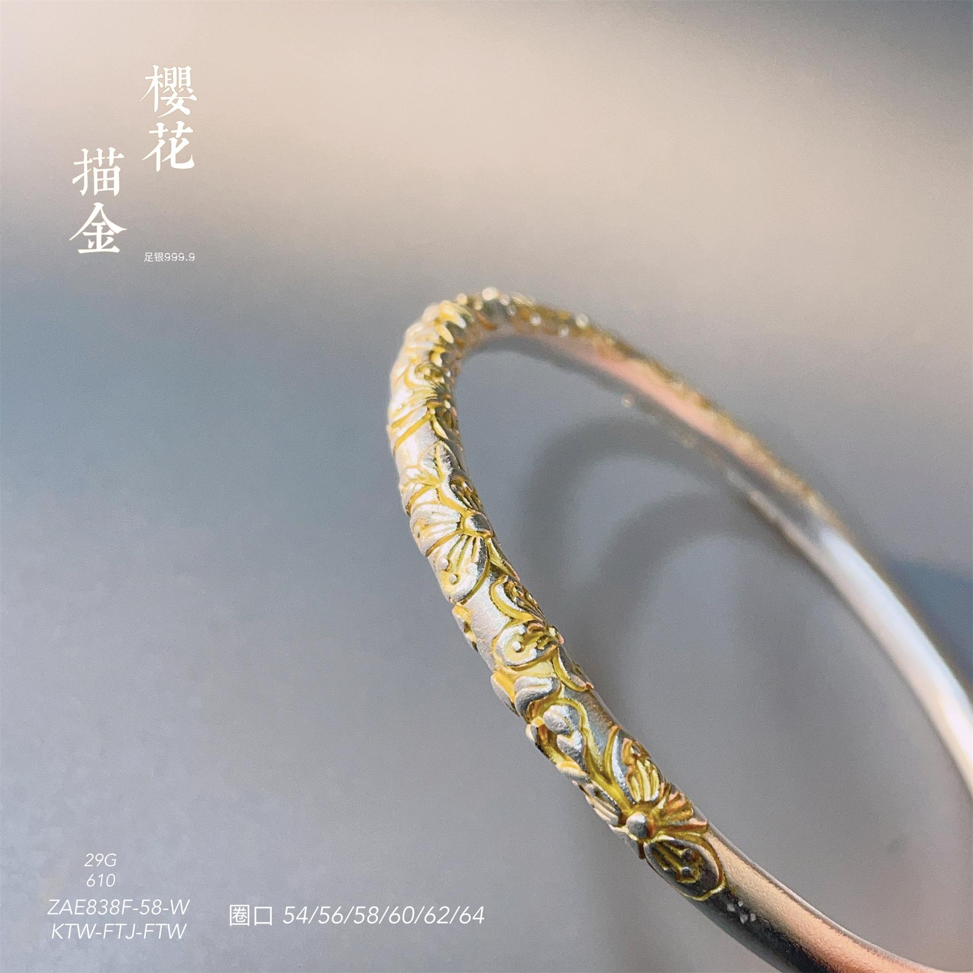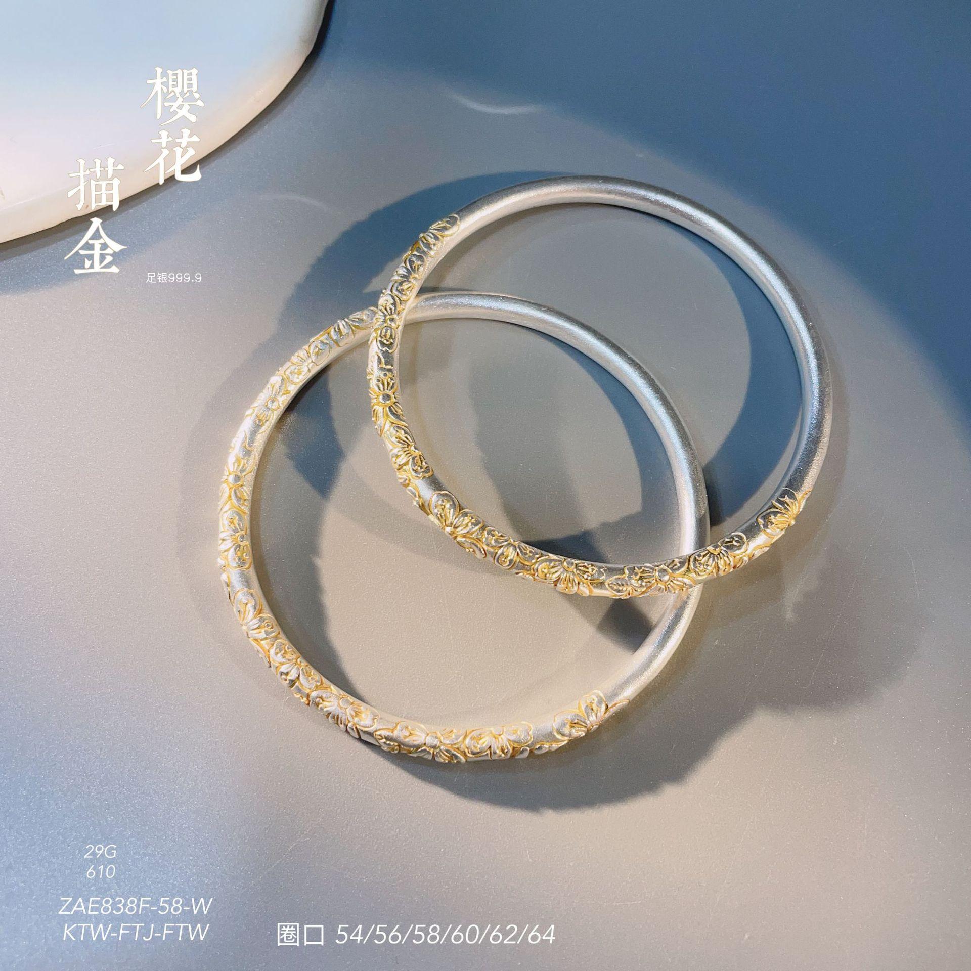 Anillo de pulsera cerrado con flor de cerezo en oro de 999,9 con pie de viento y rollo de plata para mujer, regalo para madre, estilo antiguo.