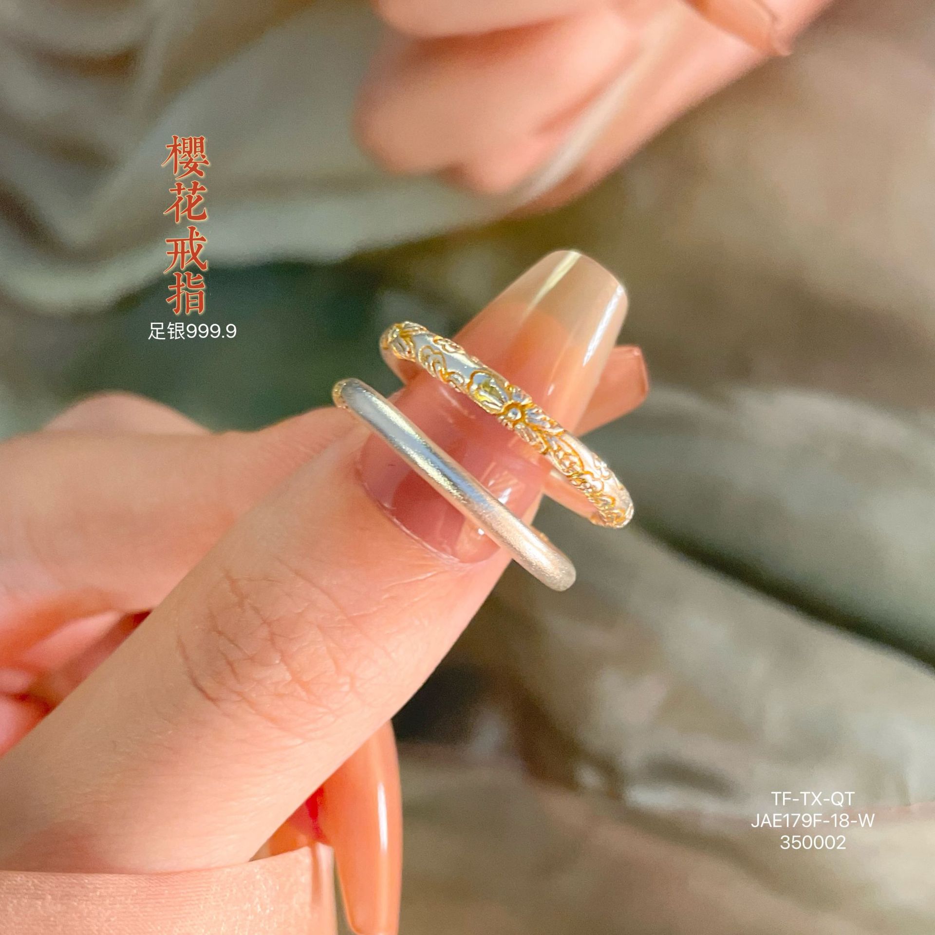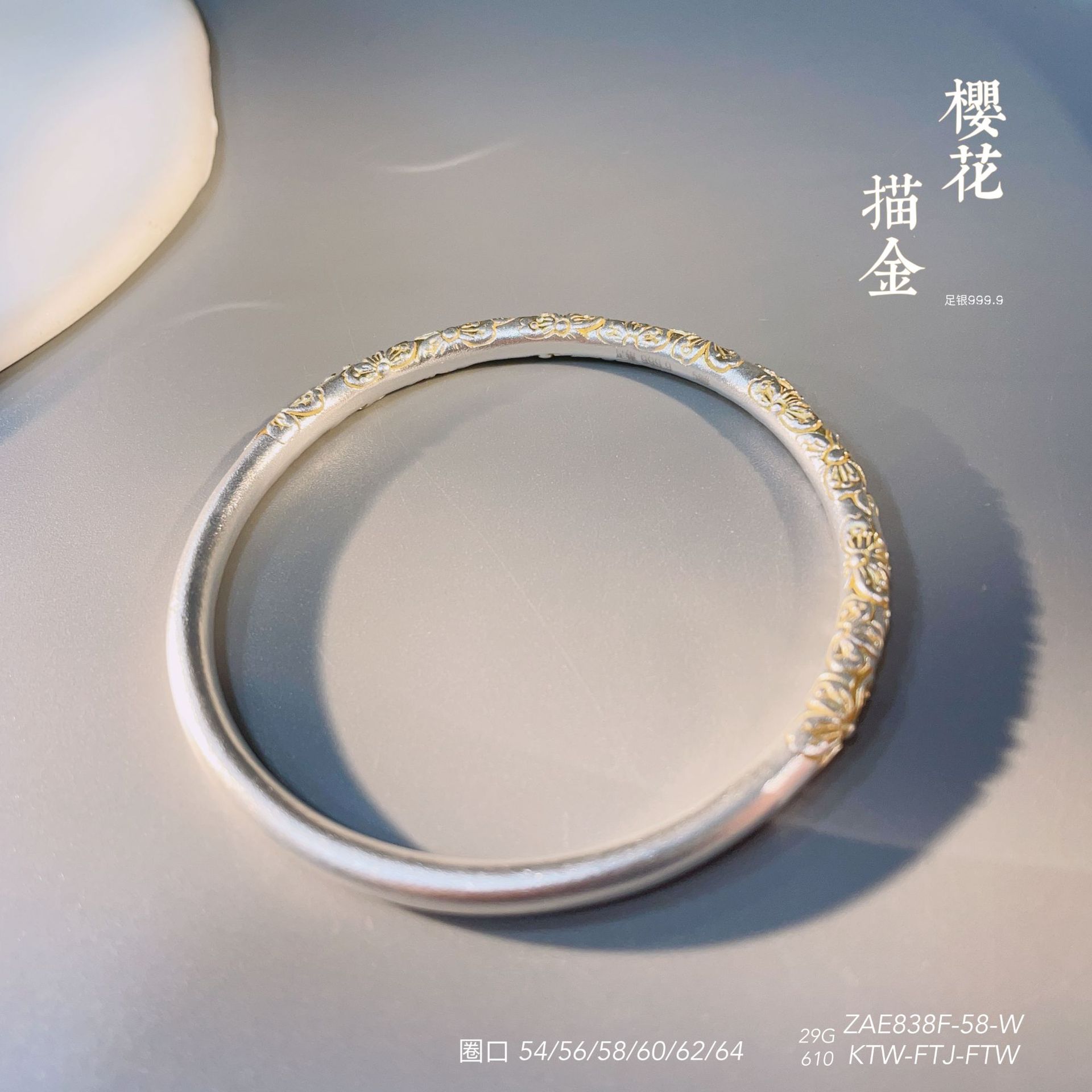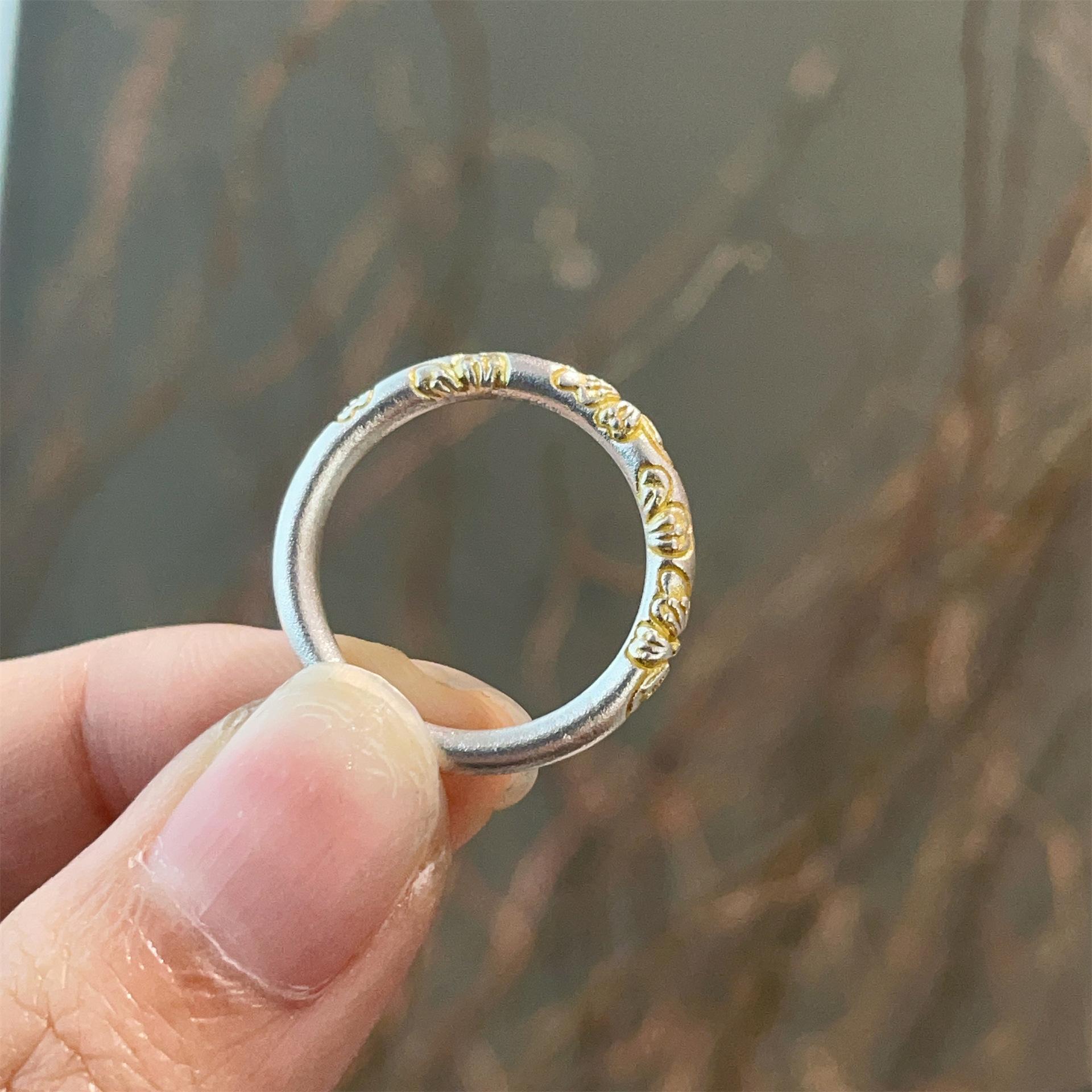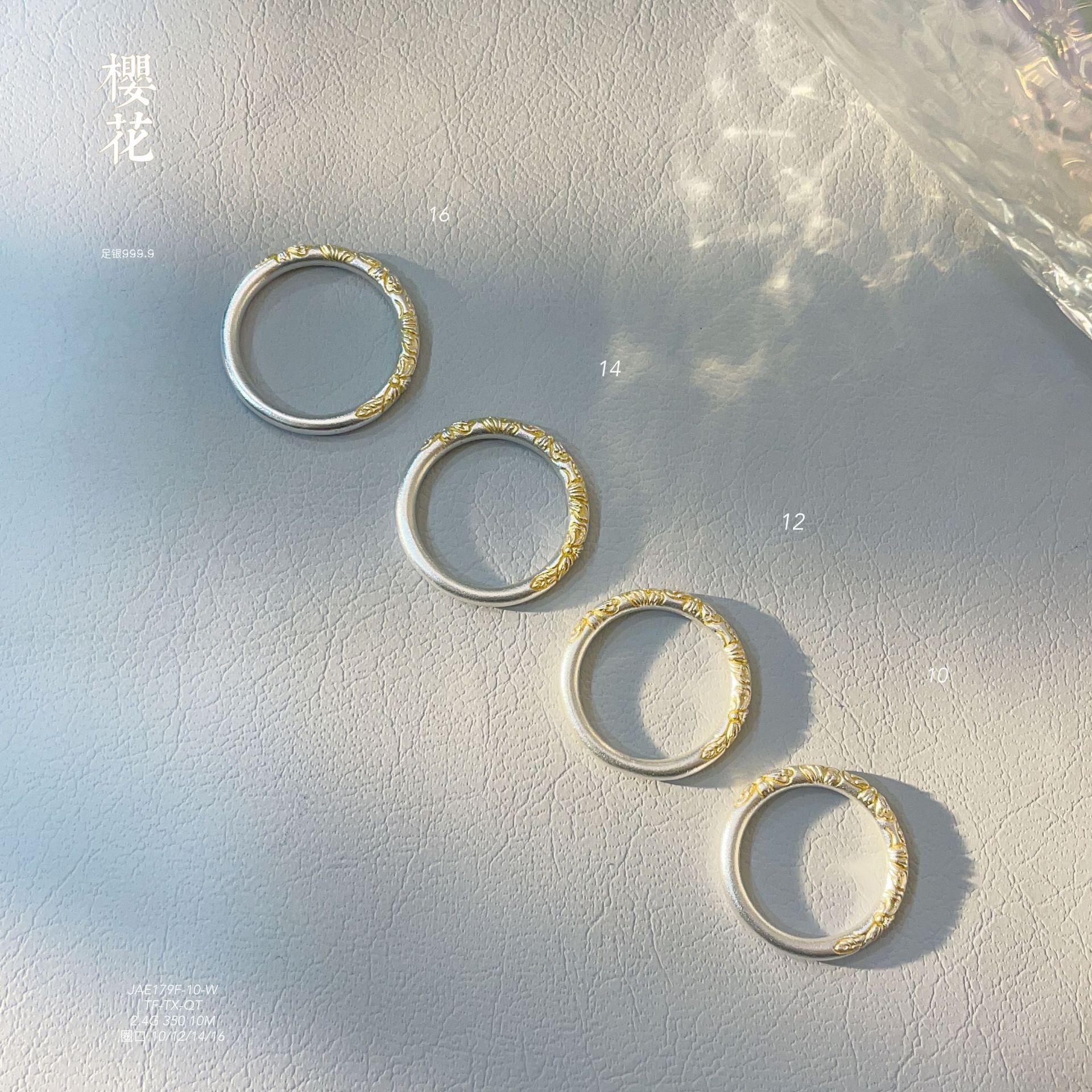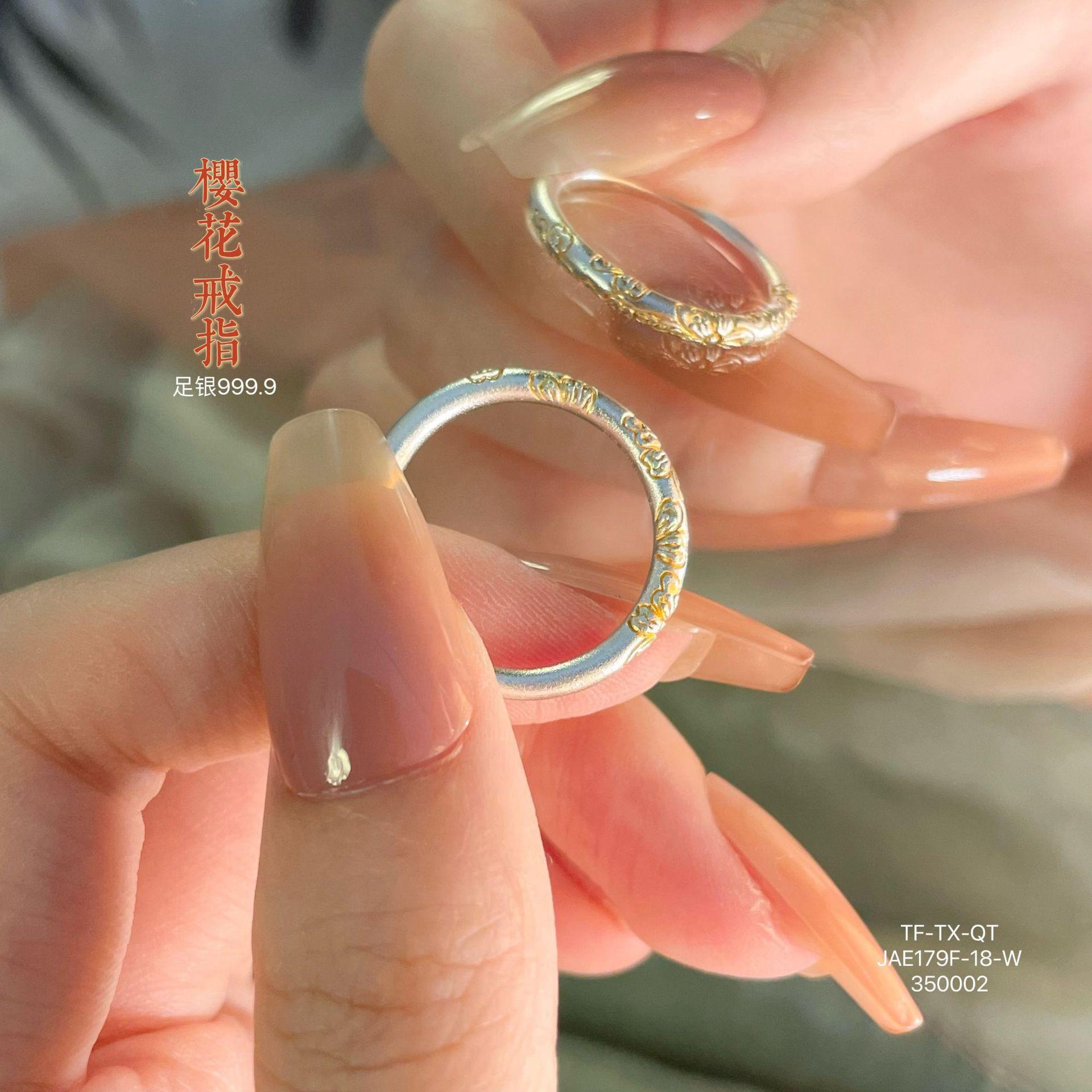 Anillo de pulsera cerrado con flor de cerezo en oro de 999,9 con pie de viento y rollo de plata para mujer, regalo para madre, estilo antiguo.