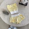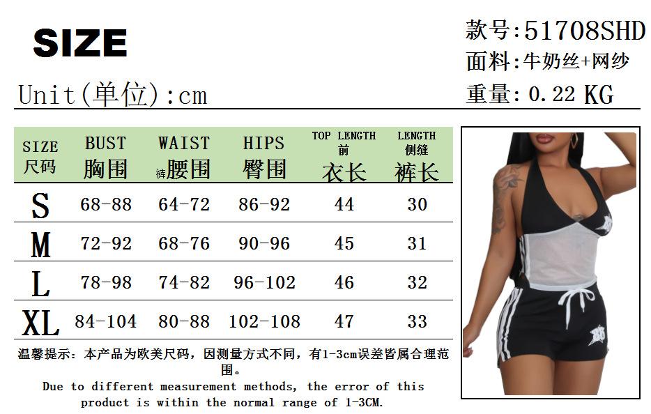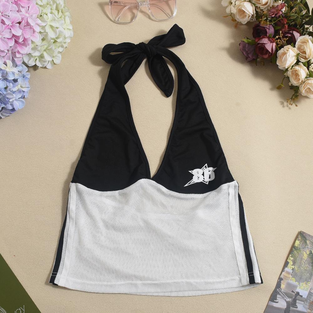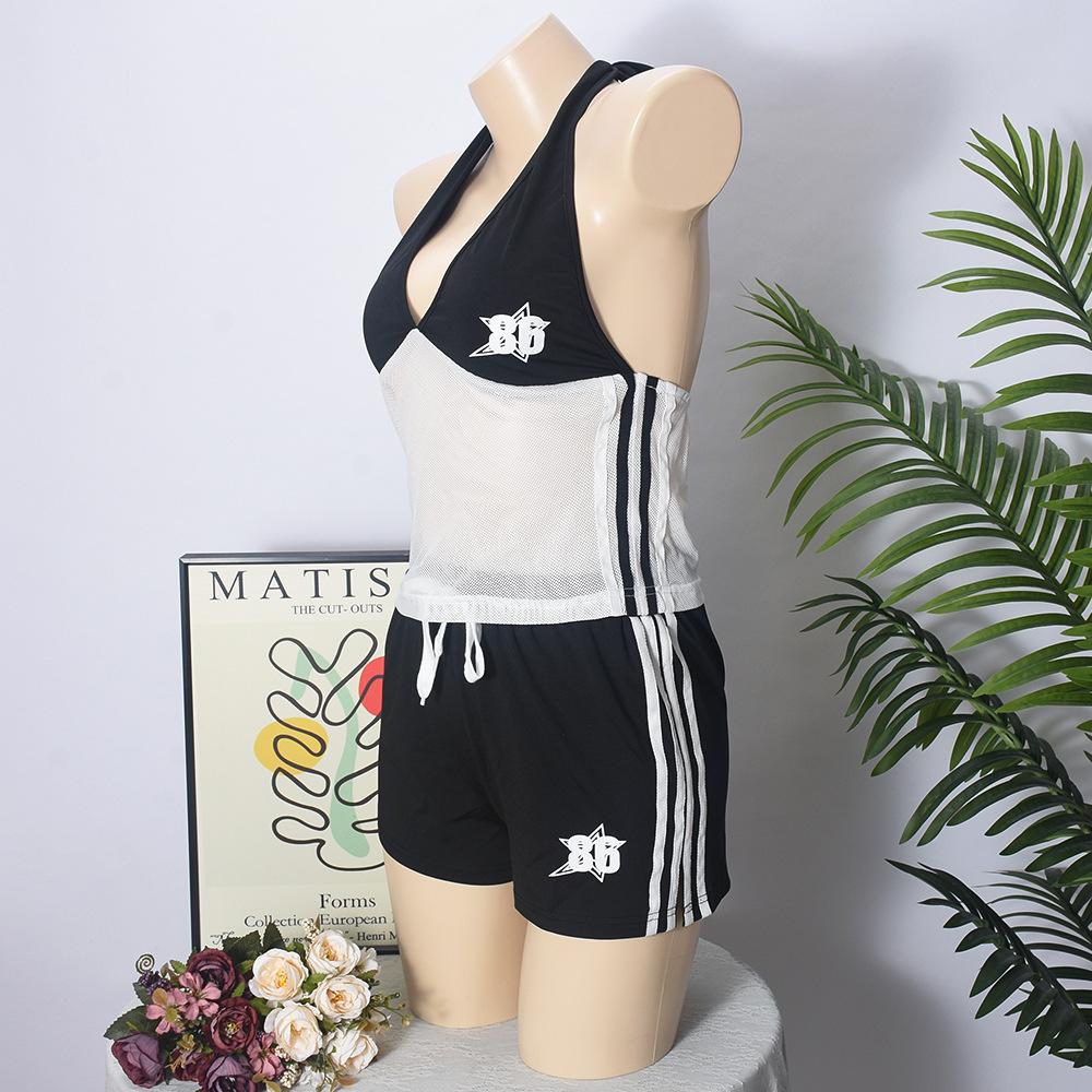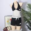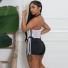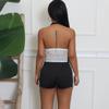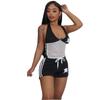 51708 Comercio exterior transfronterizo Ropa de mujer Conjunto de dos piezas de chaleco y pantalones cortos con tirantes sin espalda y contraste de color para mujer europea y americana