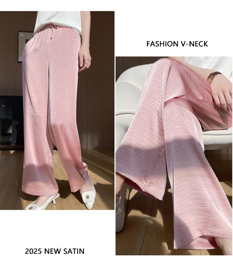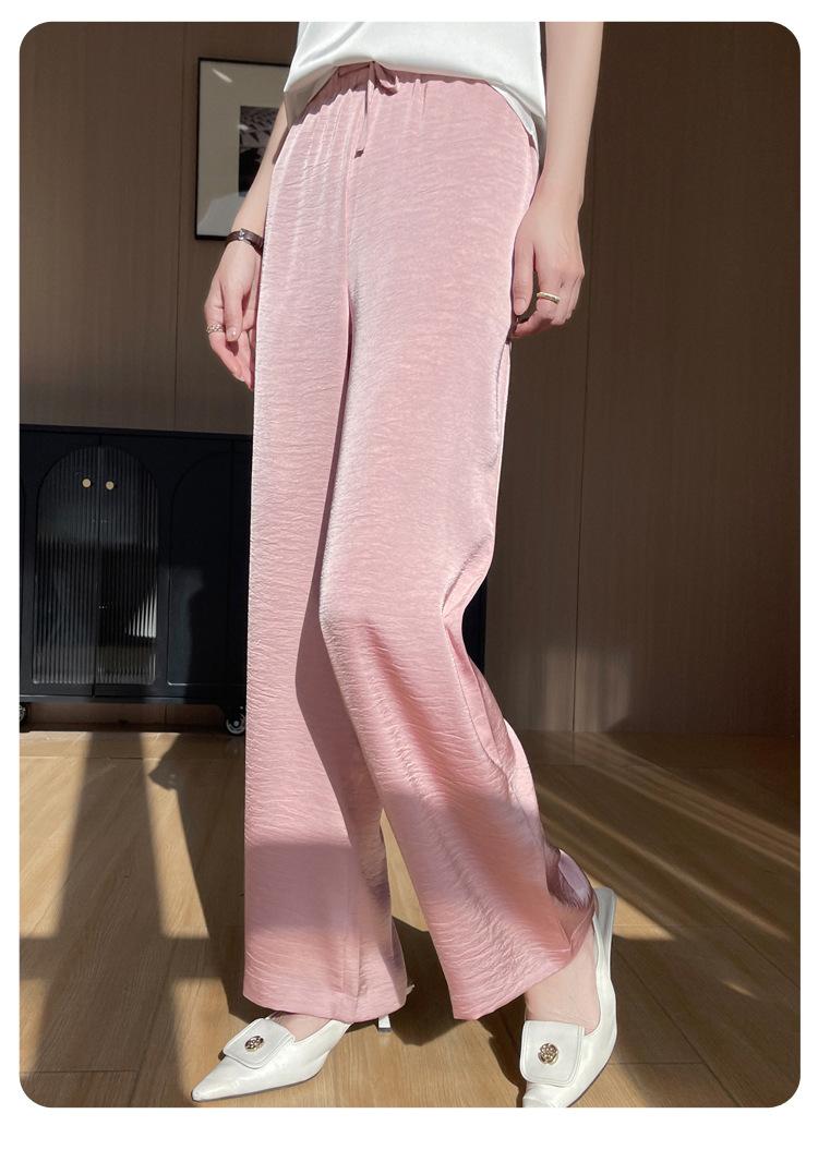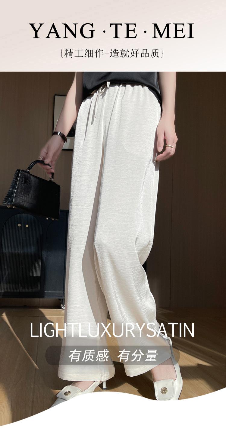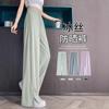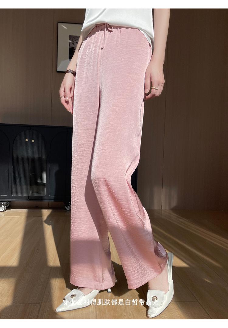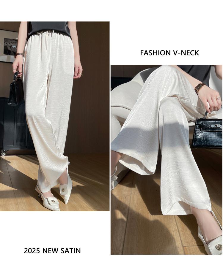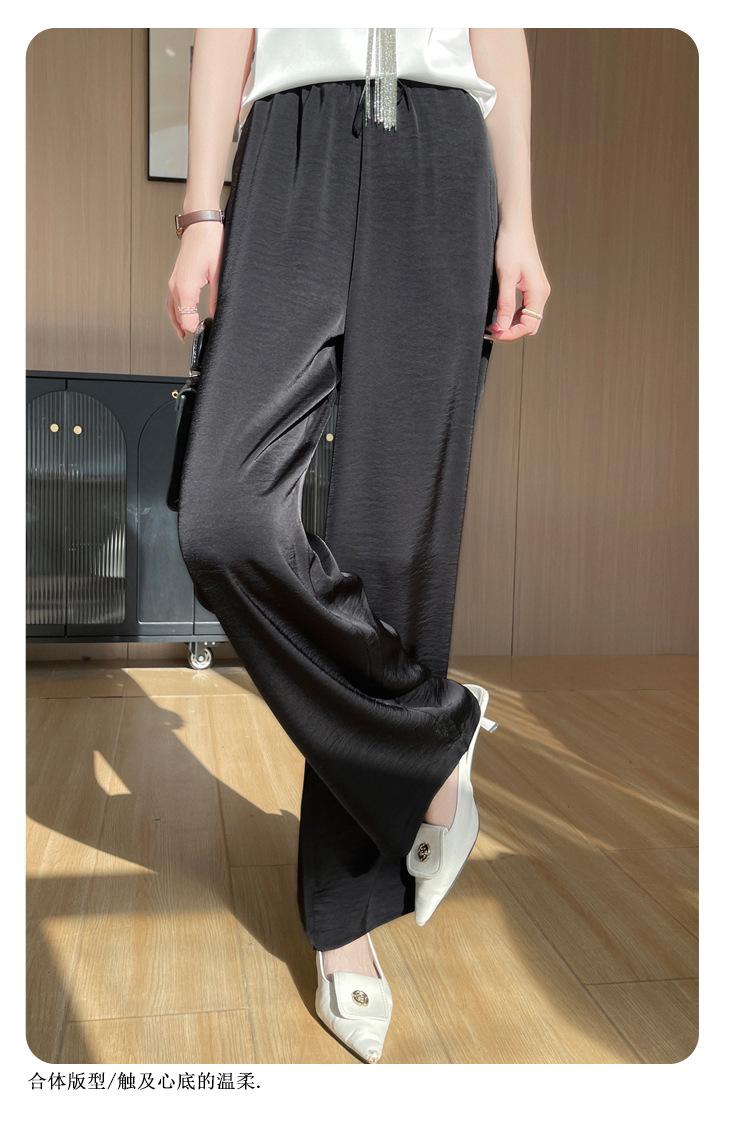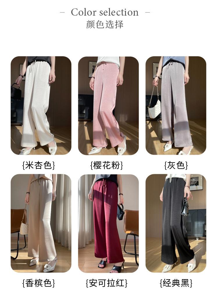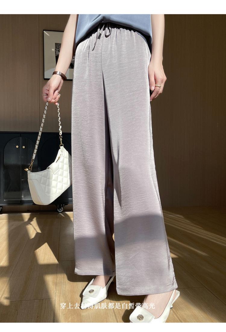 Pantalones de Pierna Ancha de Seda de Hielo Transfronteriza 2025 Verano Nuevo para Mujer Cintura Elástica Adelgazantes Sueltos de Cintura Alta Pantalones Texturizados para Mujer