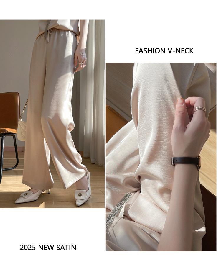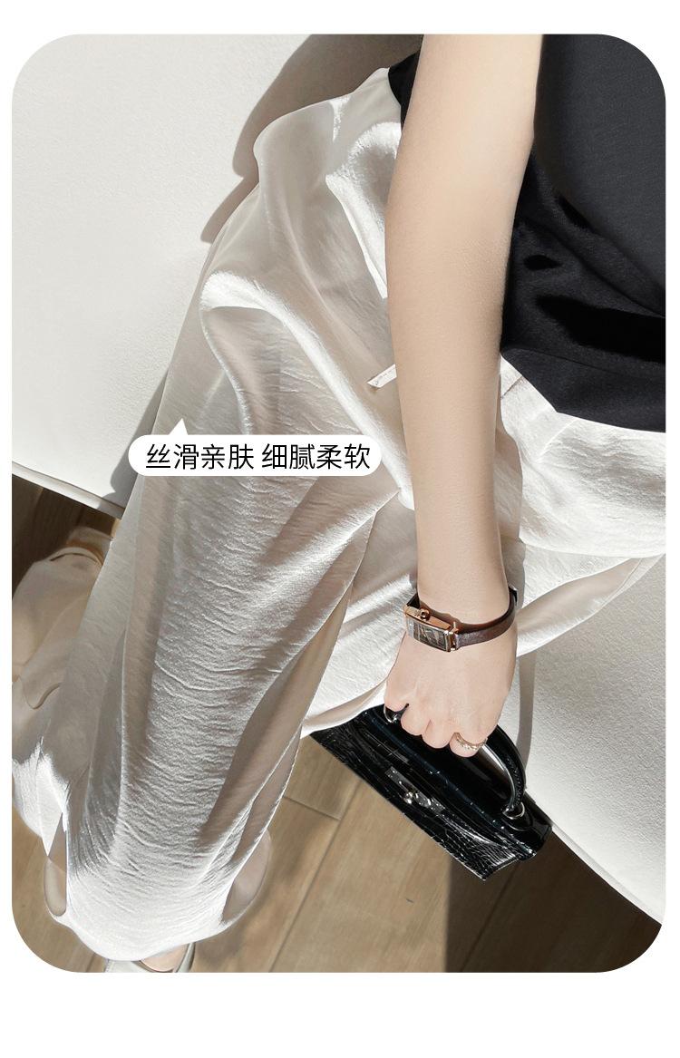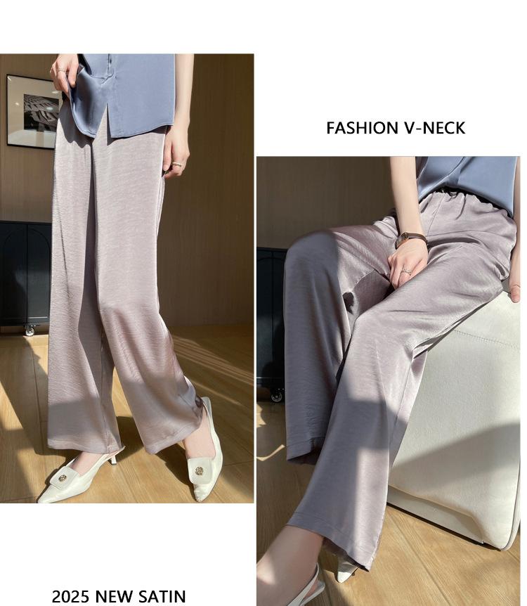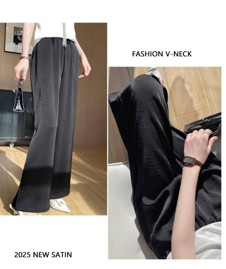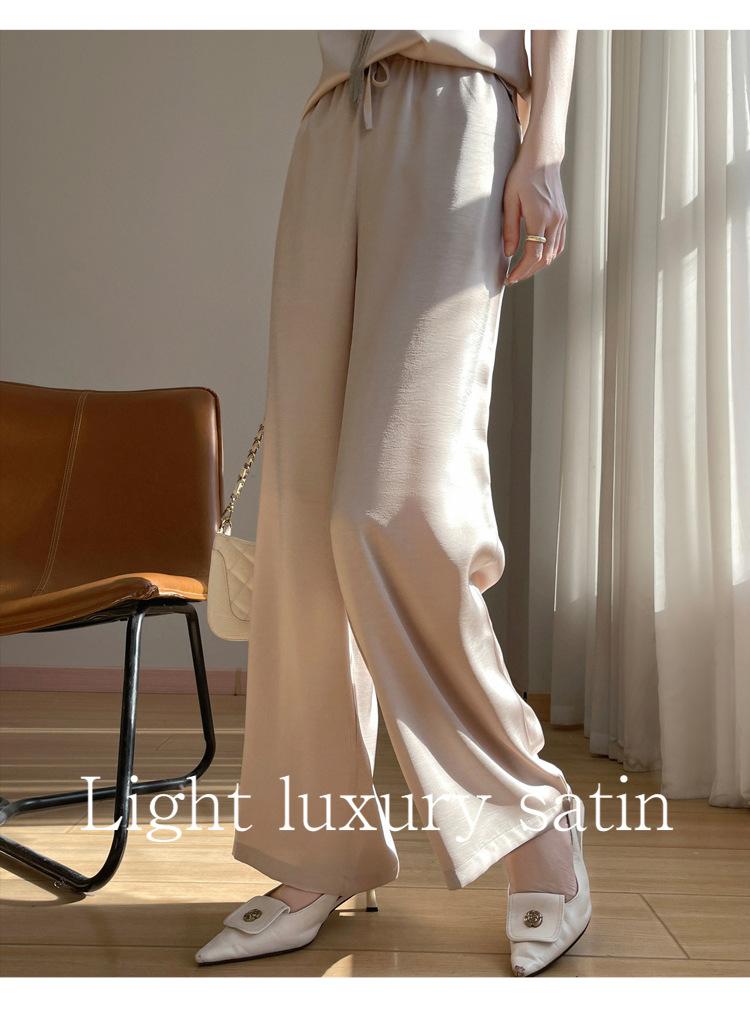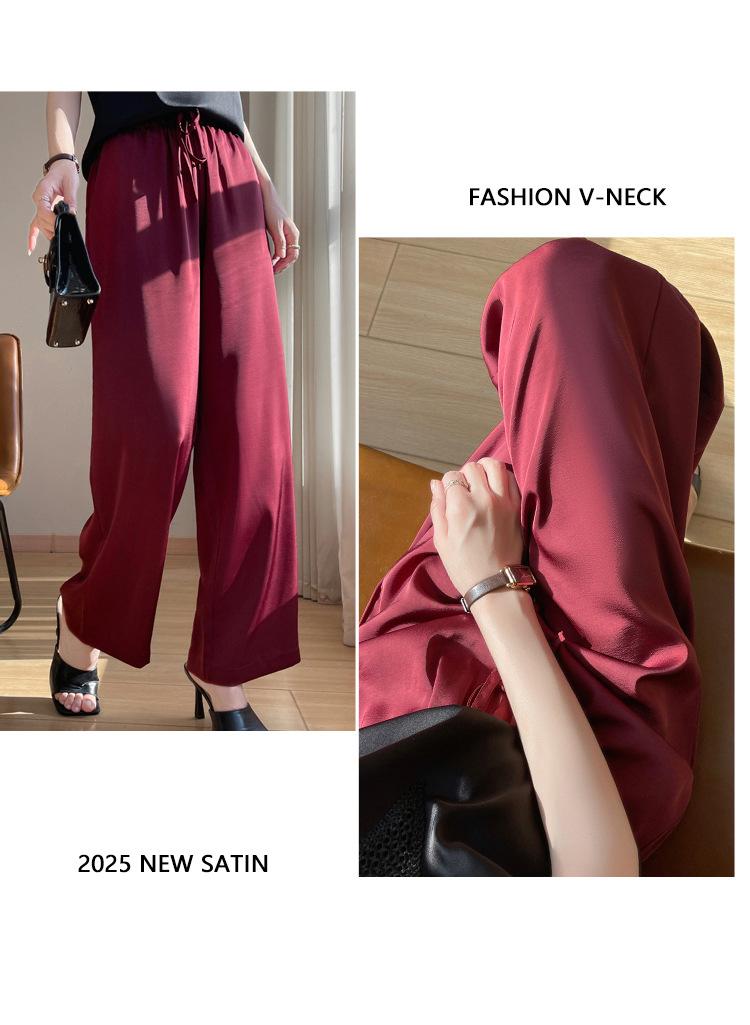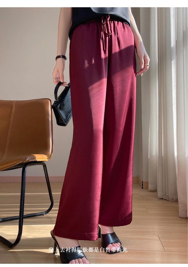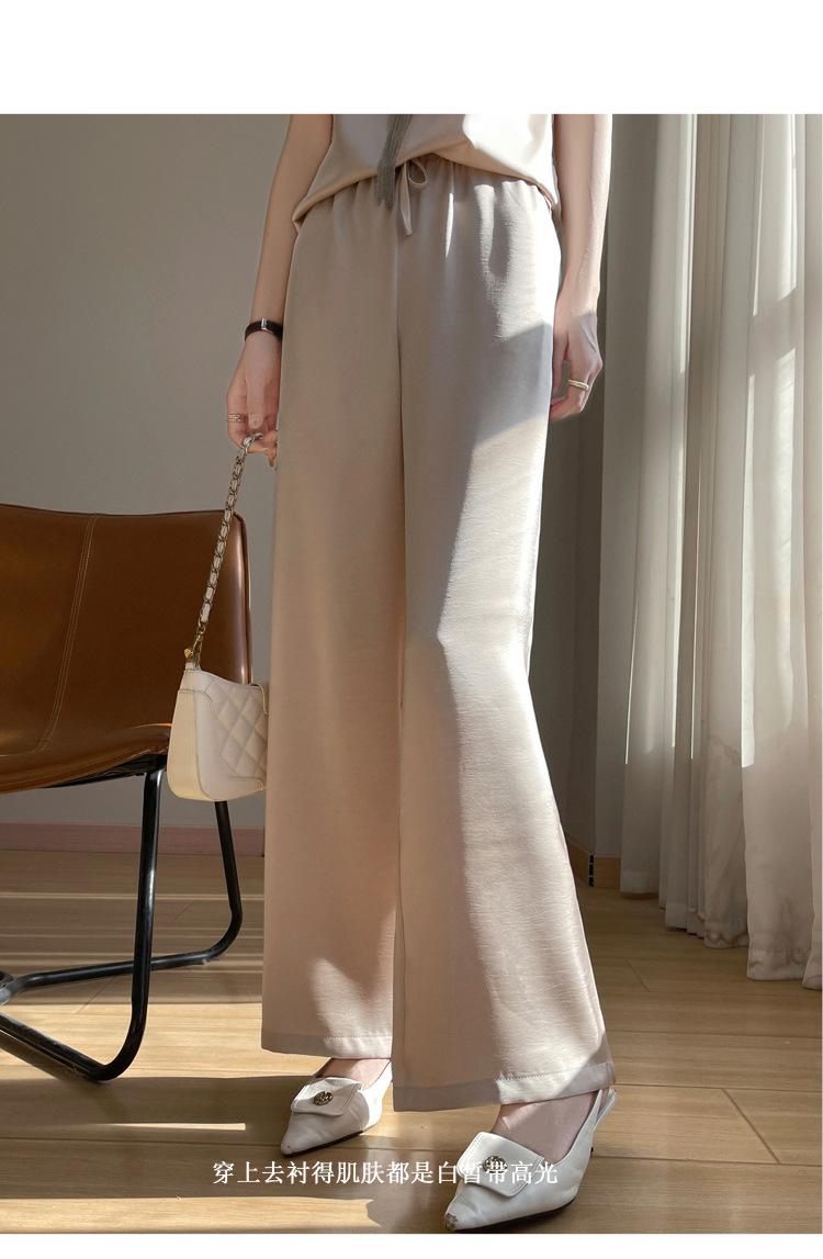 Pantalones de Pierna Ancha de Seda de Hielo Transfronteriza 2025 Verano Nuevo para Mujer Cintura Elástica Adelgazantes Sueltos de Cintura Alta Pantalones Texturizados para Mujer