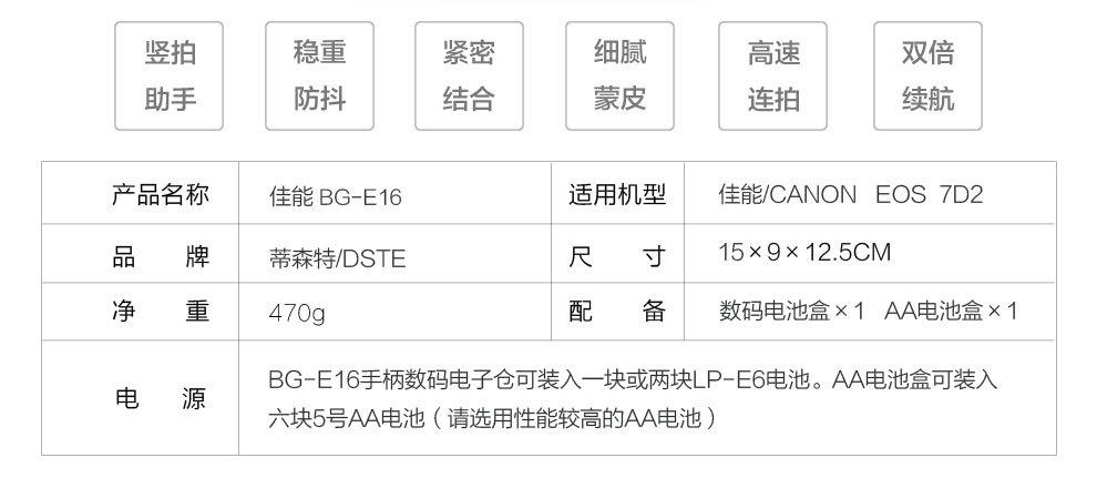Bg-e16 handle*1, camera battery compartment*1, aa battery compartment*1, instruction manual*1, packaging box*1
