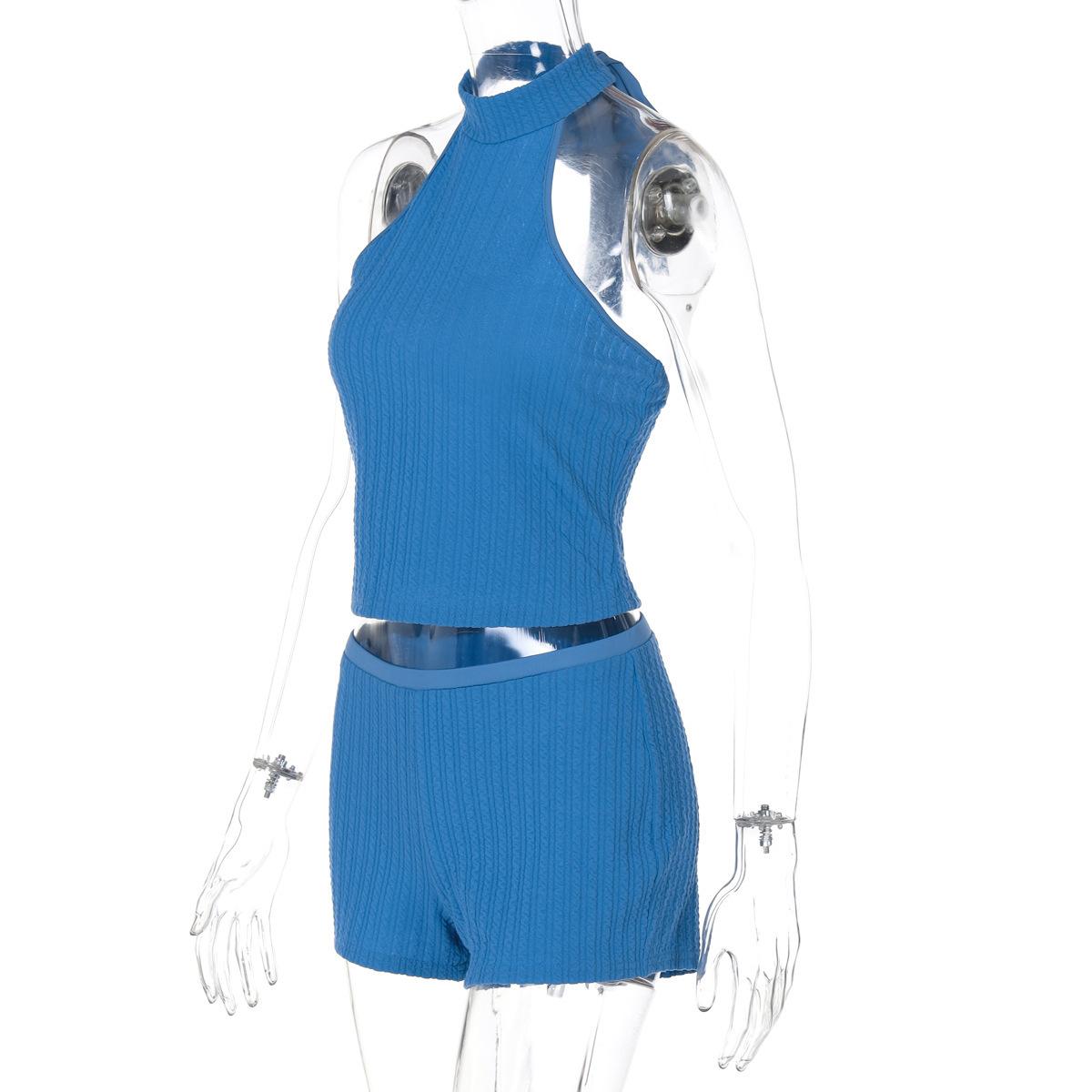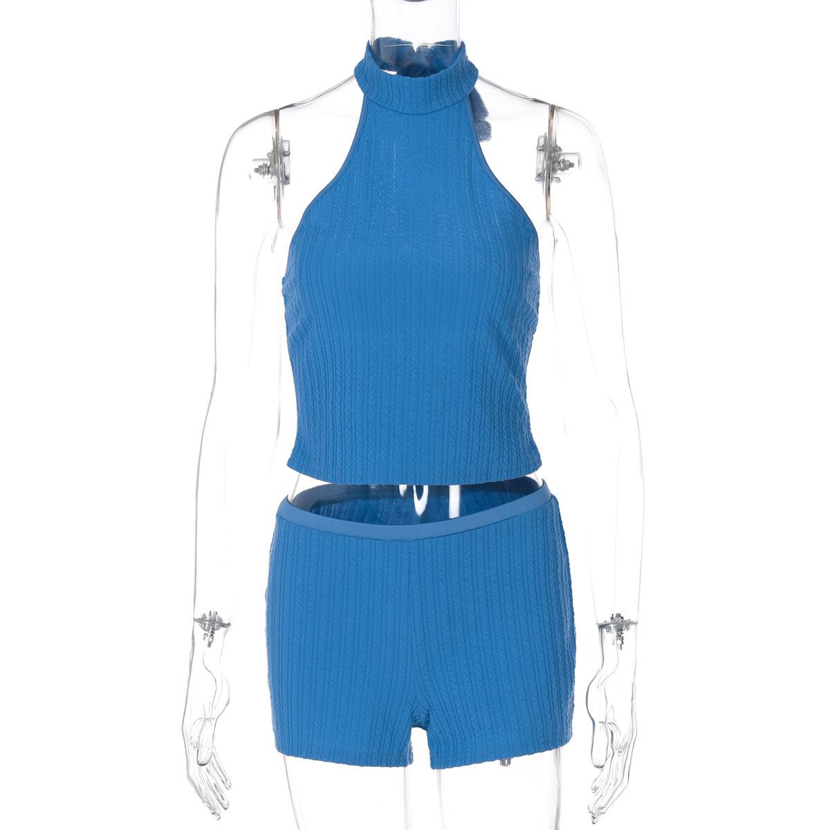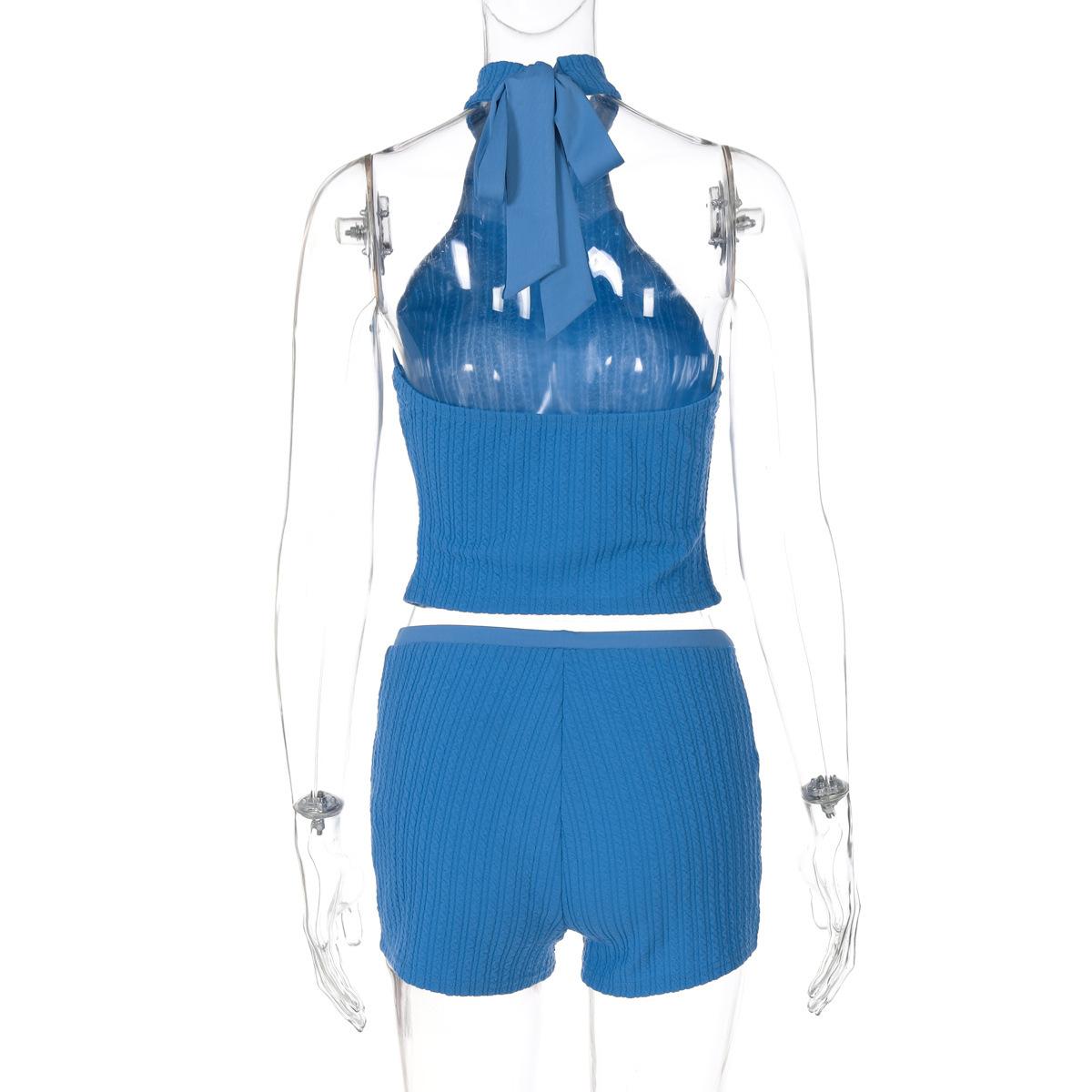 2025 verano nuevo moda europea y americana para mujer sexy cuello con cordones top de tubo sin mangas traje de pantalones cortos ajustados al por mayor