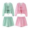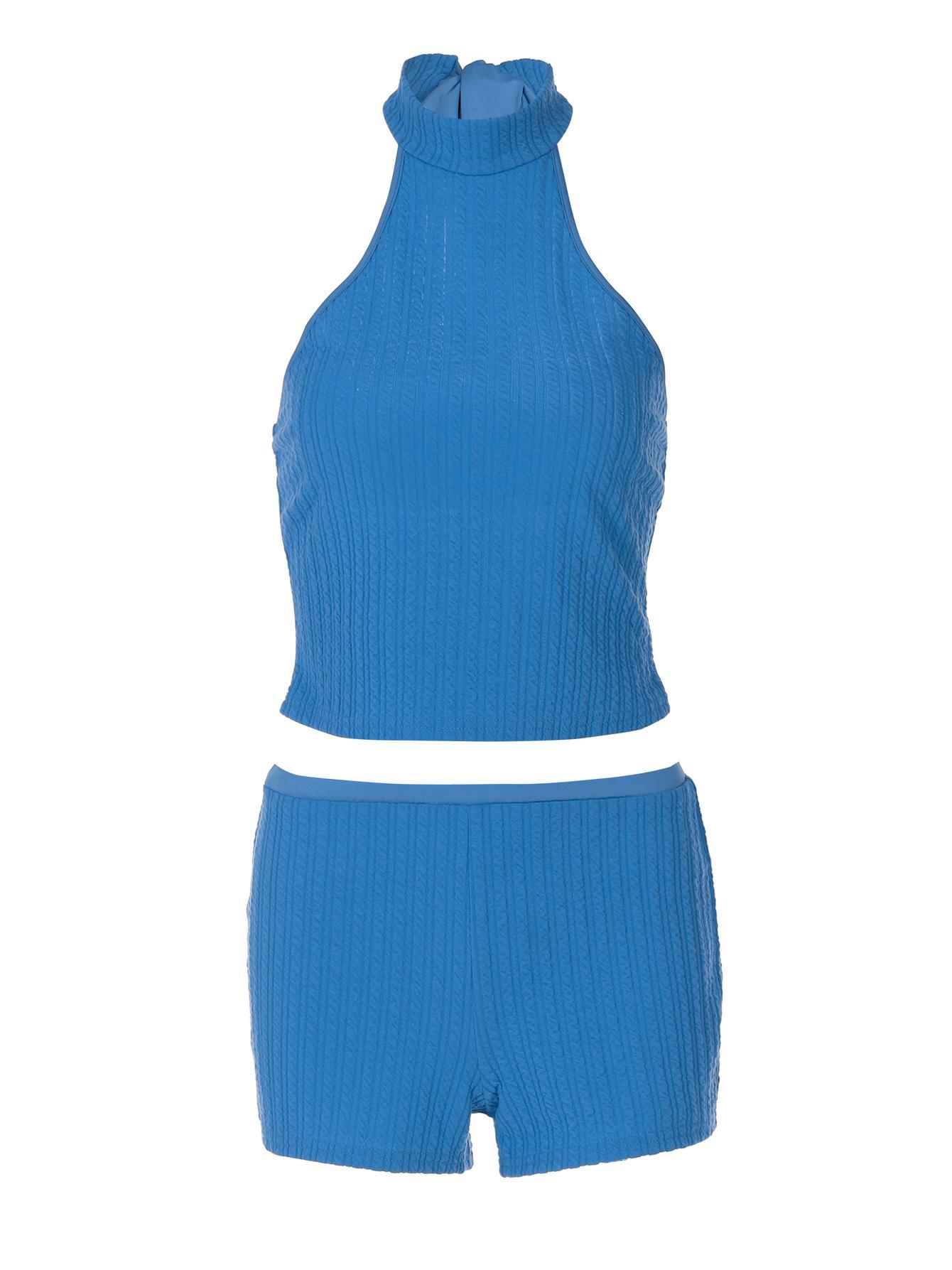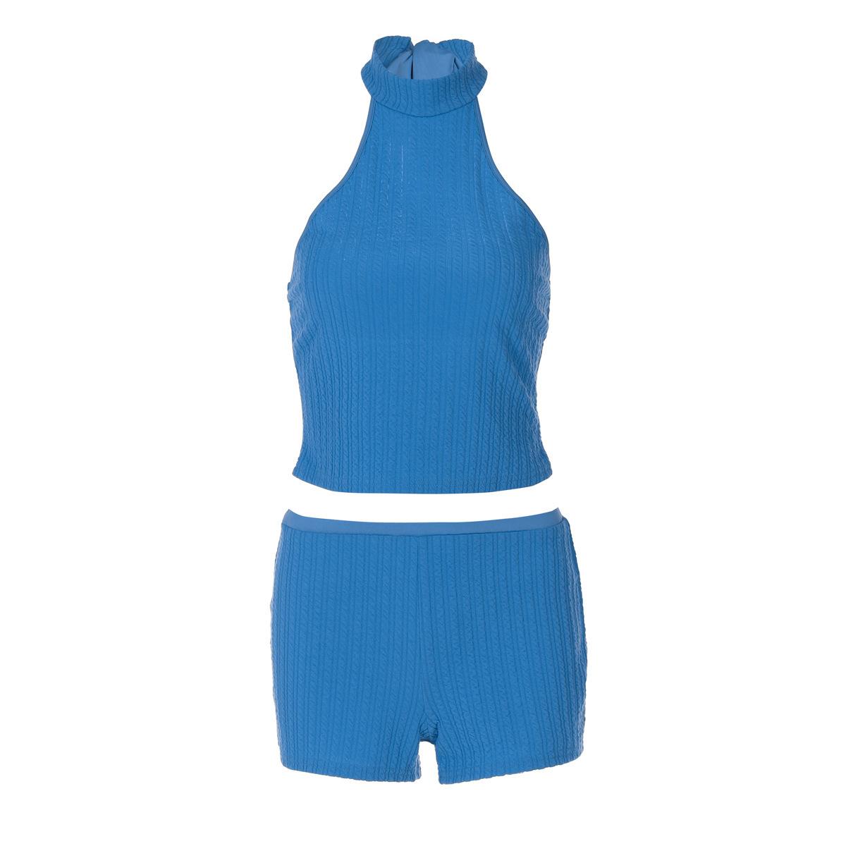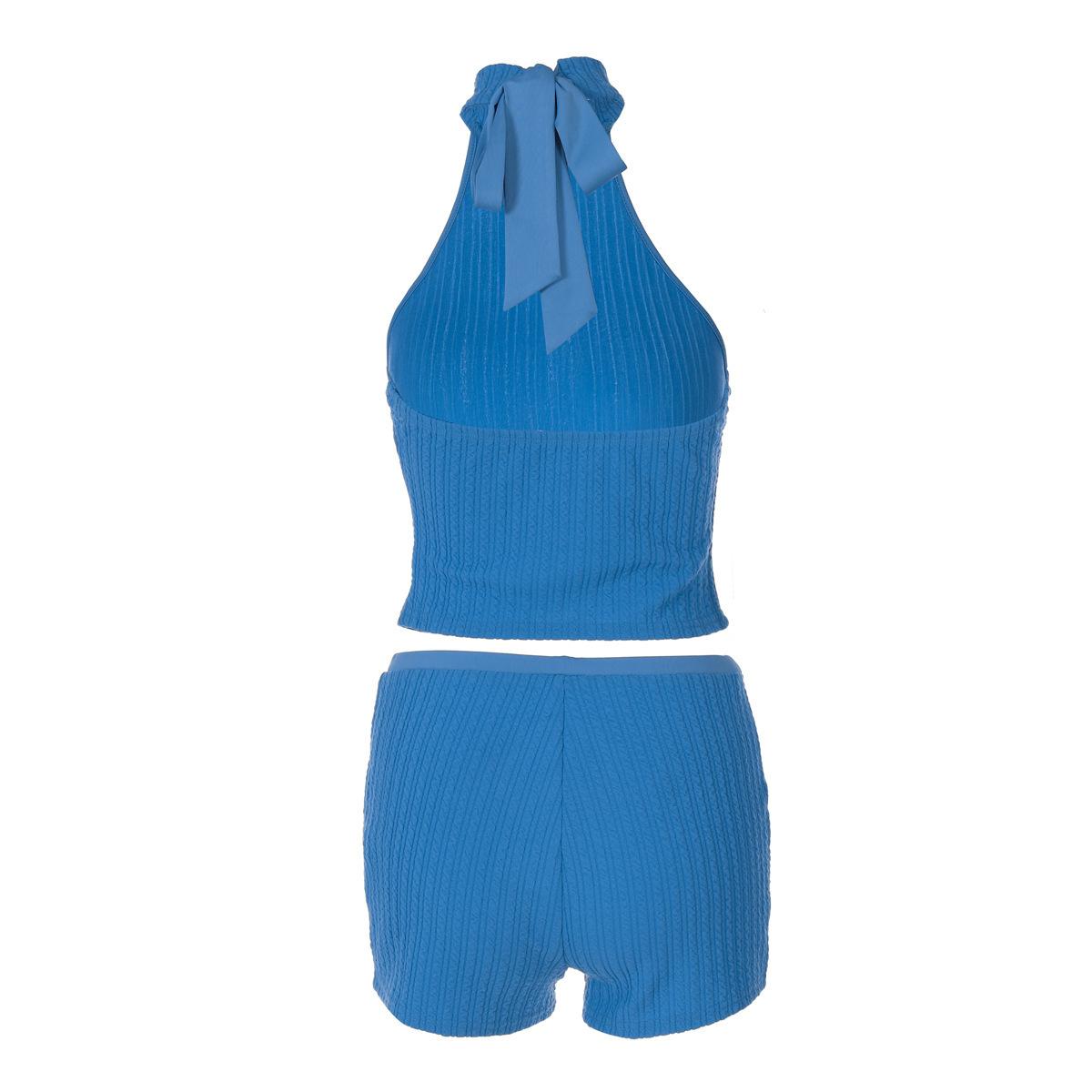 2025 verano nuevo moda europea y americana para mujer sexy cuello con cordones top de tubo sin mangas traje de pantalones cortos ajustados al por mayor