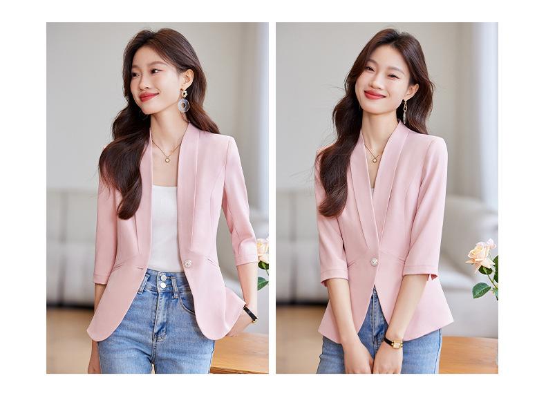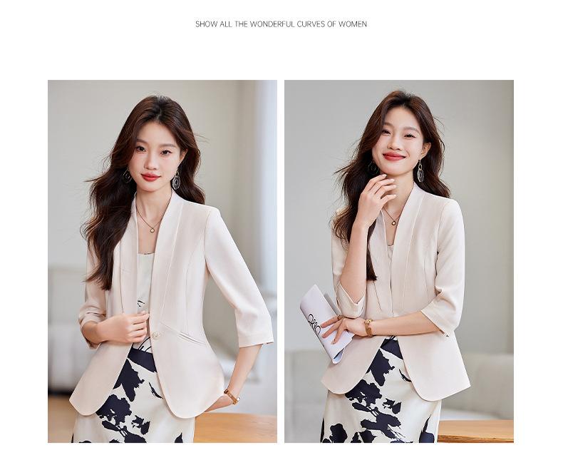 Chaqueta de Traje Pequeña para Mujer Delgada Verano 2025 Nueva Sensación de Alta Gama Elegante Pequeña Top de Siete Mangas para Hombre Traje de Verano