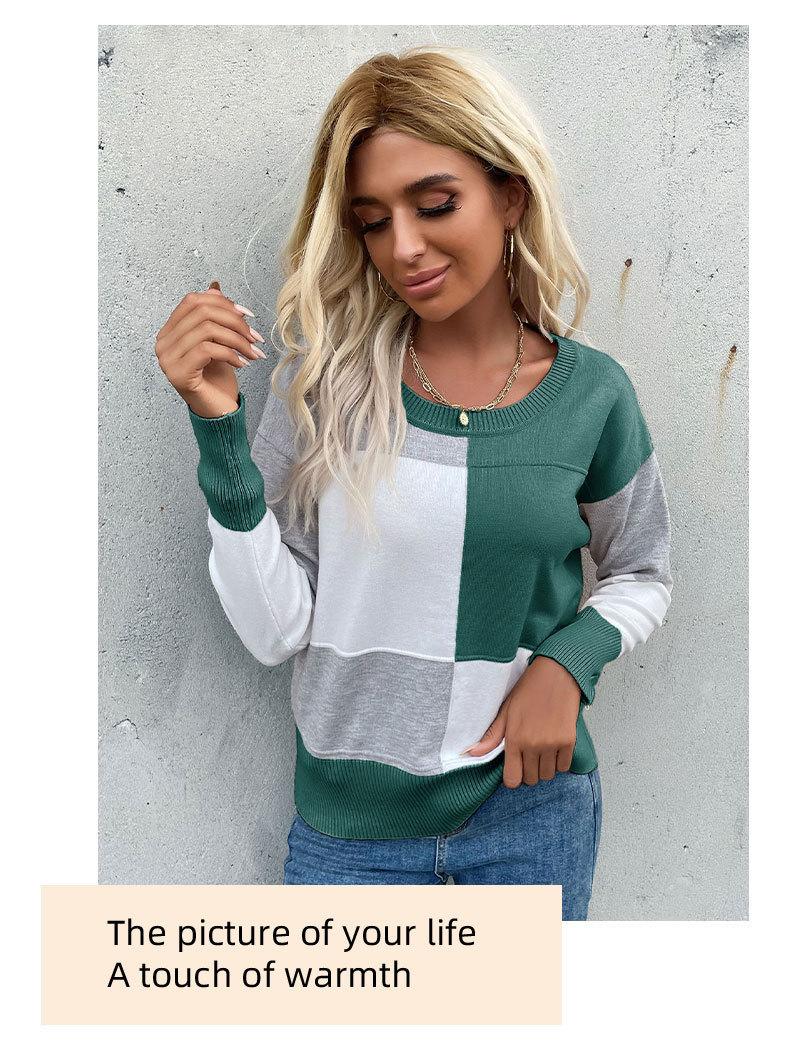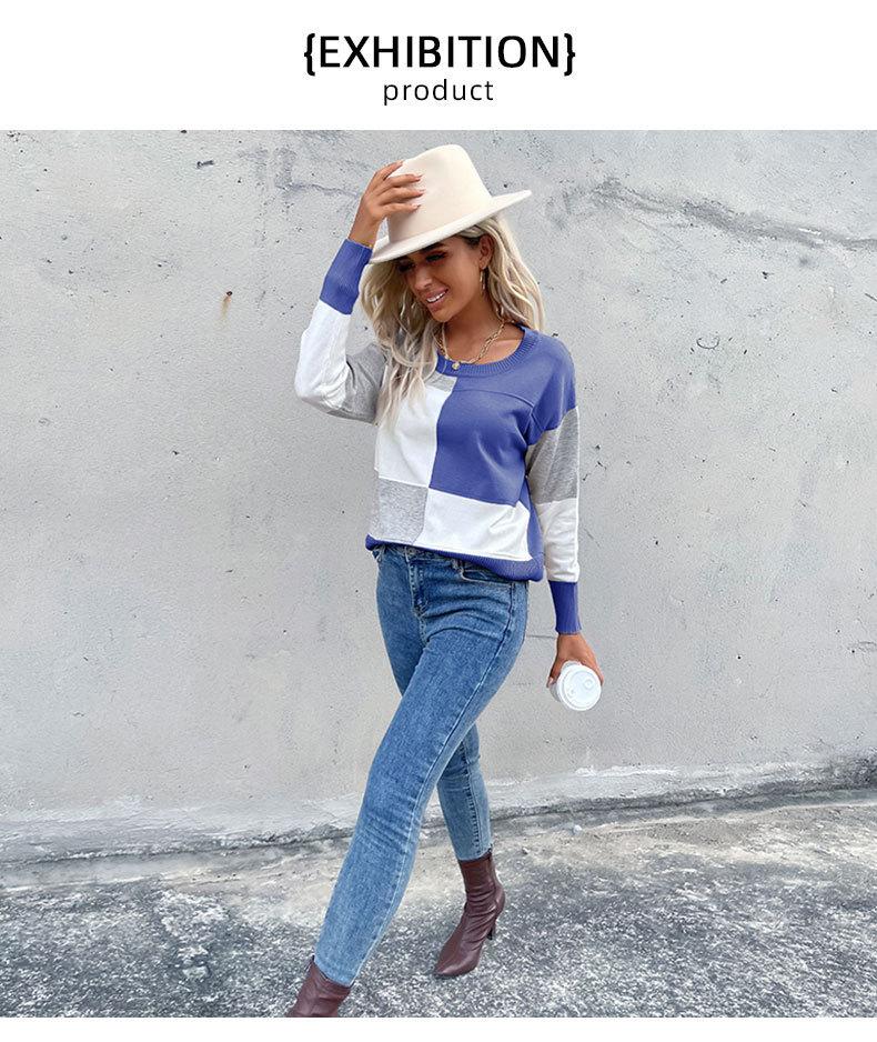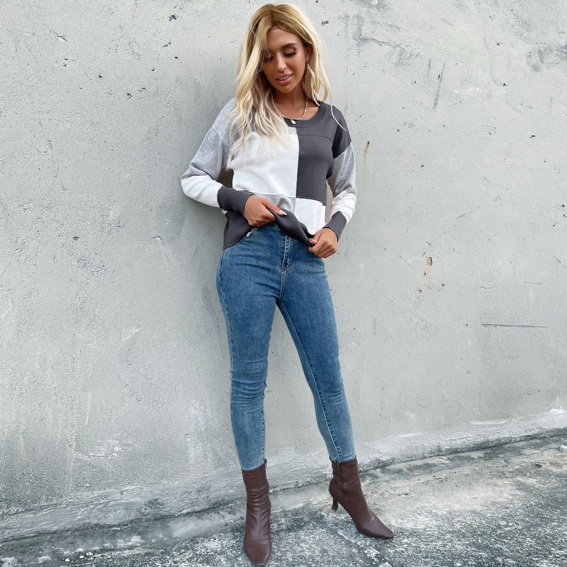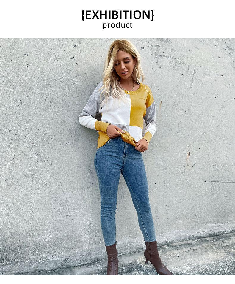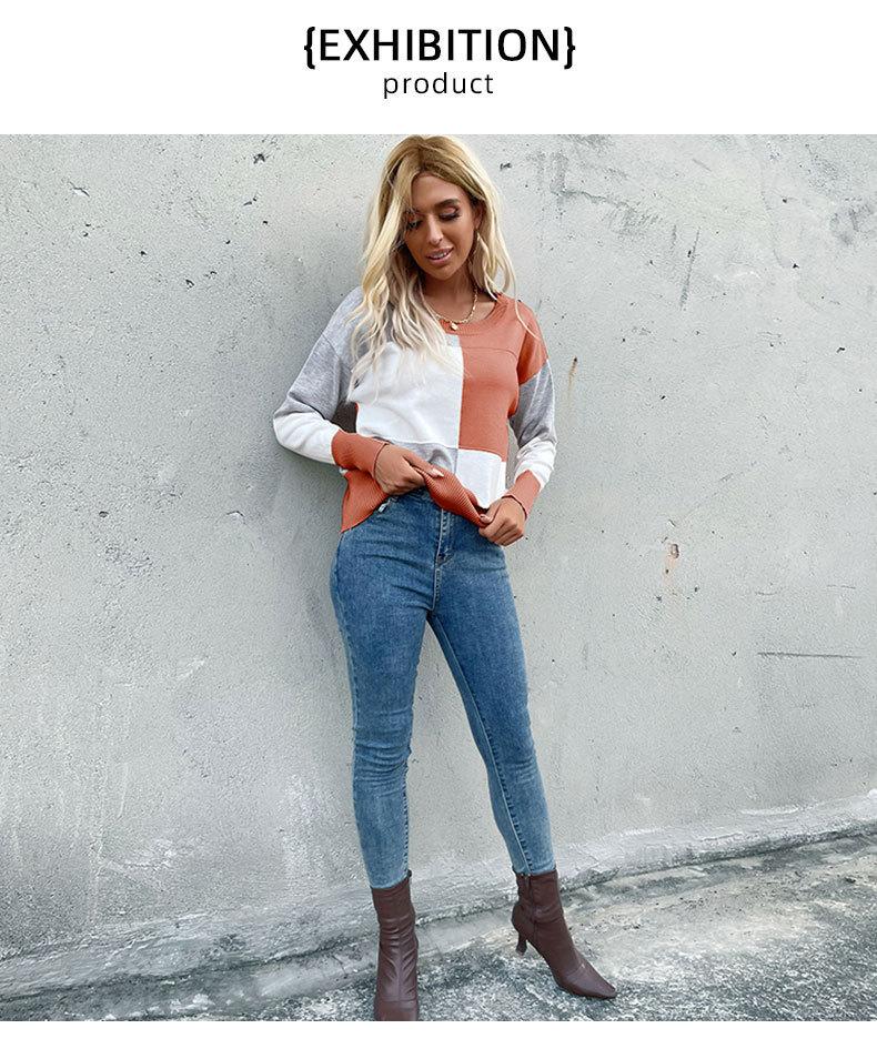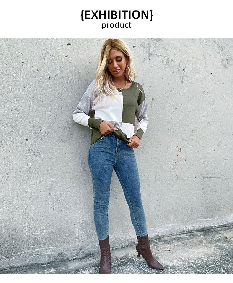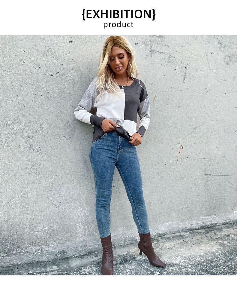 Amazon Estación Independiente Comercio Exterior Transfronterizo Explosiones de Principio de Otoño Cuello Alto Europeo y Americano Costuras Manga Larga Suéter de Punto para Mujer Delgado