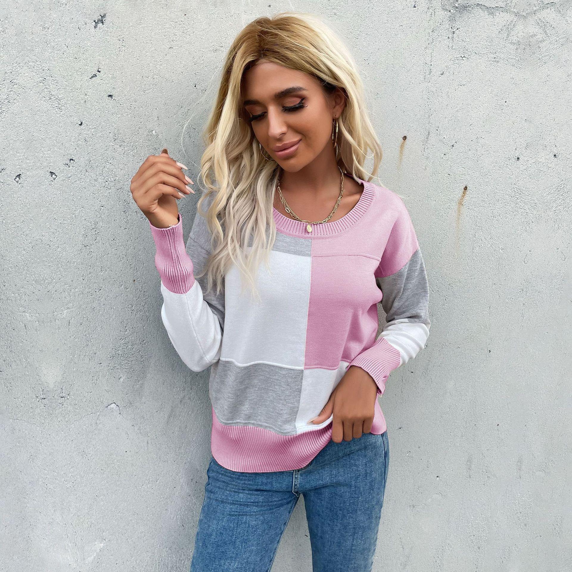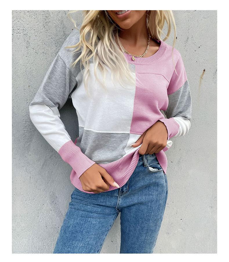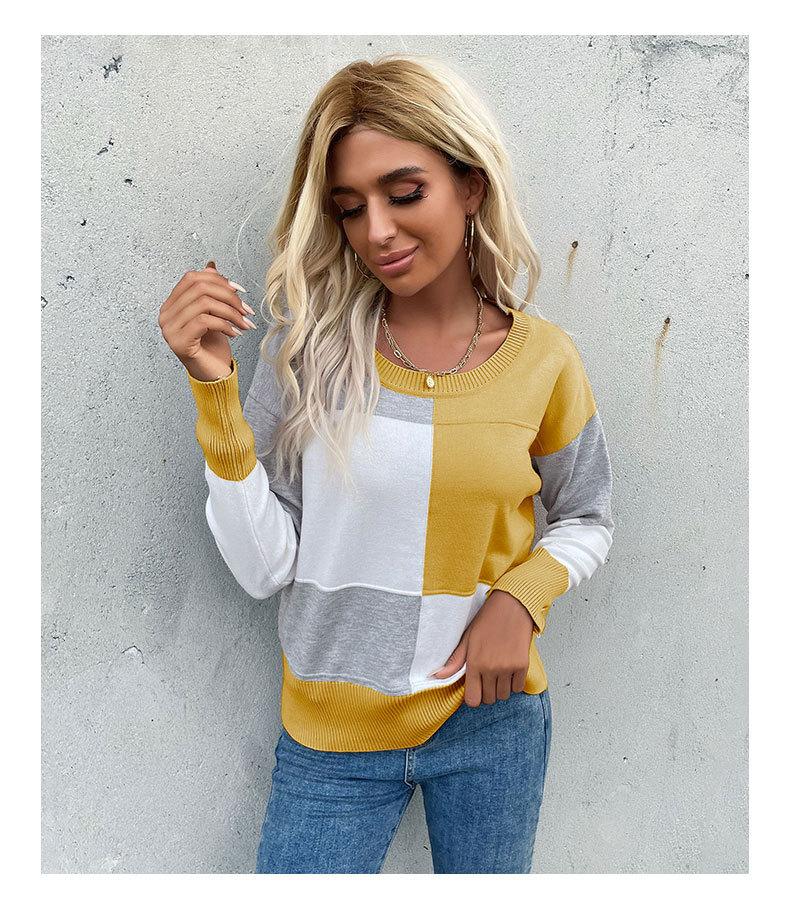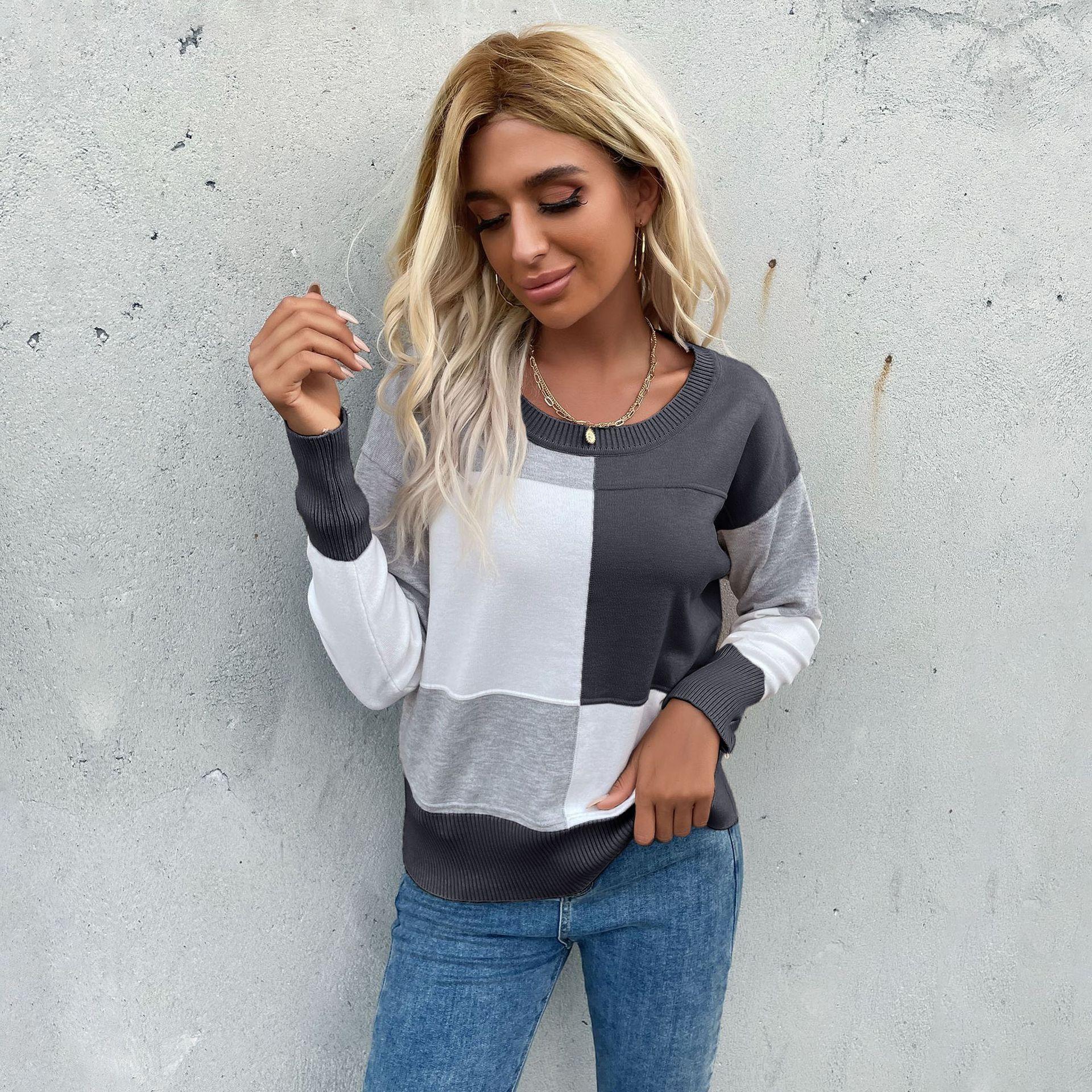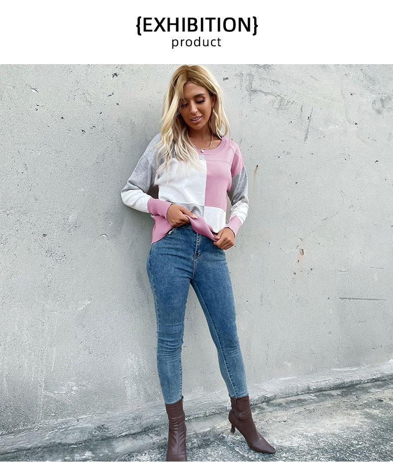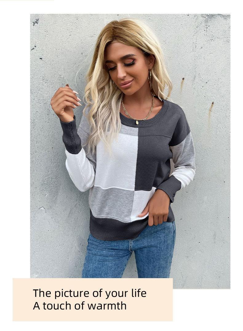 Amazon Estación Independiente Comercio Exterior Transfronterizo Explosiones de Principio de Otoño Cuello Alto Europeo y Americano Costuras Manga Larga Suéter de Punto para Mujer Delgado