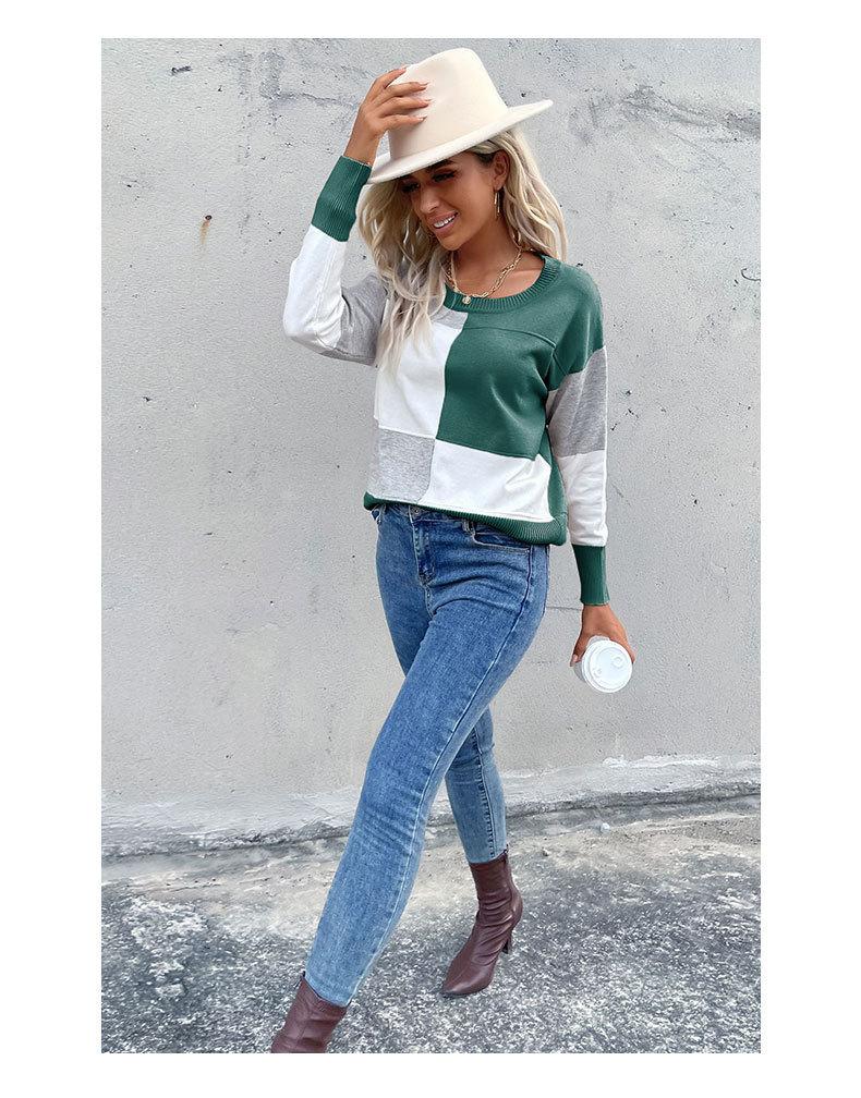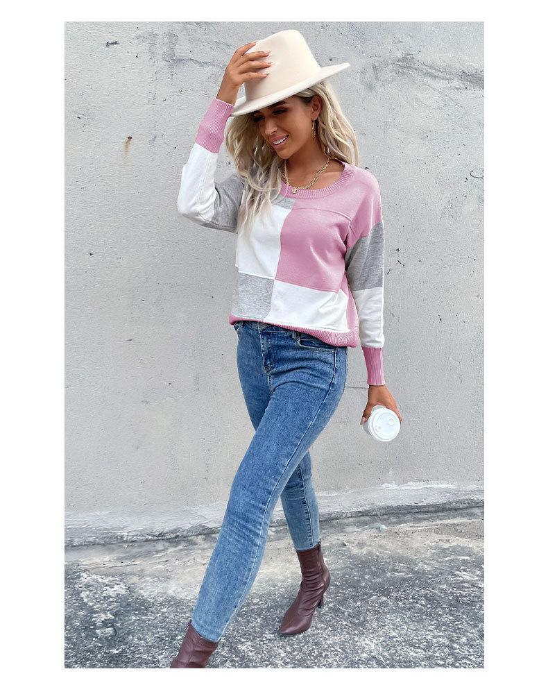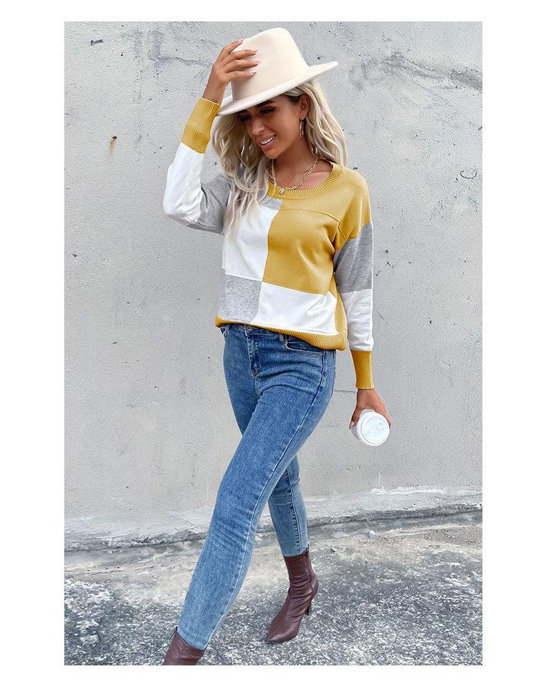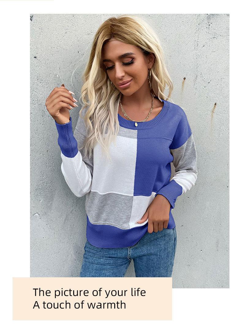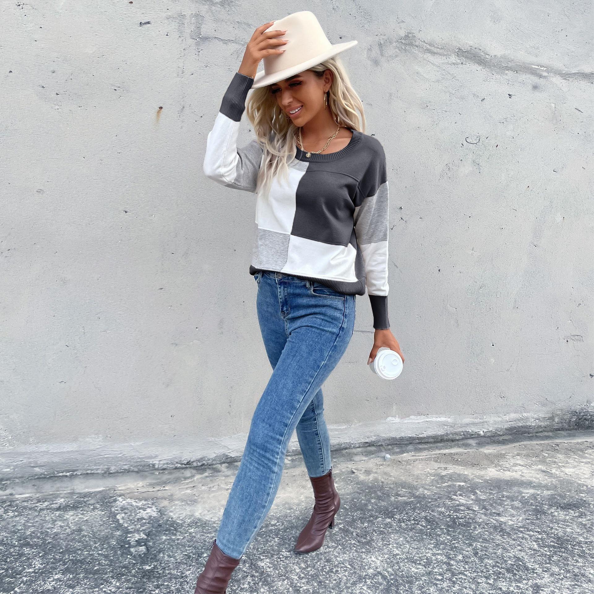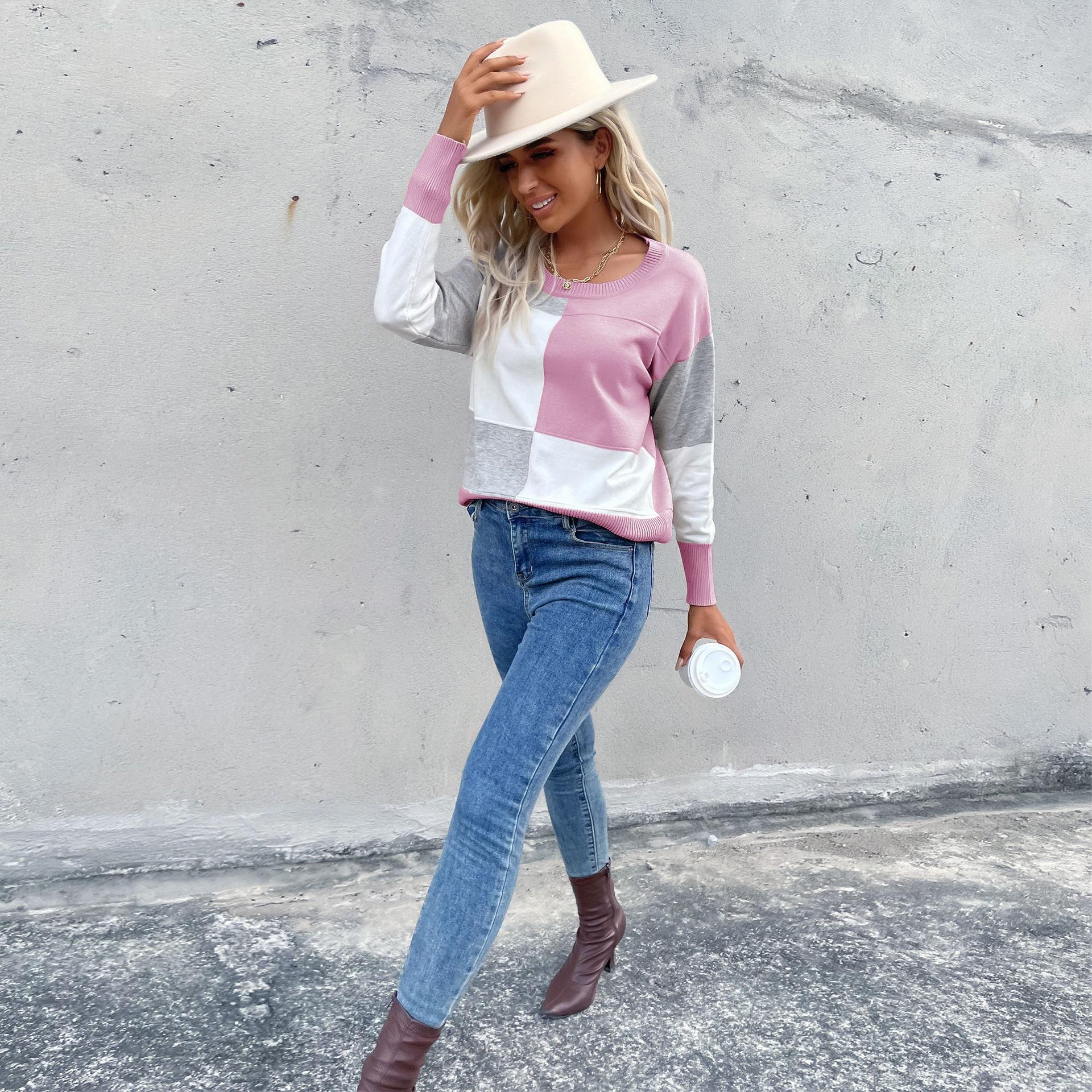Amazon Estación Independiente Comercio Exterior Transfronterizo Explosiones de Principio de Otoño Cuello Alto Europeo y Americano Costuras Manga Larga Suéter de Punto para Mujer Delgado
