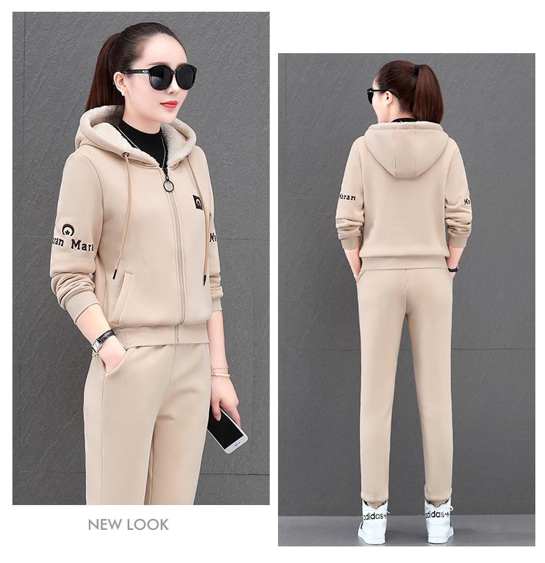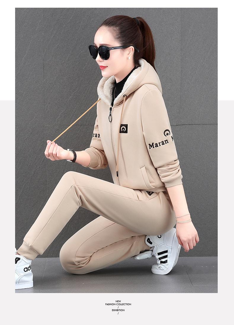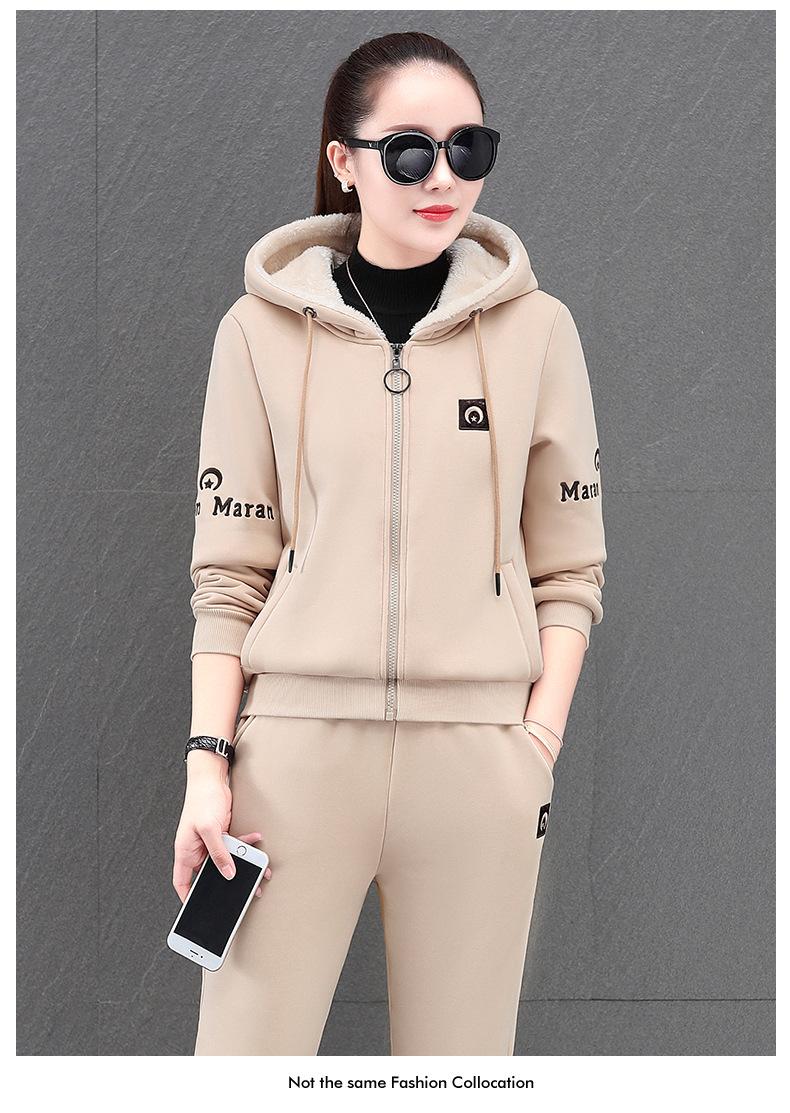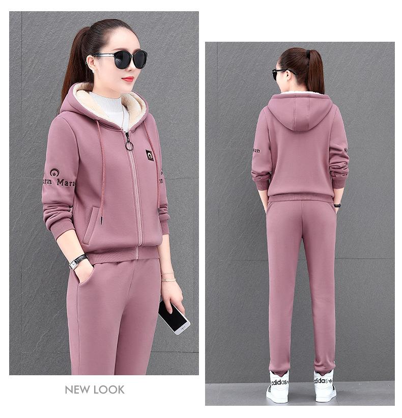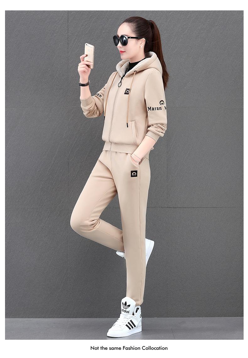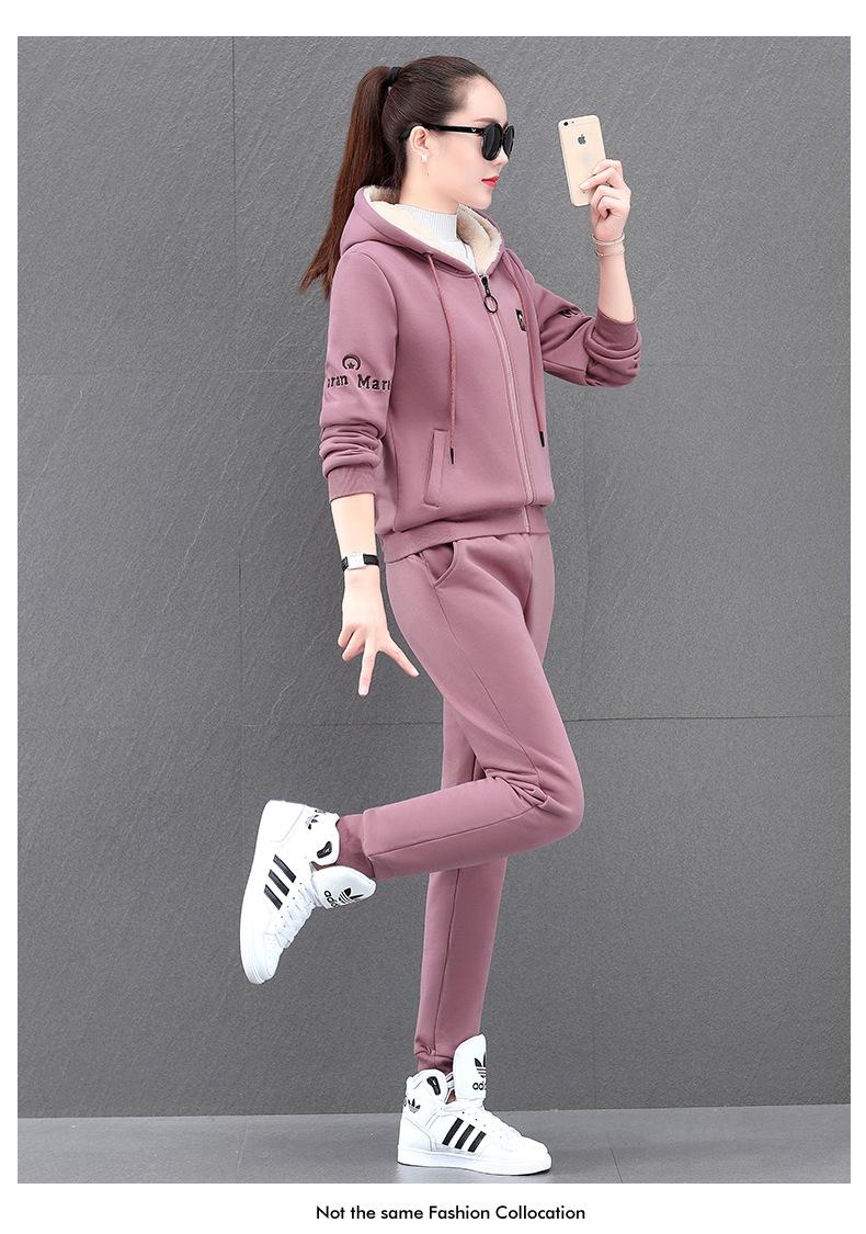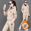 Traje deportivo para mujer, otoño e invierno 2021, nuevo conjunto informal de dos piezas con capucha gruesa y forro polar estilo coreano holgado y occidental.