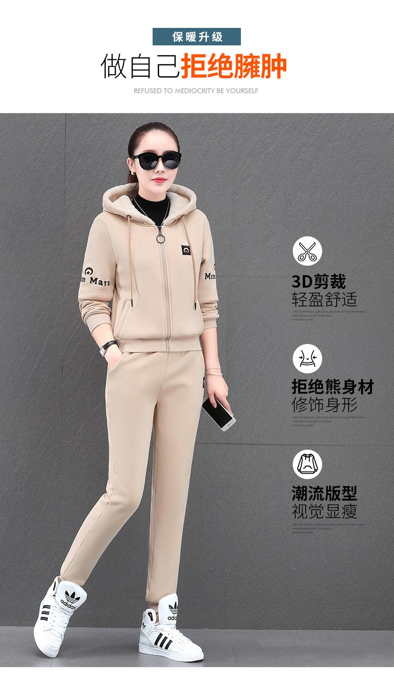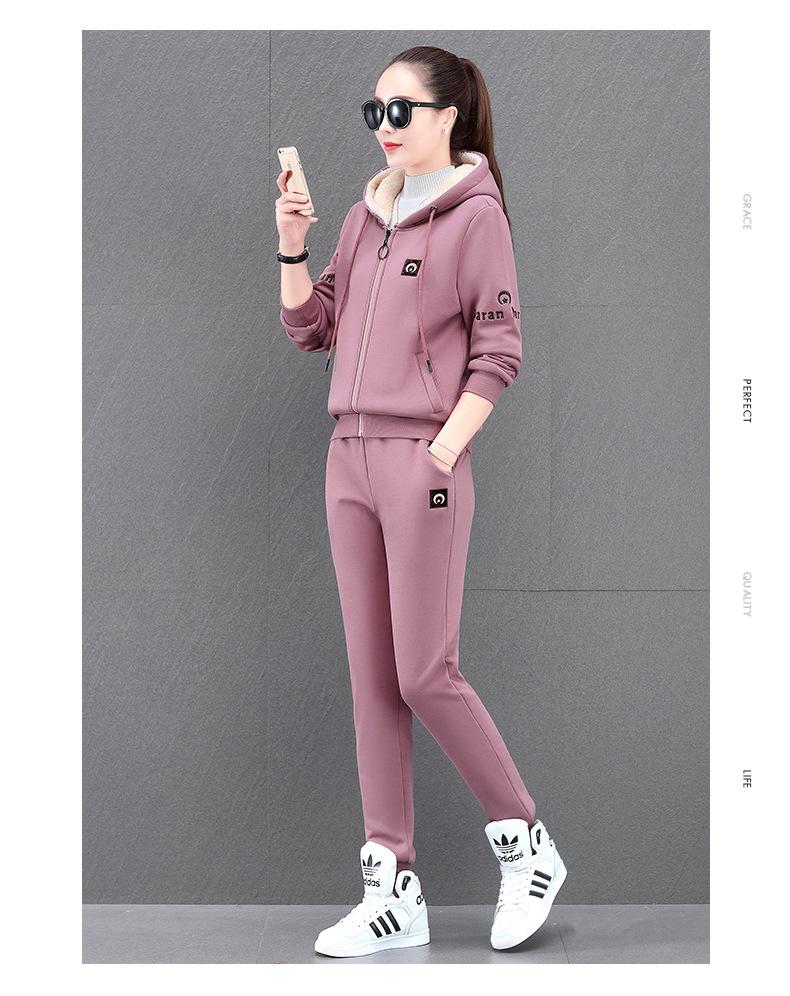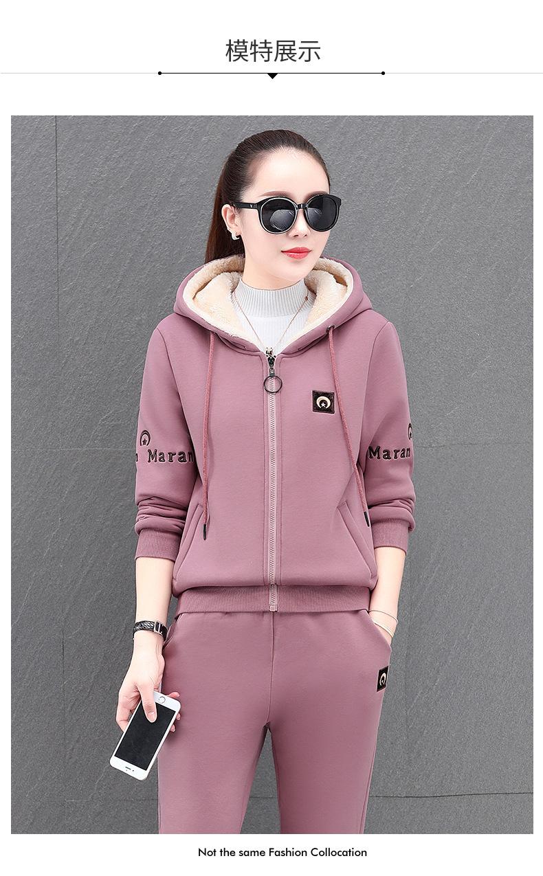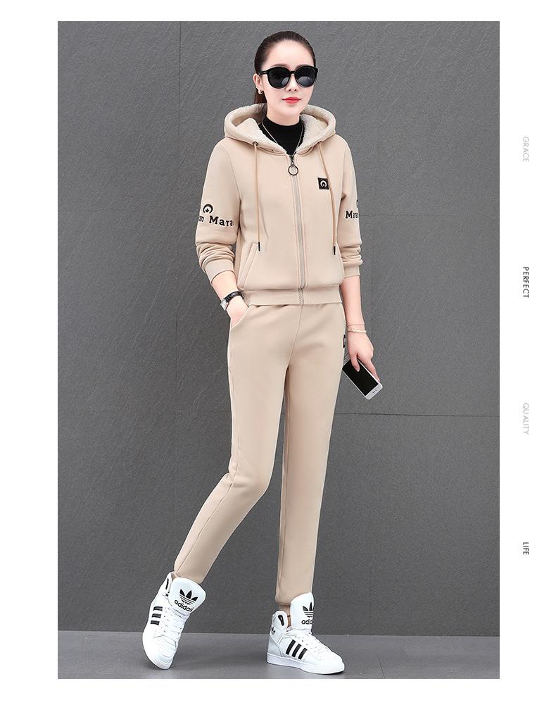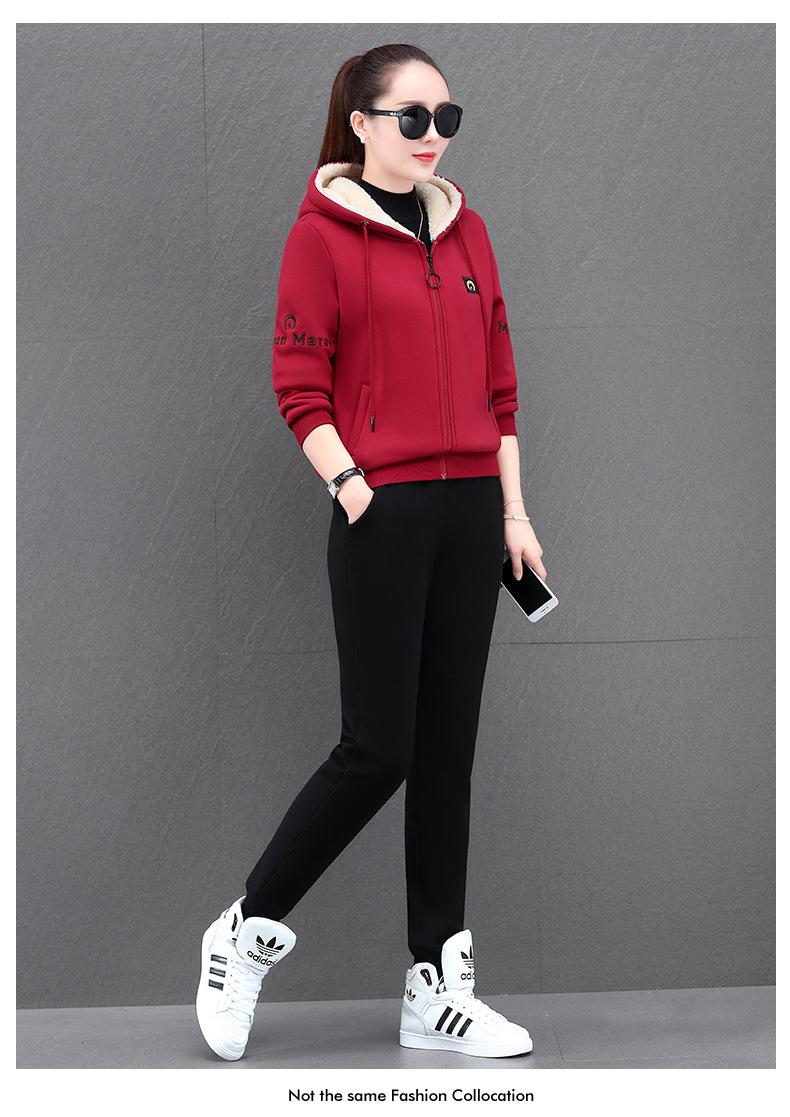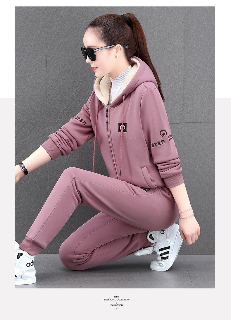 Traje deportivo para mujer, otoño e invierno 2021, nuevo conjunto informal de dos piezas con capucha gruesa y forro polar estilo coreano holgado y occidental.