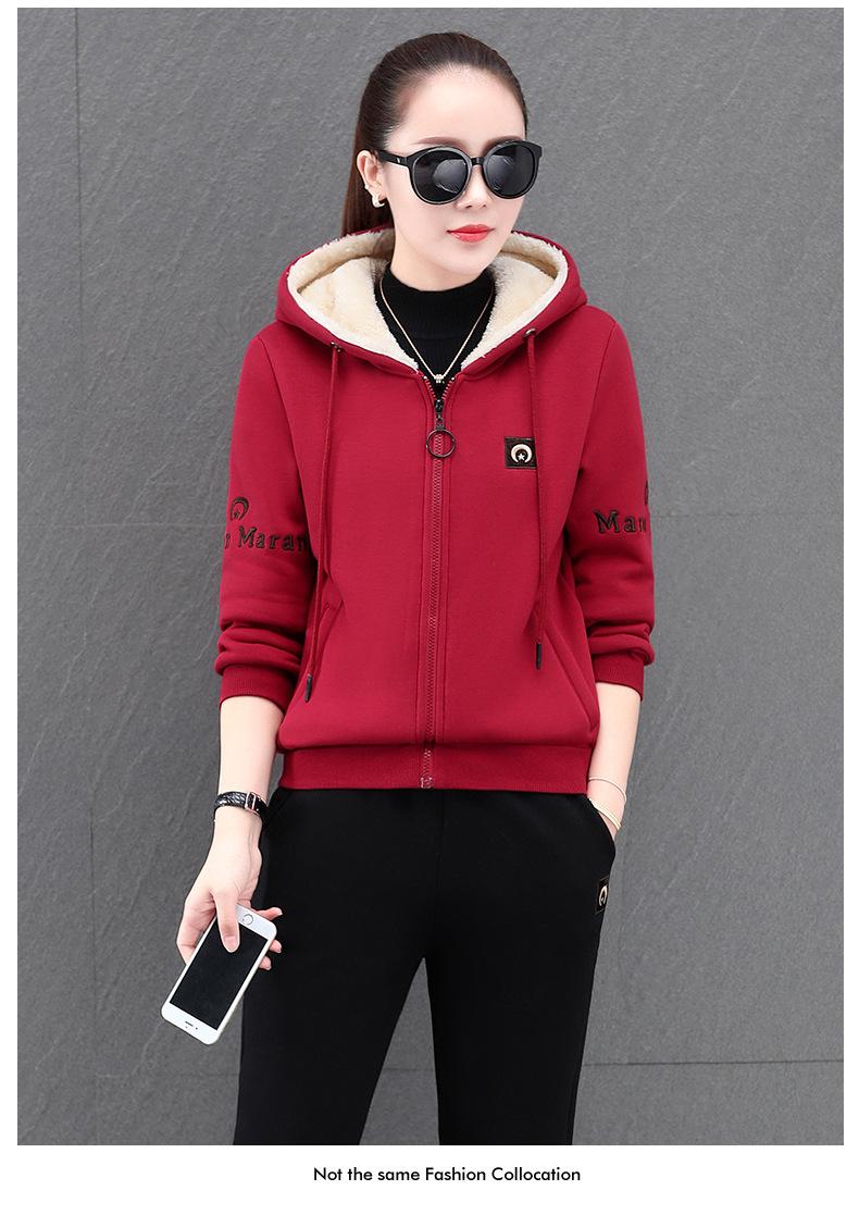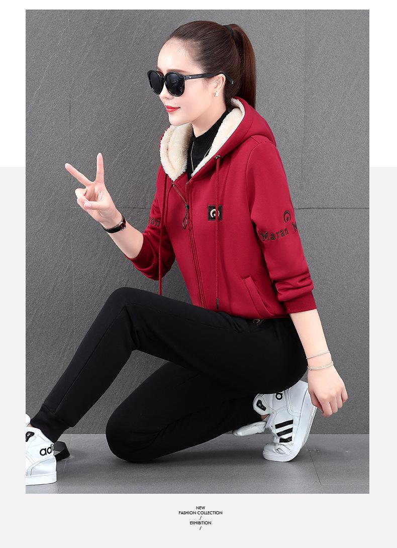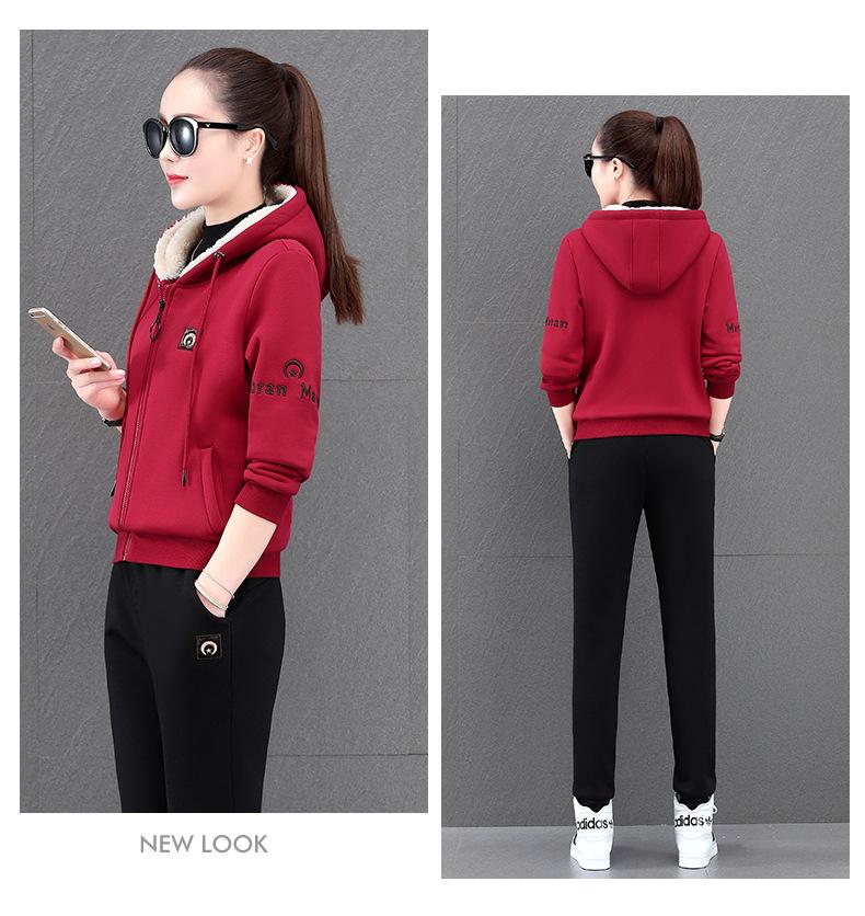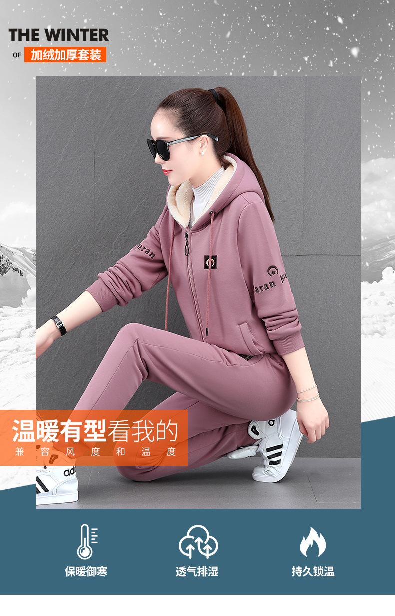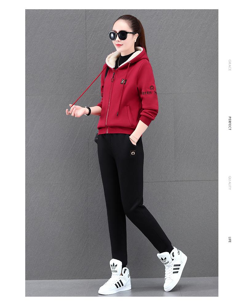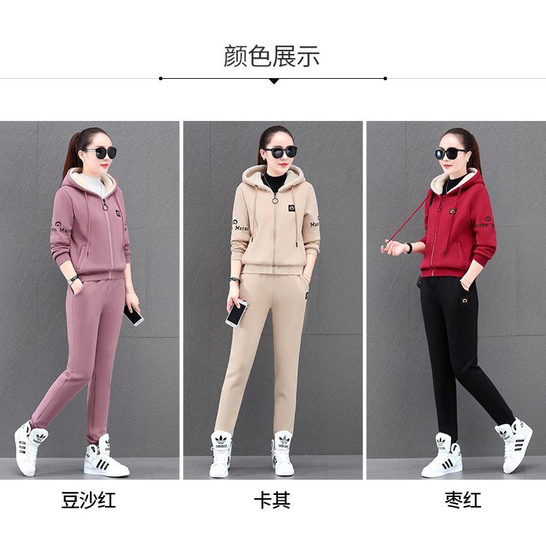 Traje deportivo para mujer, otoño e invierno 2021, nuevo conjunto informal de dos piezas con capucha gruesa y forro polar estilo coreano holgado y occidental.