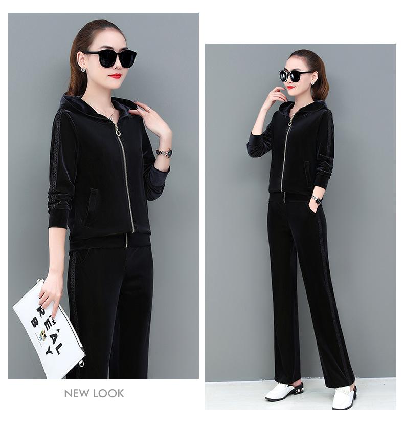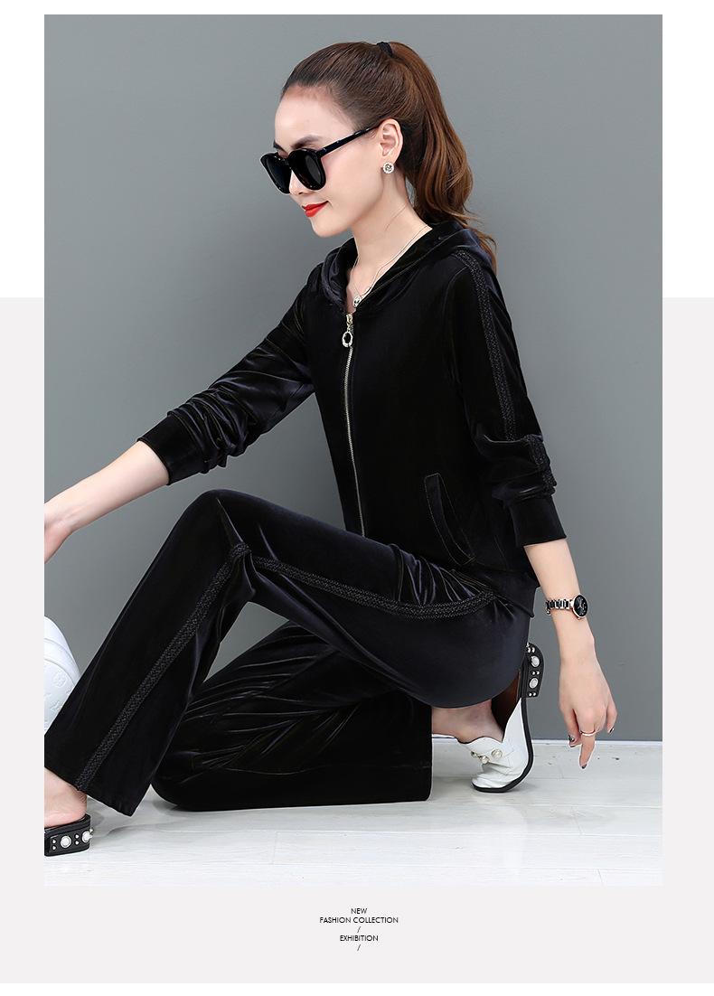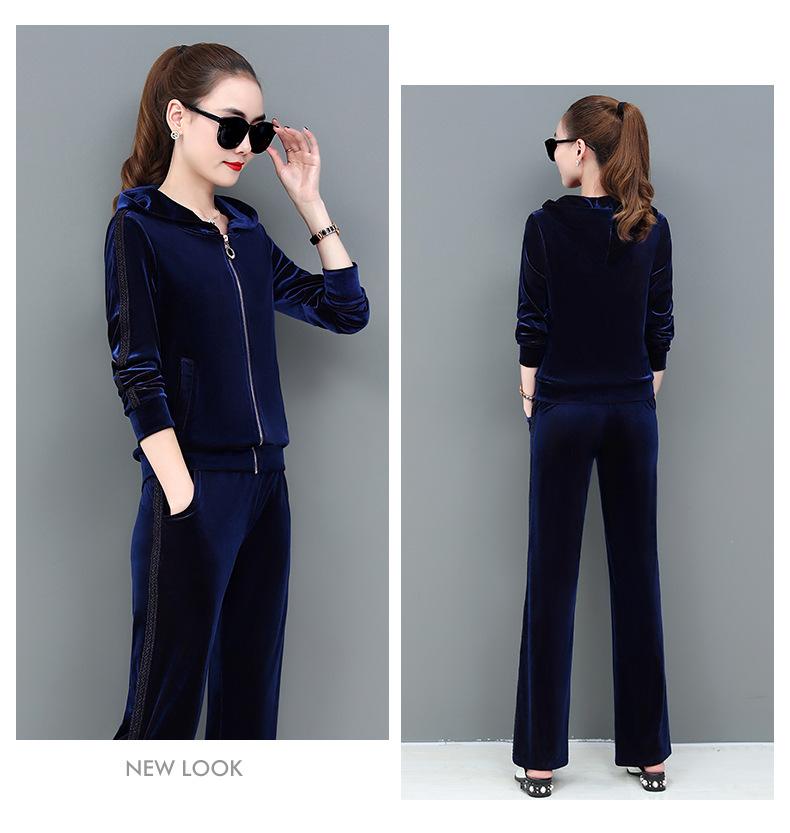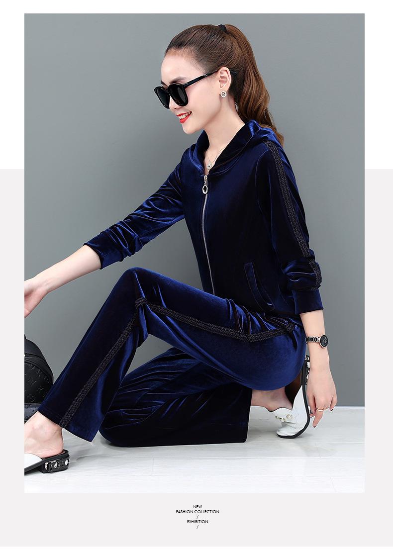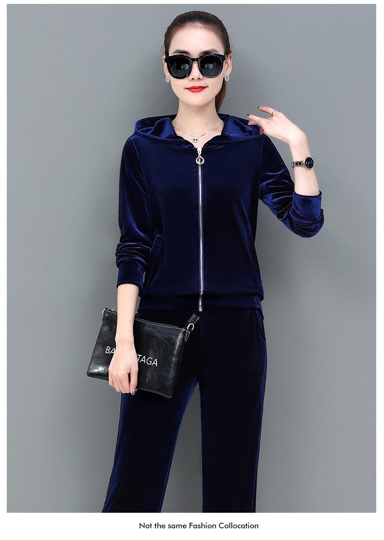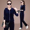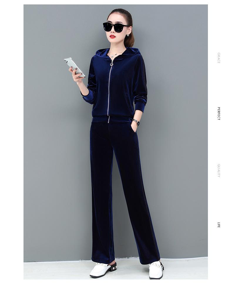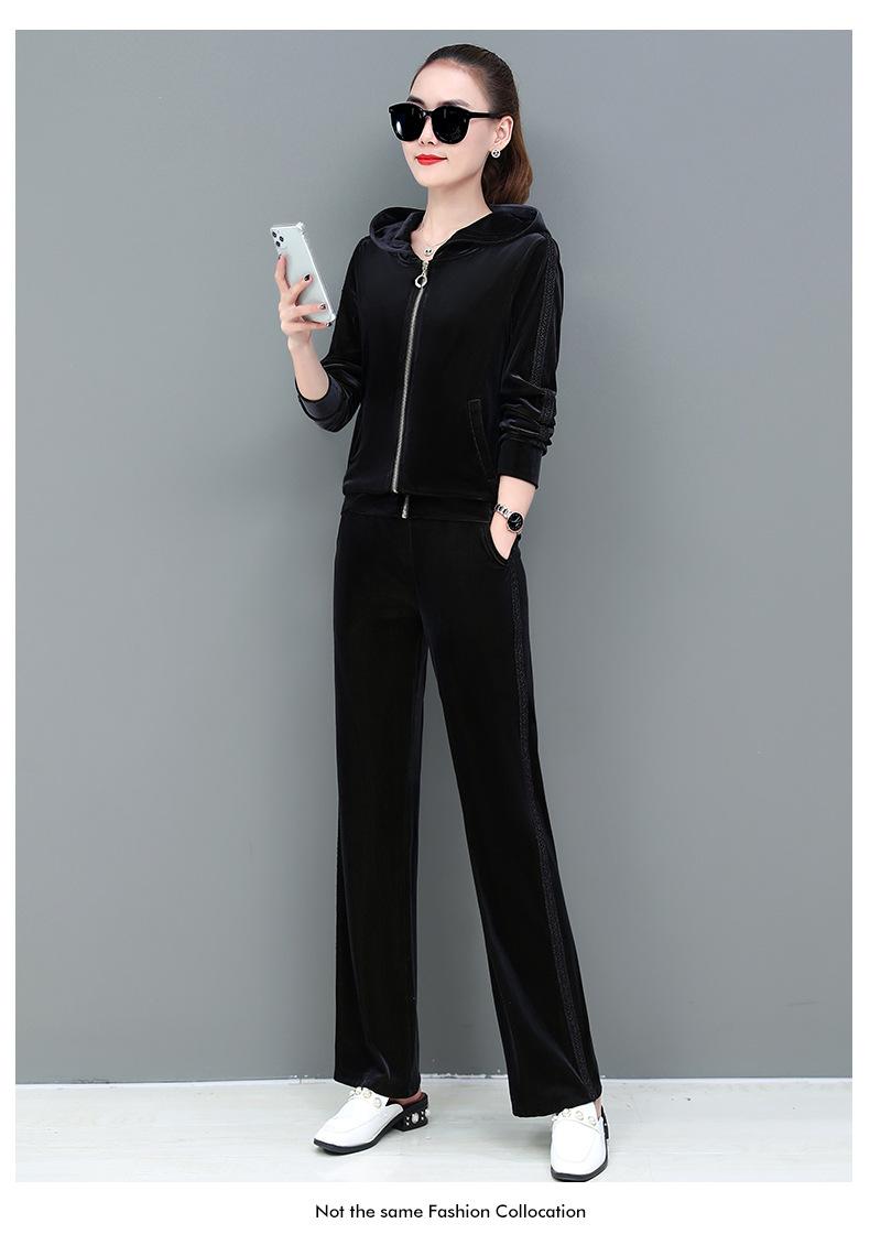 Traje deportivo informal de terciopelo dorado para mujer, moda 2022, nuevo conjunto de dos piezas con capucha y suéter fino para mujer, primavera y otoño