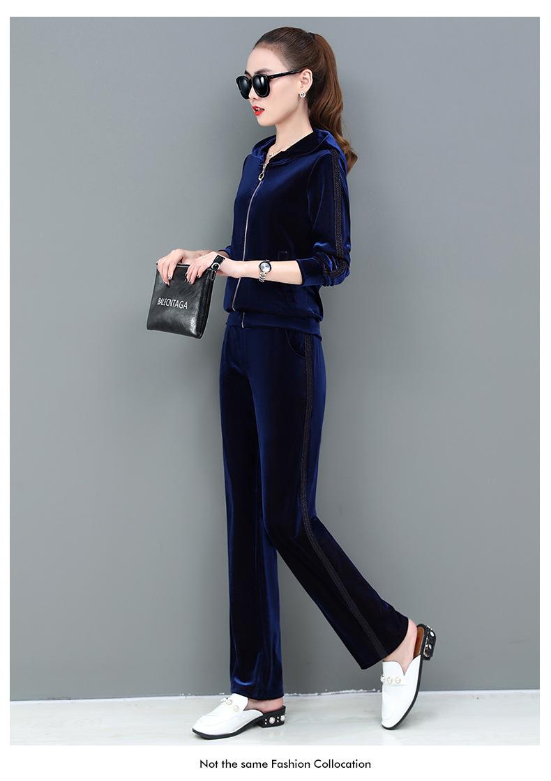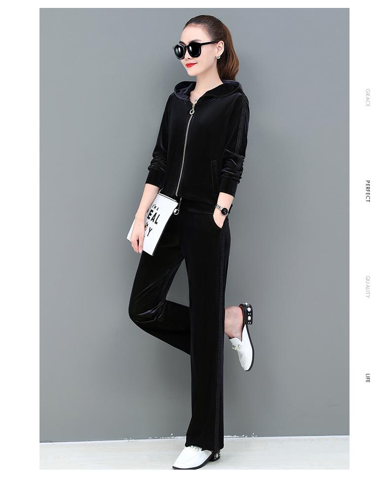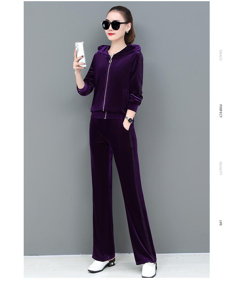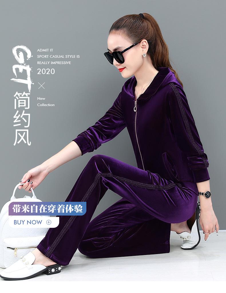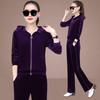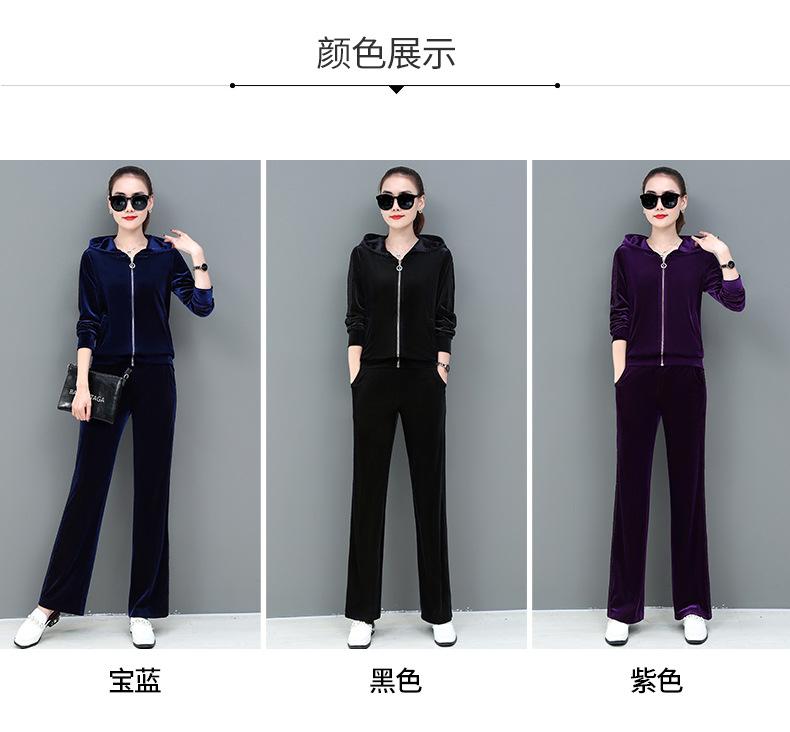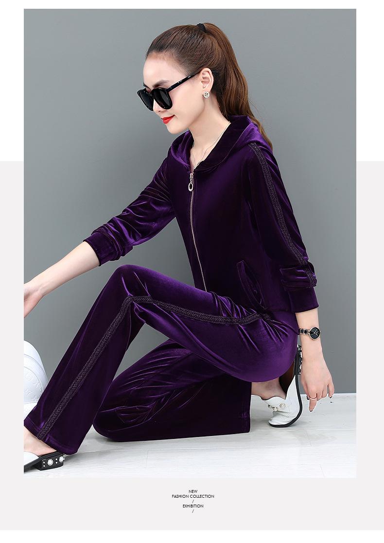 Traje deportivo informal de terciopelo dorado para mujer, moda 2022, nuevo conjunto de dos piezas con capucha y suéter fino para mujer, primavera y otoño
