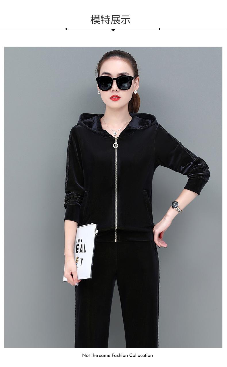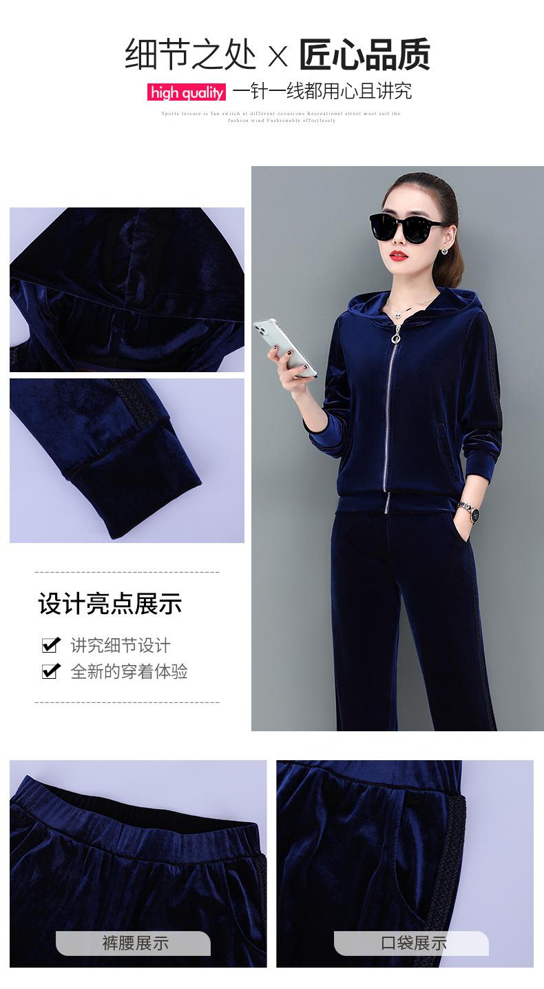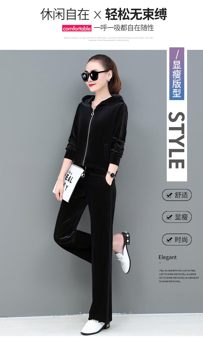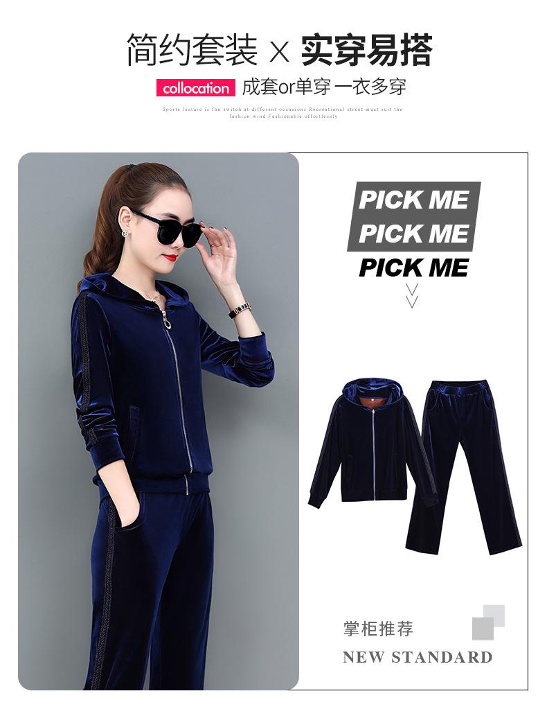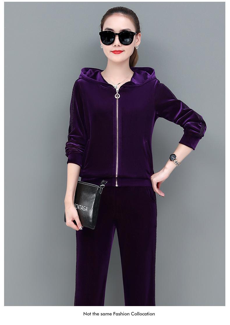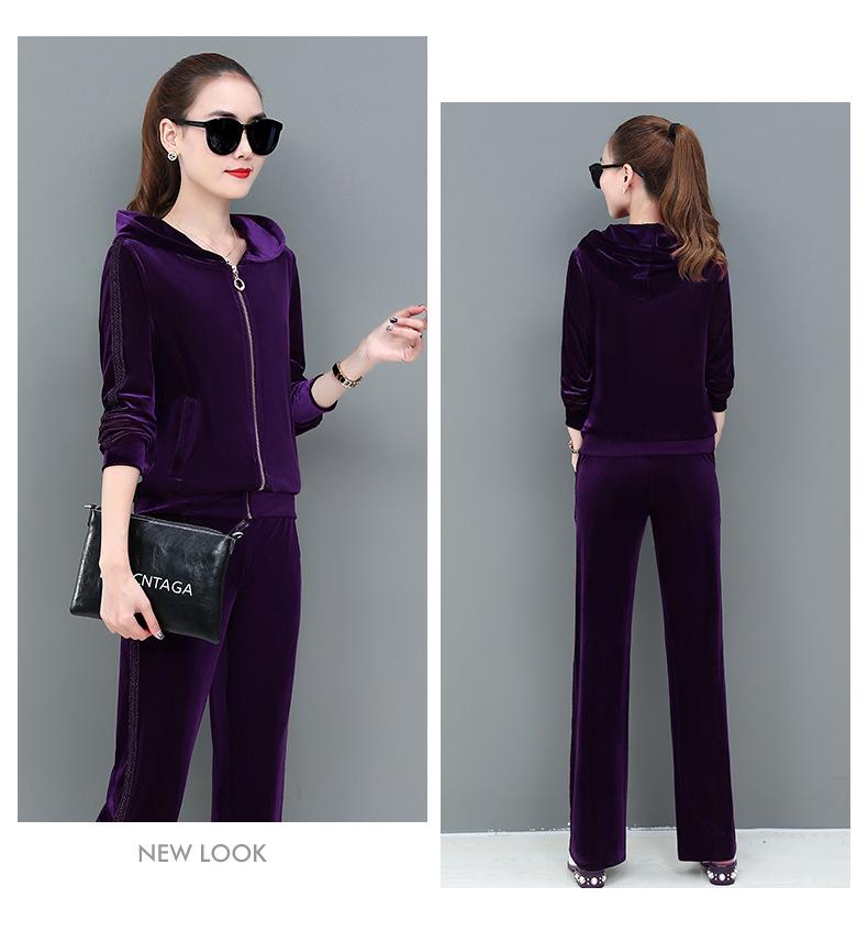 Traje deportivo informal de terciopelo dorado para mujer, moda 2022, nuevo conjunto de dos piezas con capucha y suéter fino para mujer, primavera y otoño
