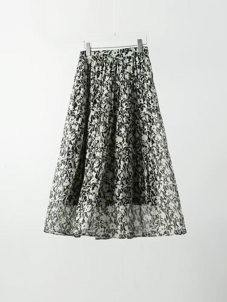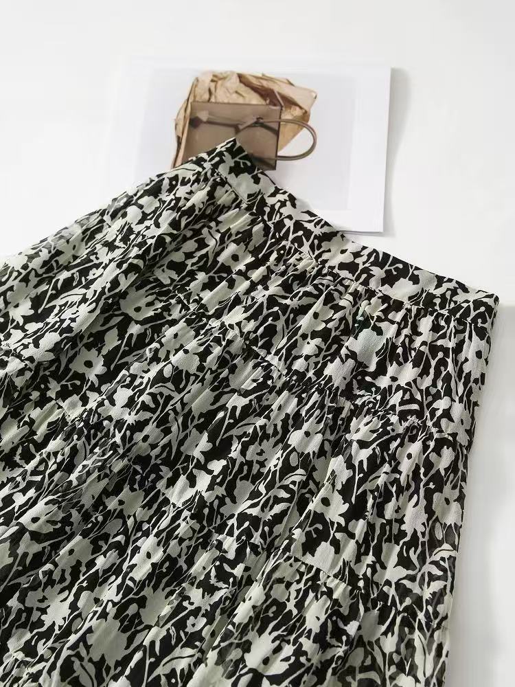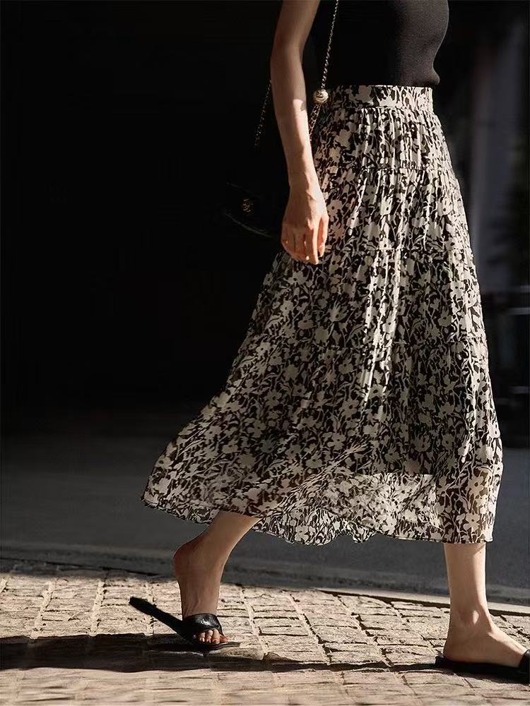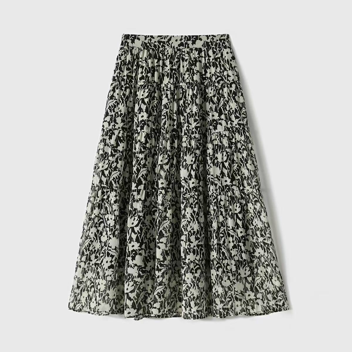 Falda acampanada estampada de largo medio 2025 Verano Nuevo estilo Delgada Elegante Para todo Falda hasta la rodilla para mujer Moderna