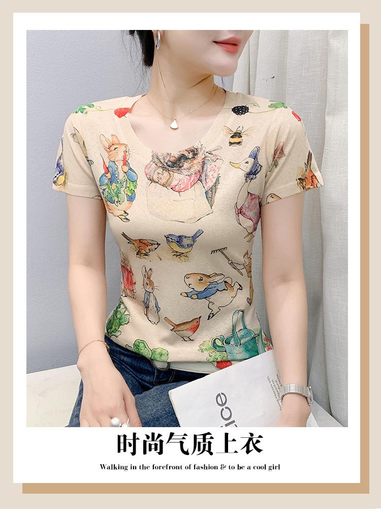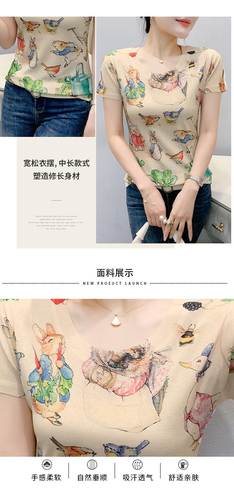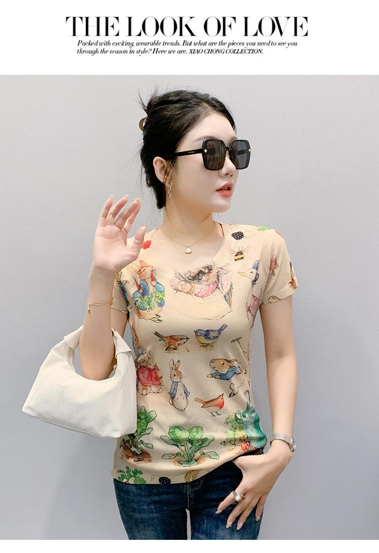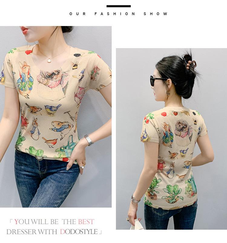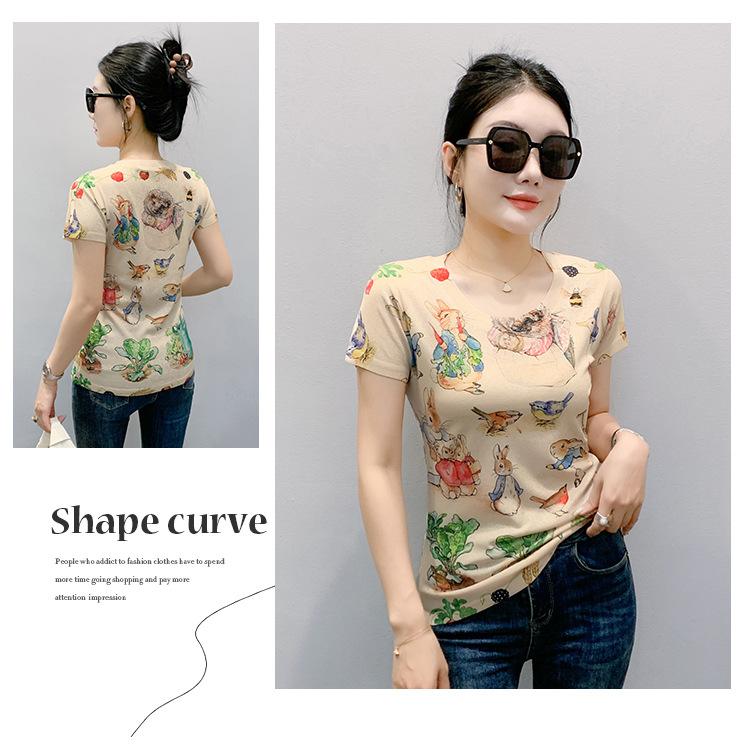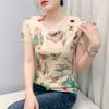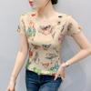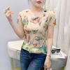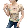 2025 Verano Nueva Moda Camiseta de Manga Corta Estampada Camiseta Base Ajustada Cuello Redondo Casual Combinable Top Delgado para Mujer