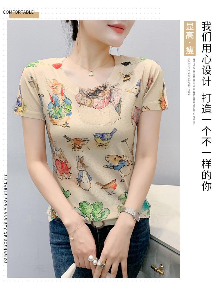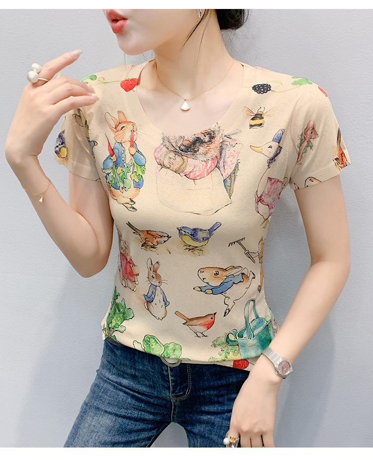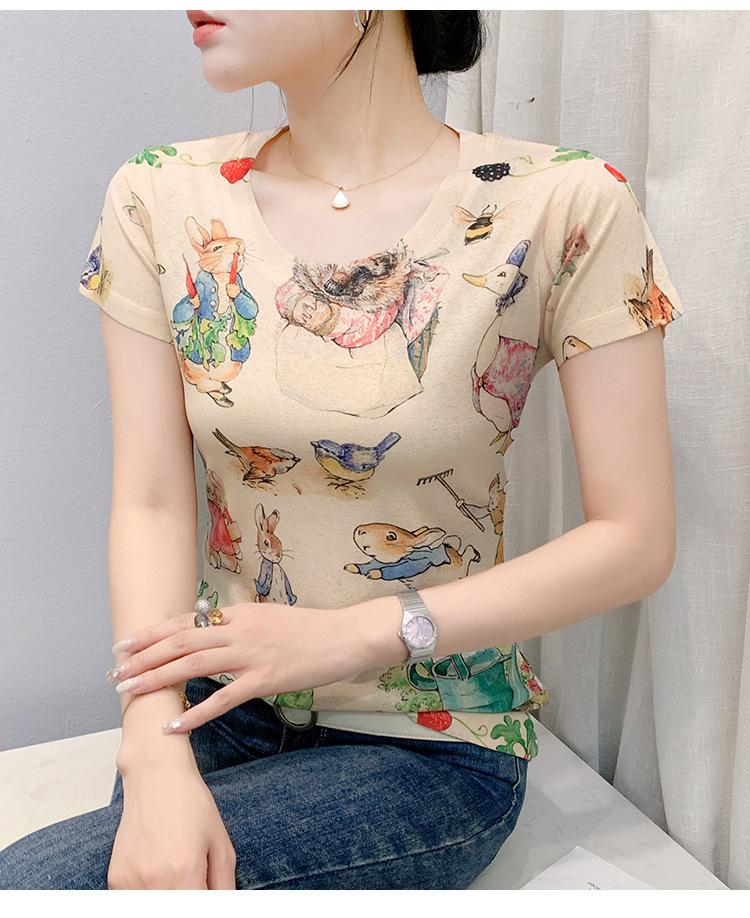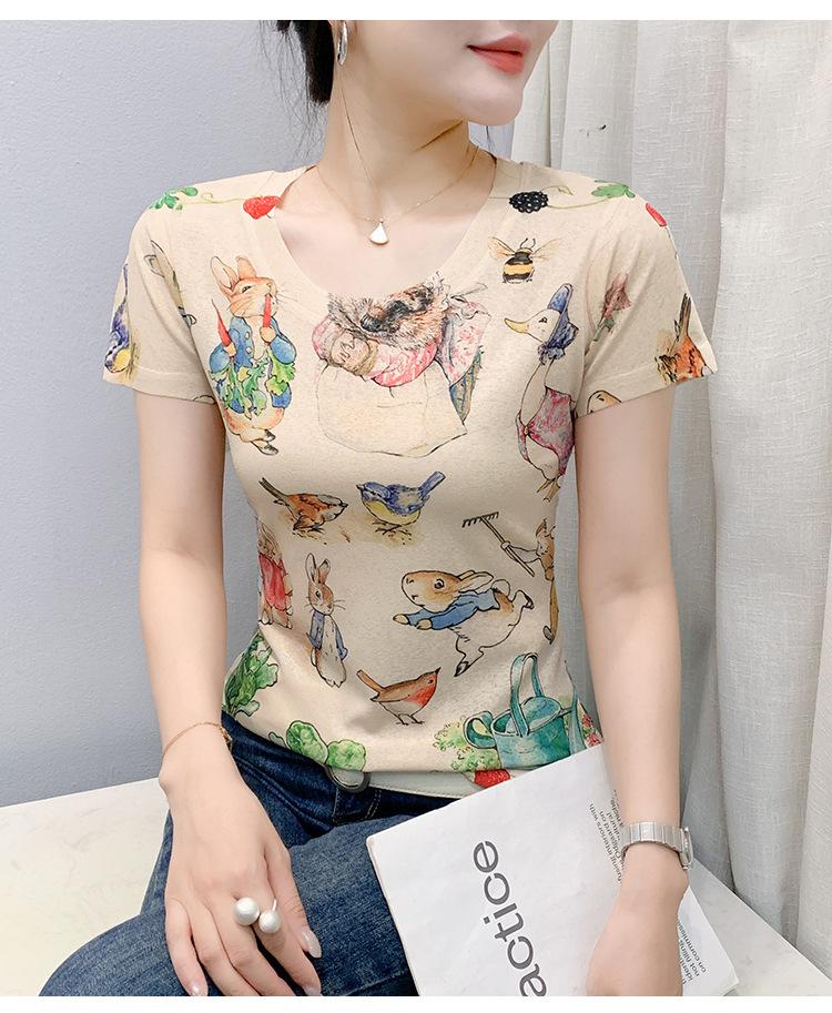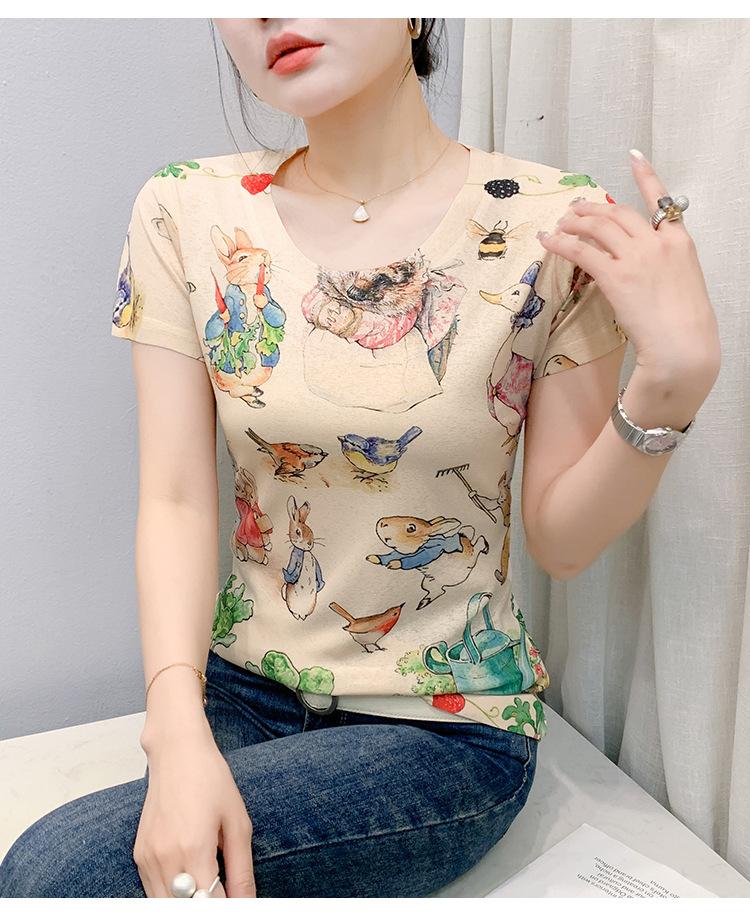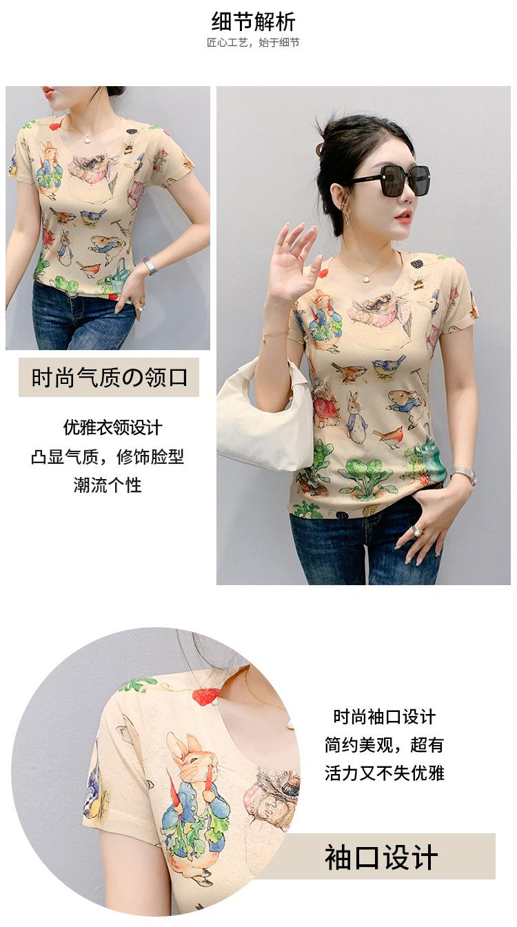 2025 Verano Nueva Moda Camiseta de Manga Corta Estampada Camiseta Base Ajustada Cuello Redondo Casual Combinable Top Delgado para Mujer
