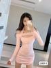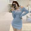 Vestido de Color Sólido Otoño 2023 Nuevo para Mujer Ajustado Sexy Cuello Halter Hombro Descubierto Irregular Falda de Cadera