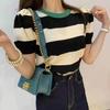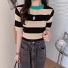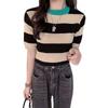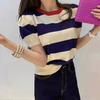 Suéter de punto de manga larga para mujer, chic coreano de otoño, nicho, cuello redondo, diseño de rayas a juego de colores, corte ajustado, versátil