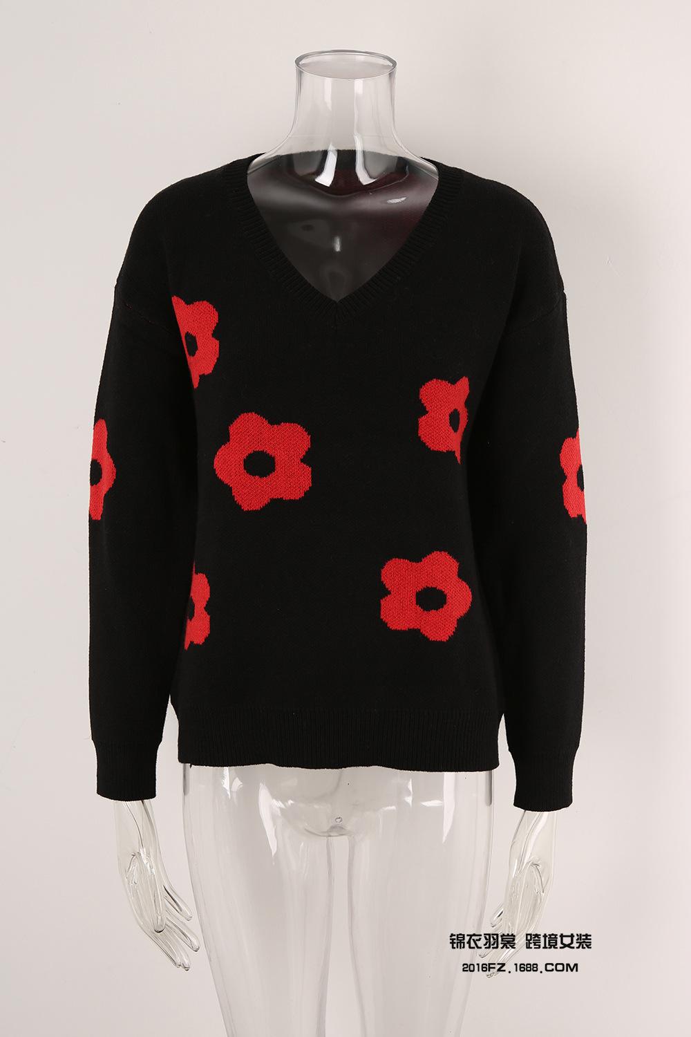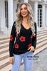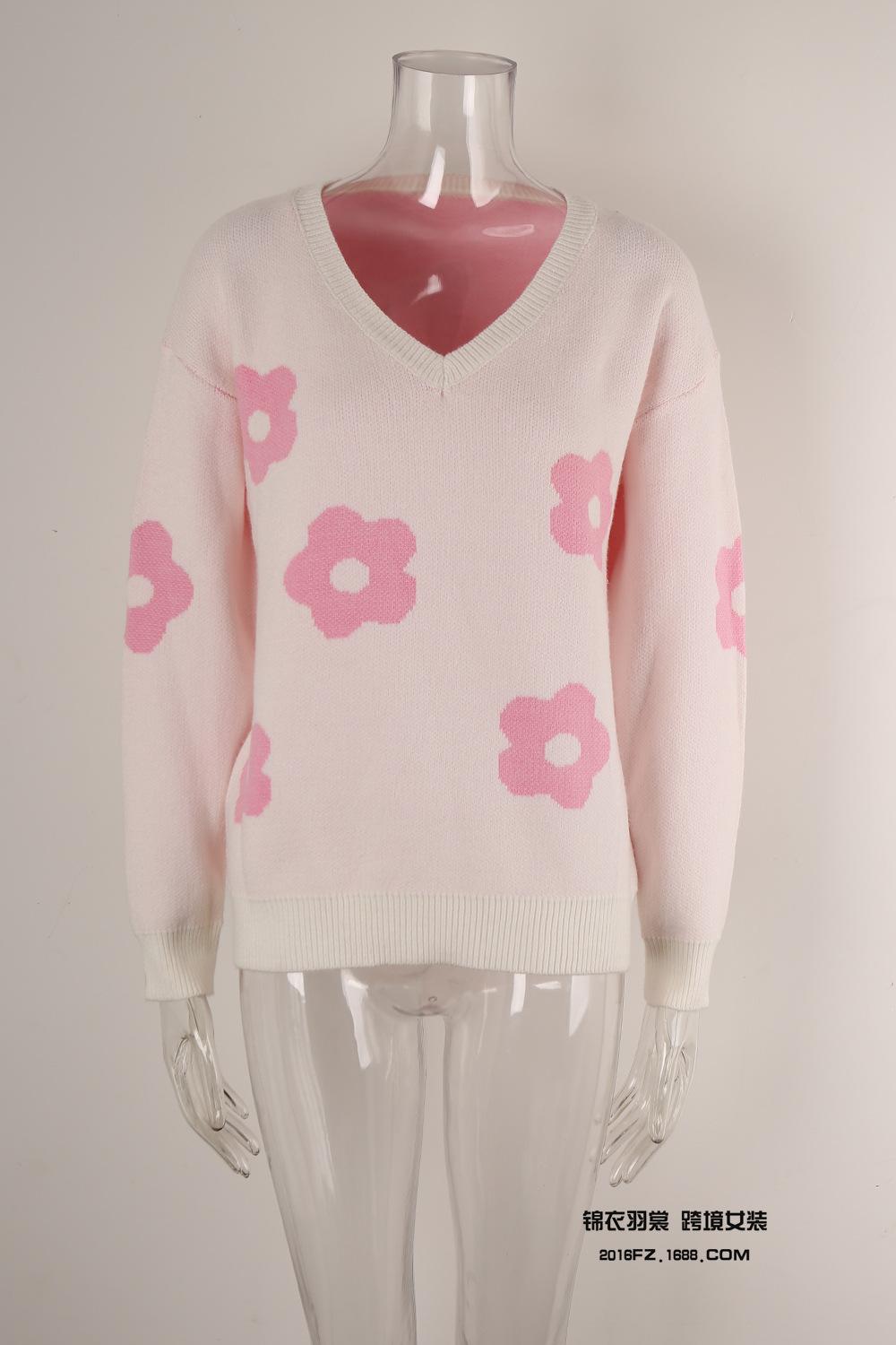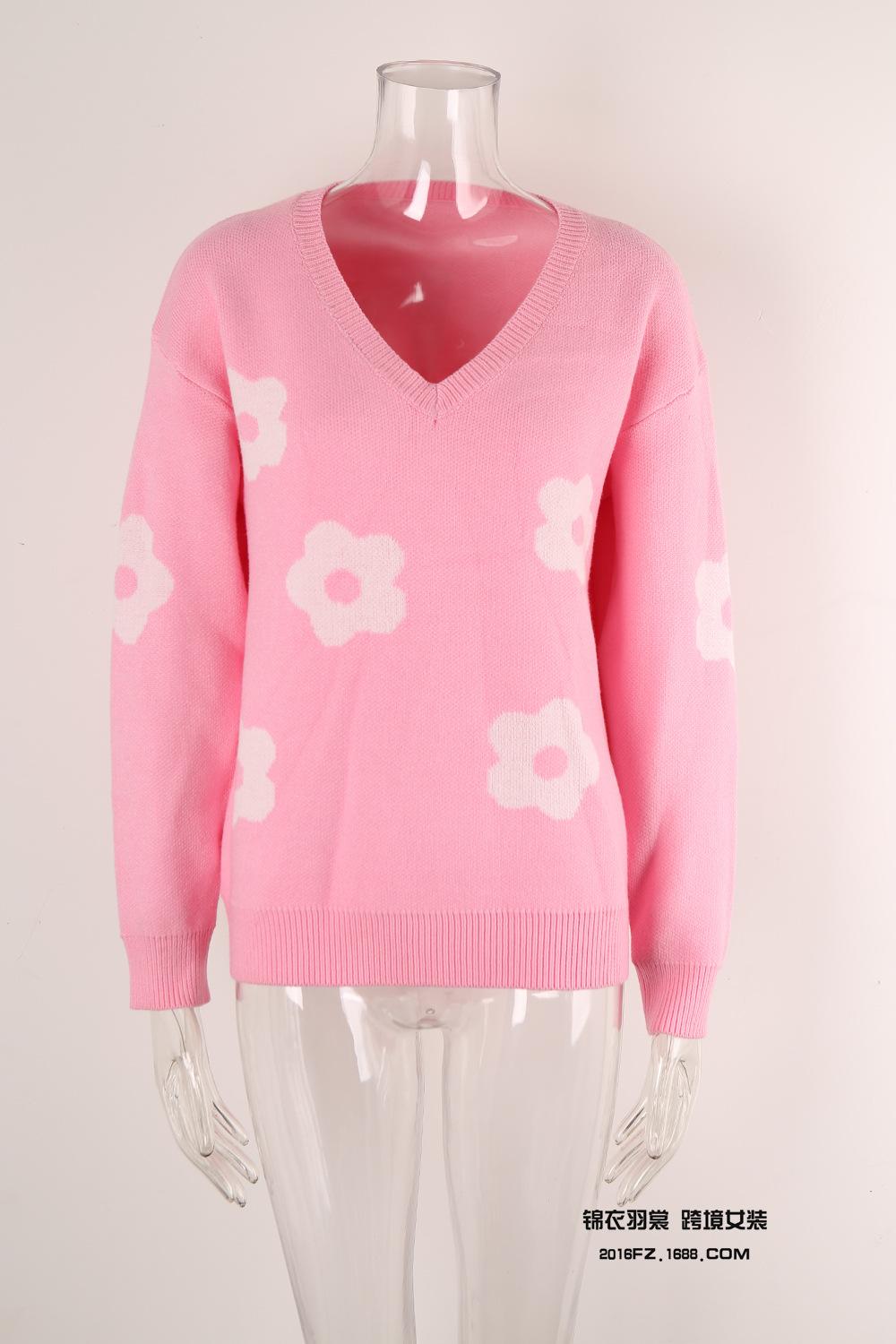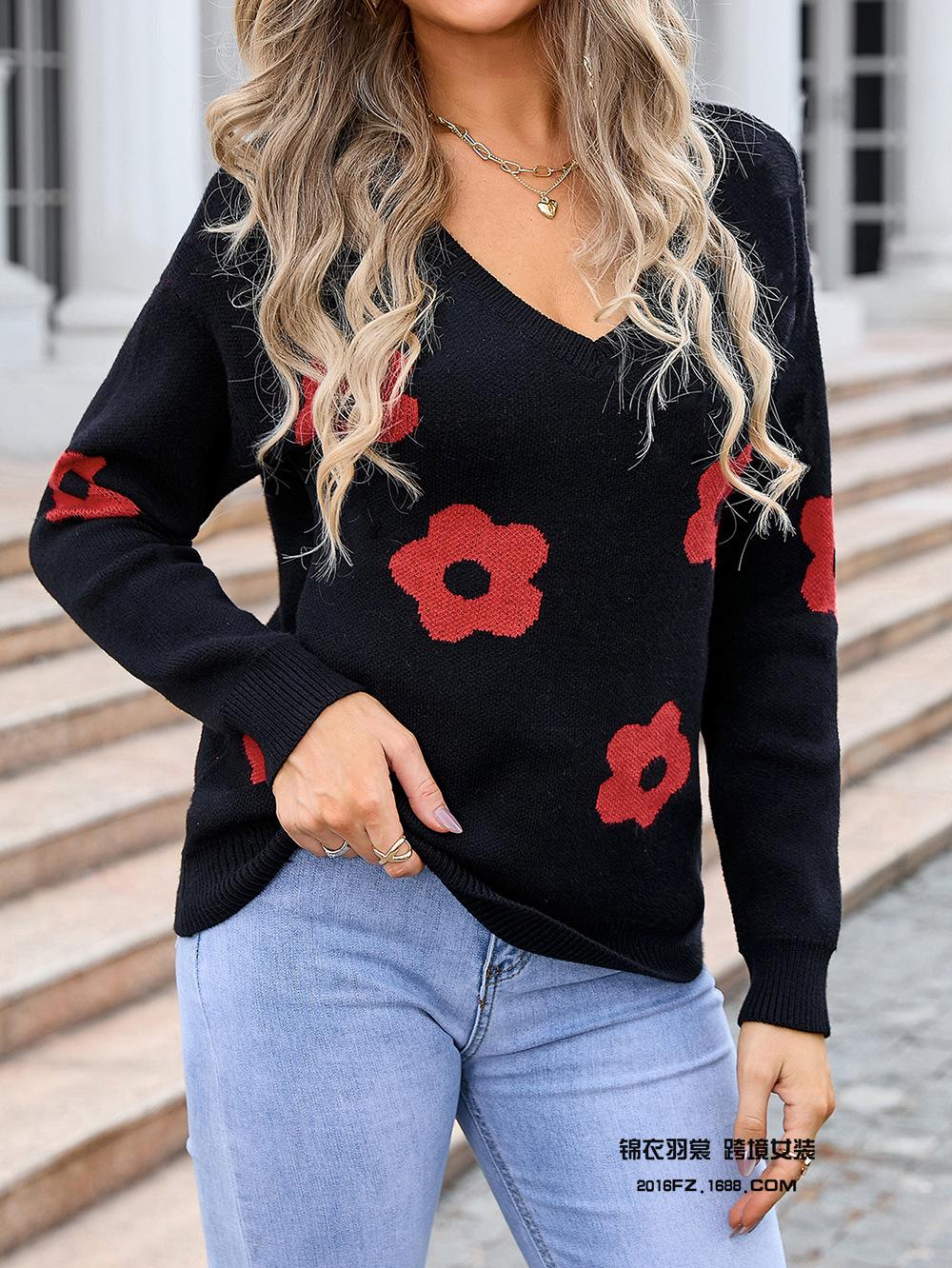 Tejidos de Punto Europeos y Americanos 2025 Amazon Exportación Transfronteriza Tejidos de Punto de Talla Grande Cuello en V Manga Larga Tejidos de Punto de Flores Envío Directo