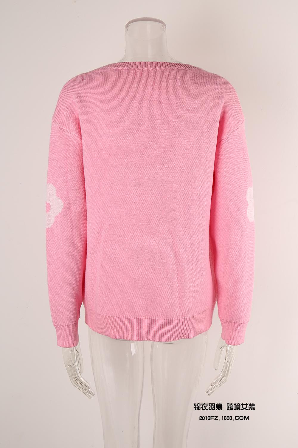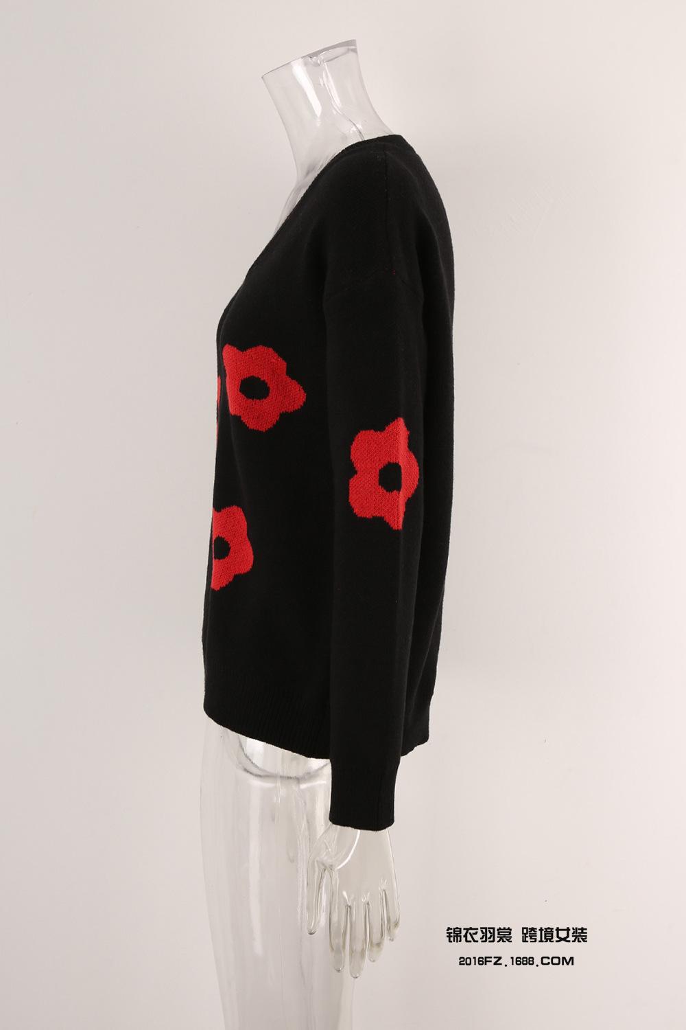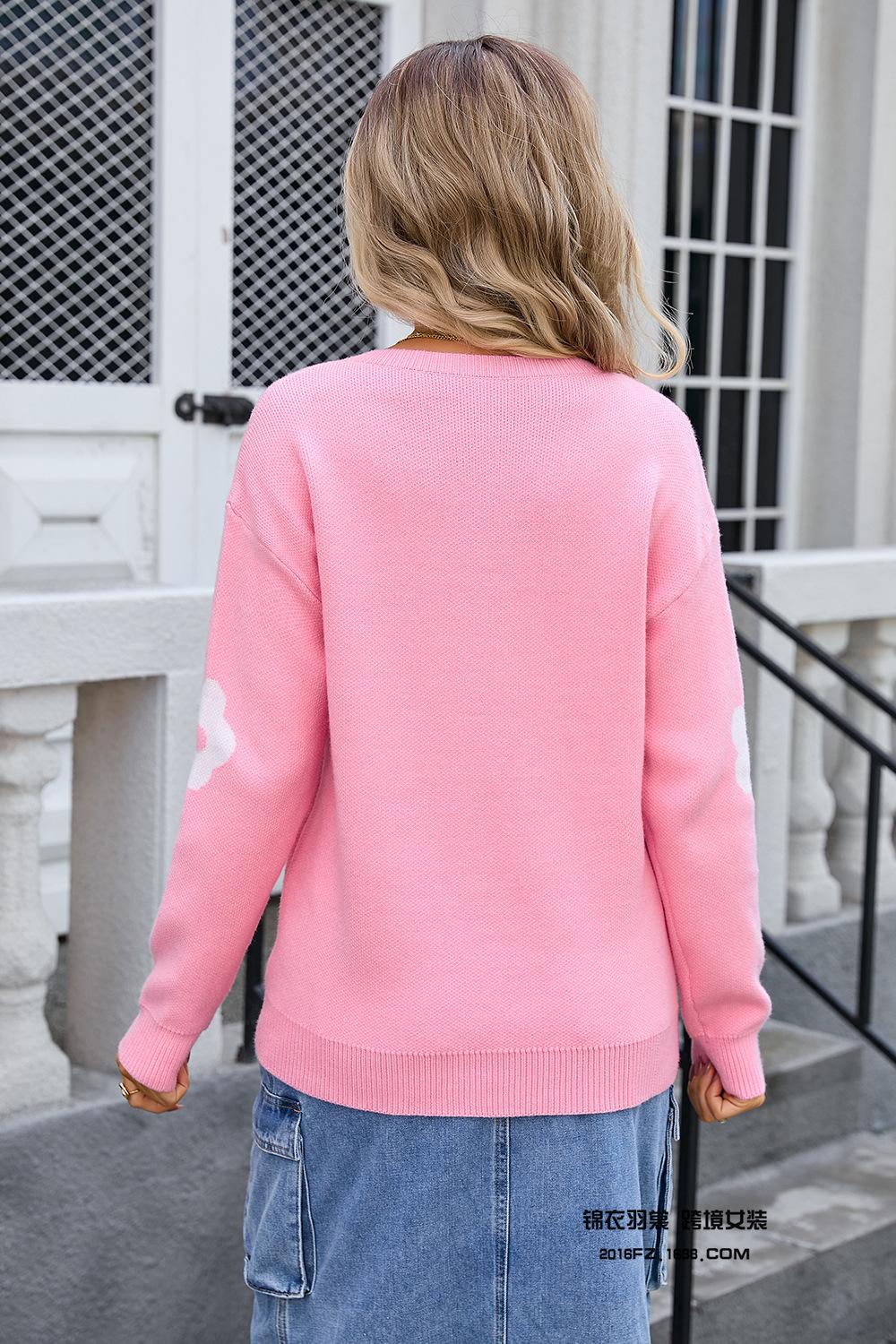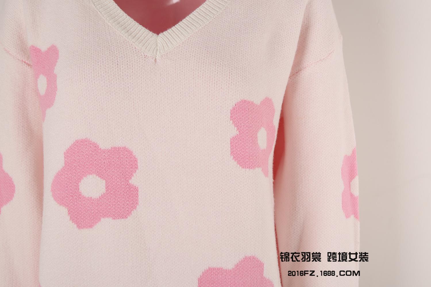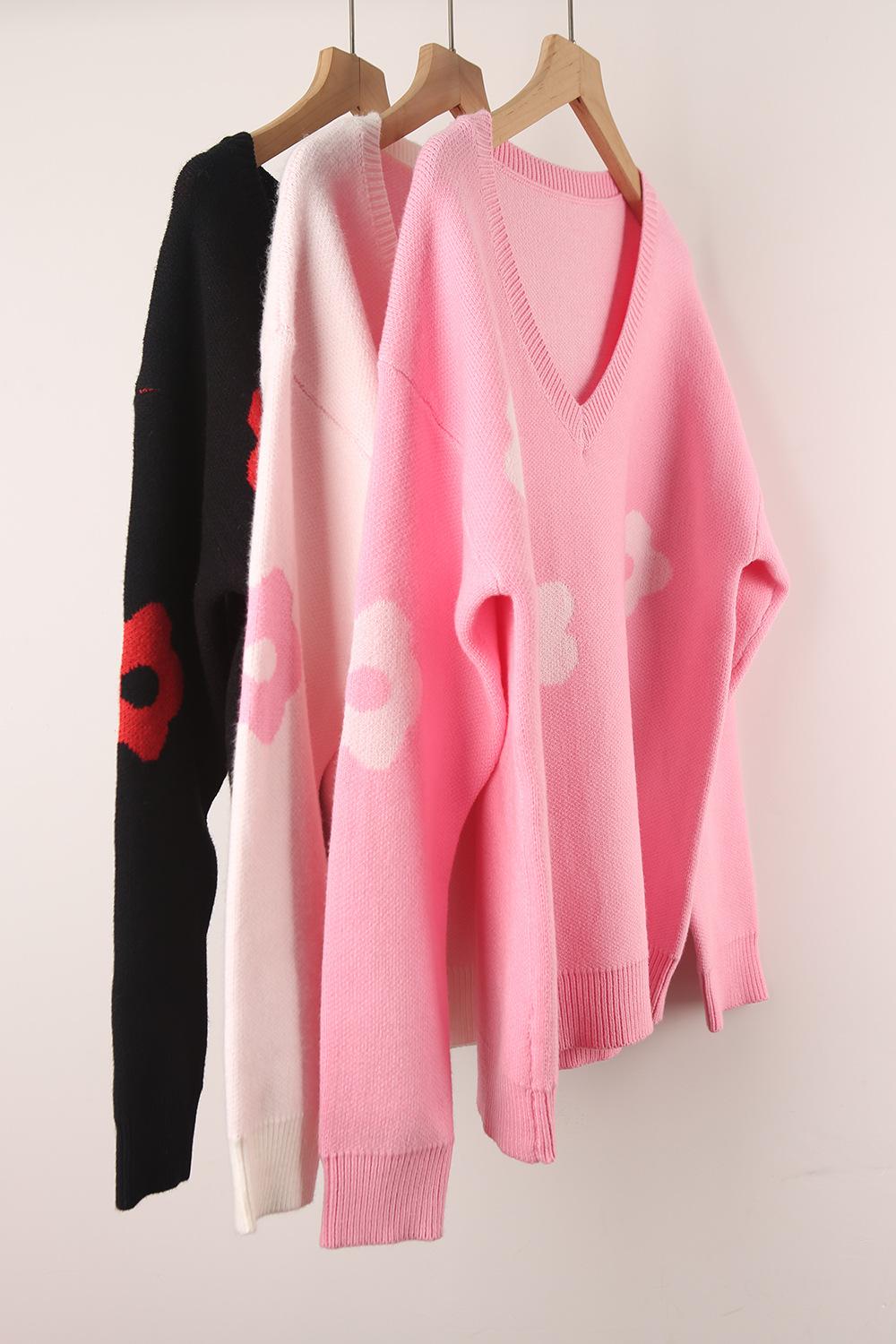 Tejidos de Punto Europeos y Americanos 2025 Amazon Exportación Transfronteriza Tejidos de Punto de Talla Grande Cuello en V Manga Larga Tejidos de Punto de Flores Envío Directo