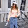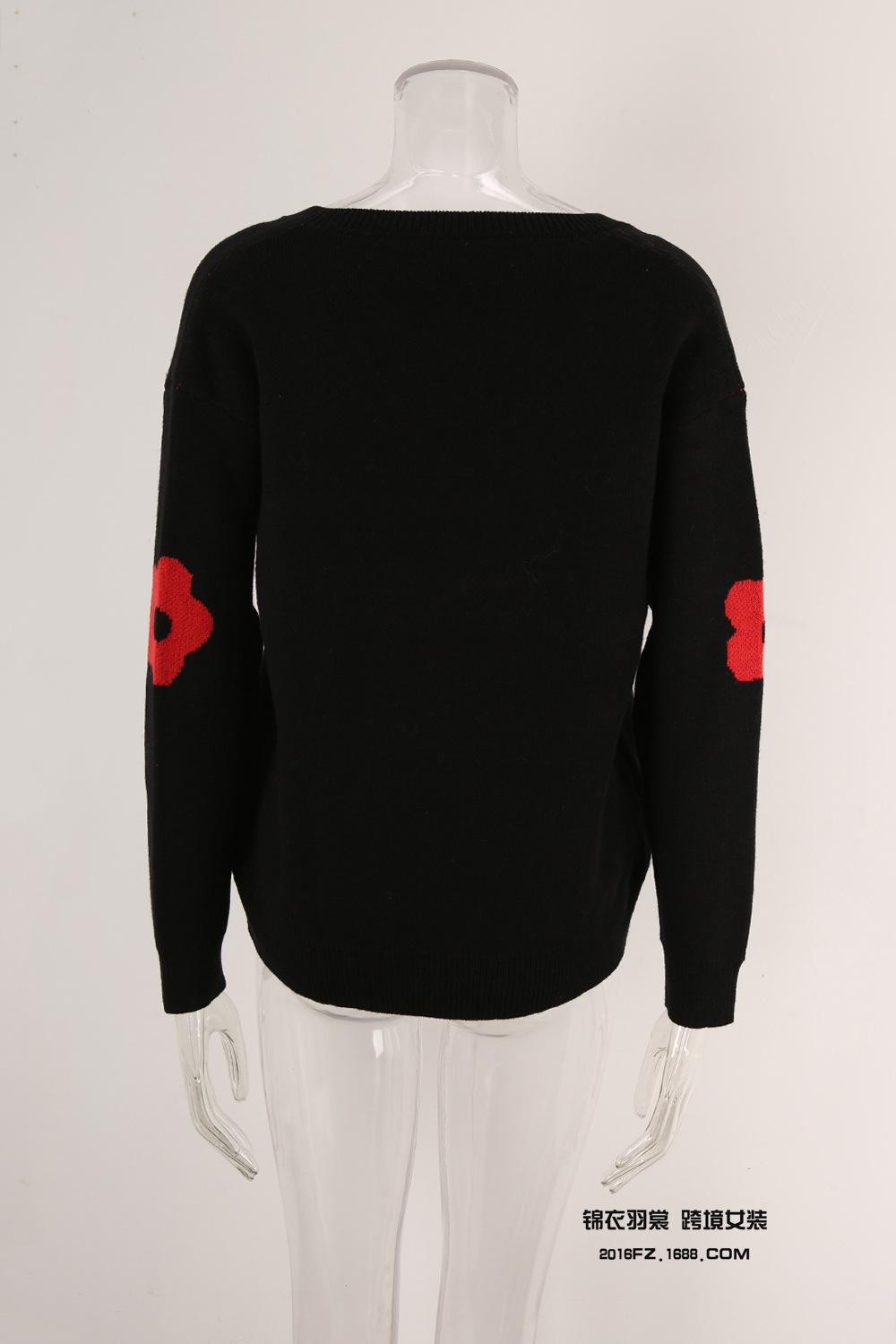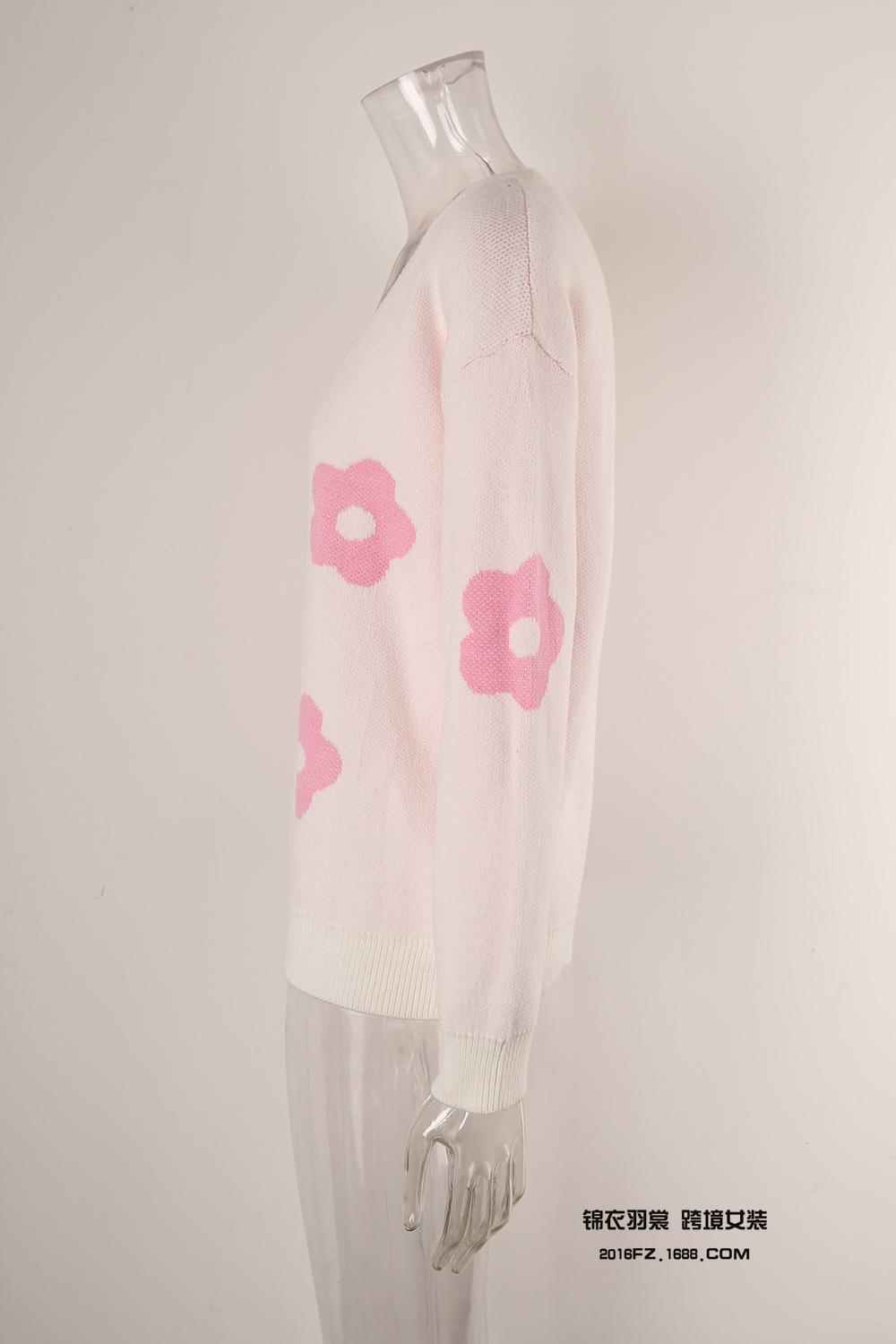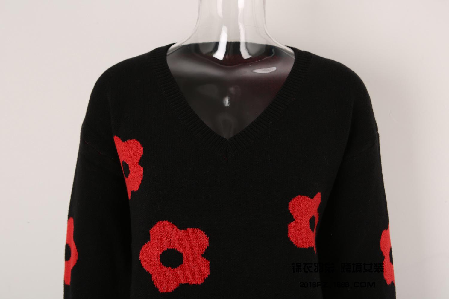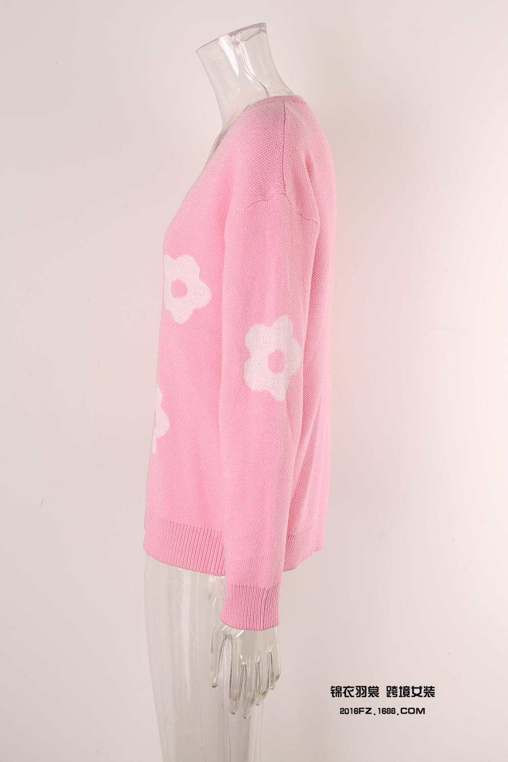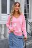 Tejidos de Punto Europeos y Americanos 2025 Amazon Exportación Transfronteriza Tejidos de Punto de Talla Grande Cuello en V Manga Larga Tejidos de Punto de Flores Envío Directo