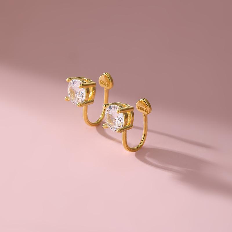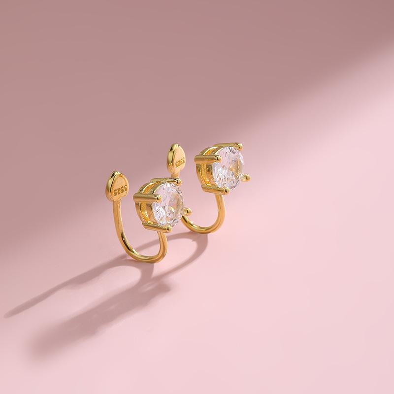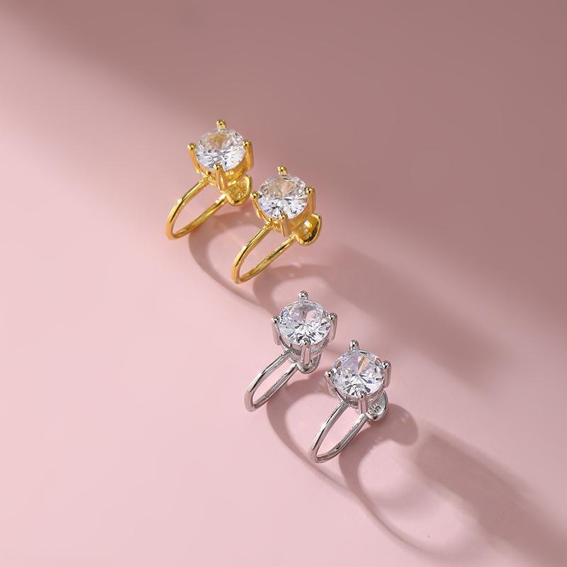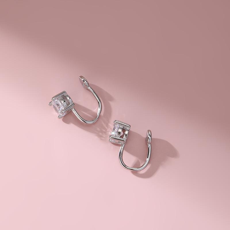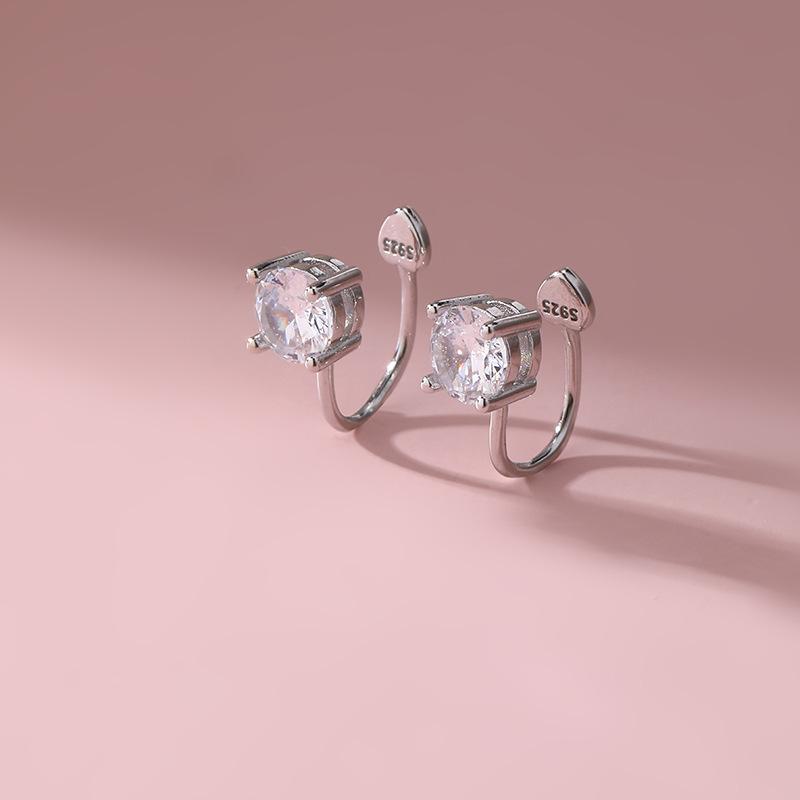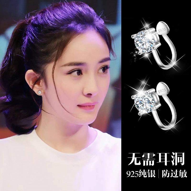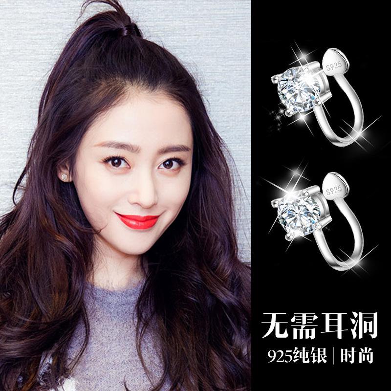 Moda Coreana Clip para Oreja Clip para Oreja de Mujer Sin Agujero Sin Perforación Aretes de Plata con Incrustaciones de Diamantes Joyería de Moda Nueva 2025