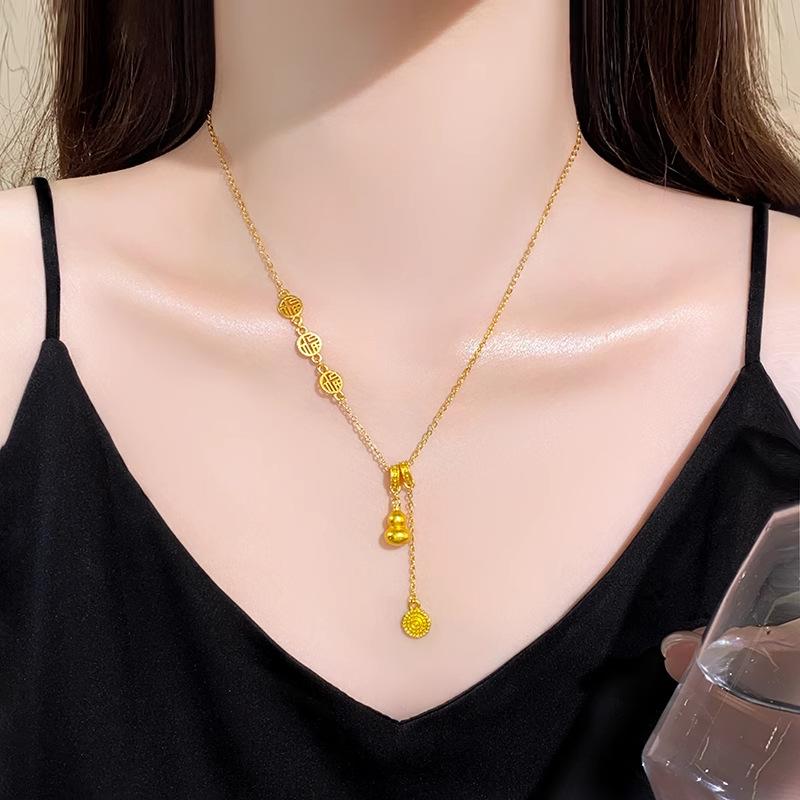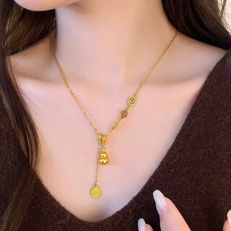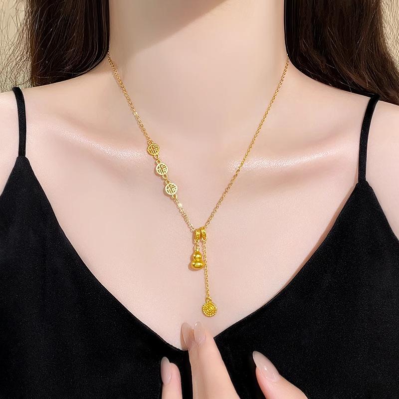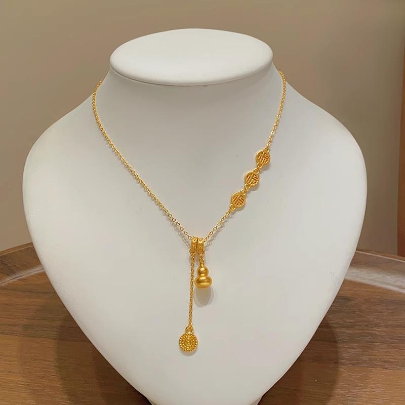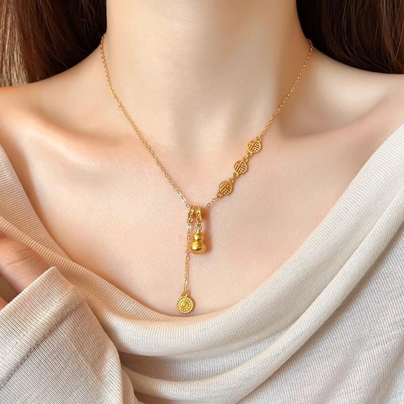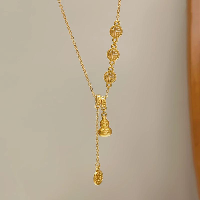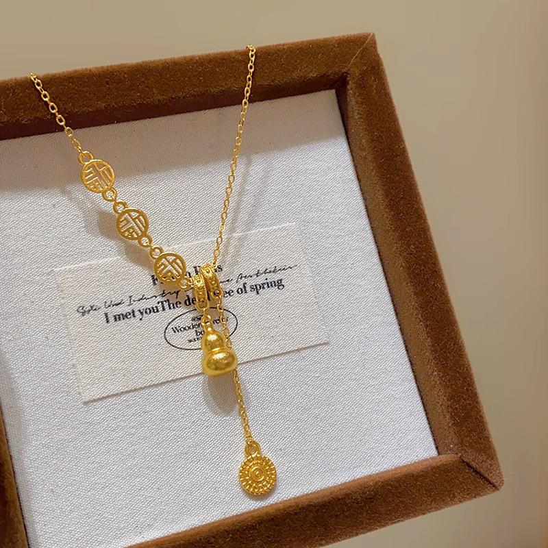 Nuevo collar de calabaza dorada de estilo chino para mujer, diseño de nicho de lujo ligero, estilo nacional de alta calidad, elegante cadena de clavícula con borlas de la marca Fortune