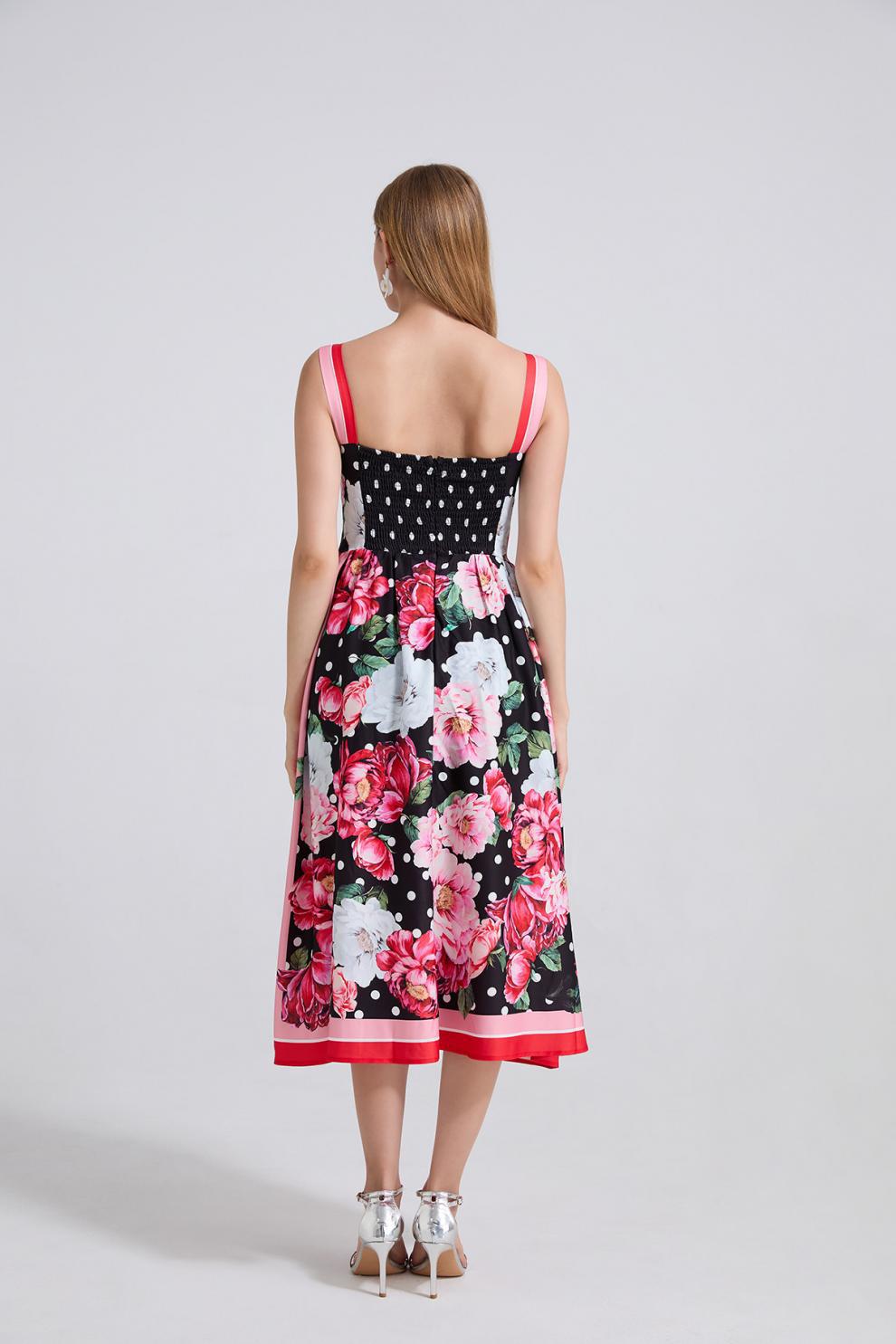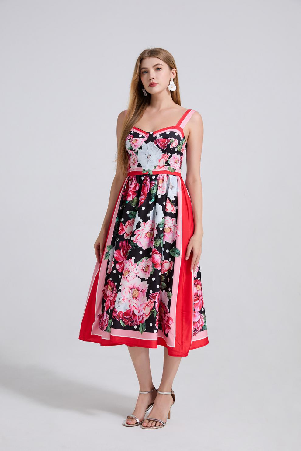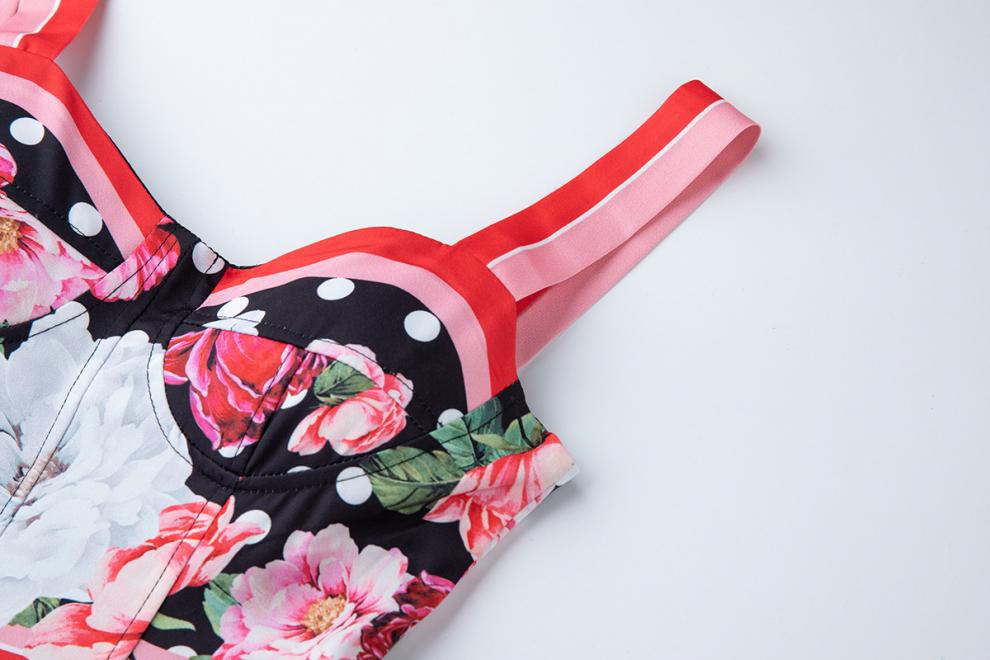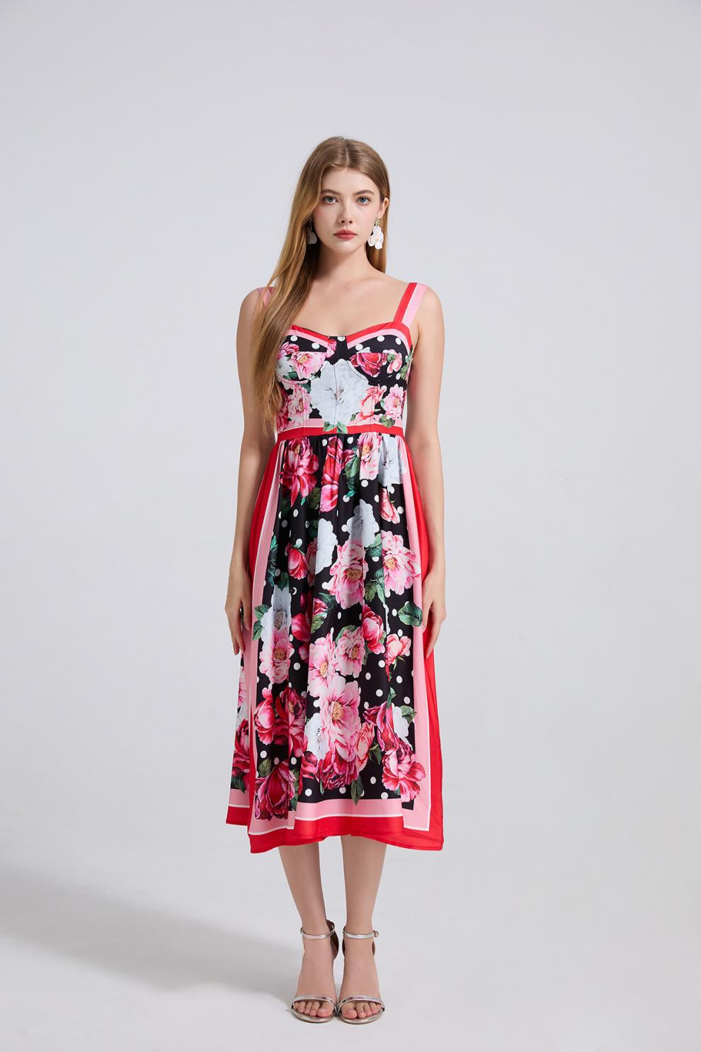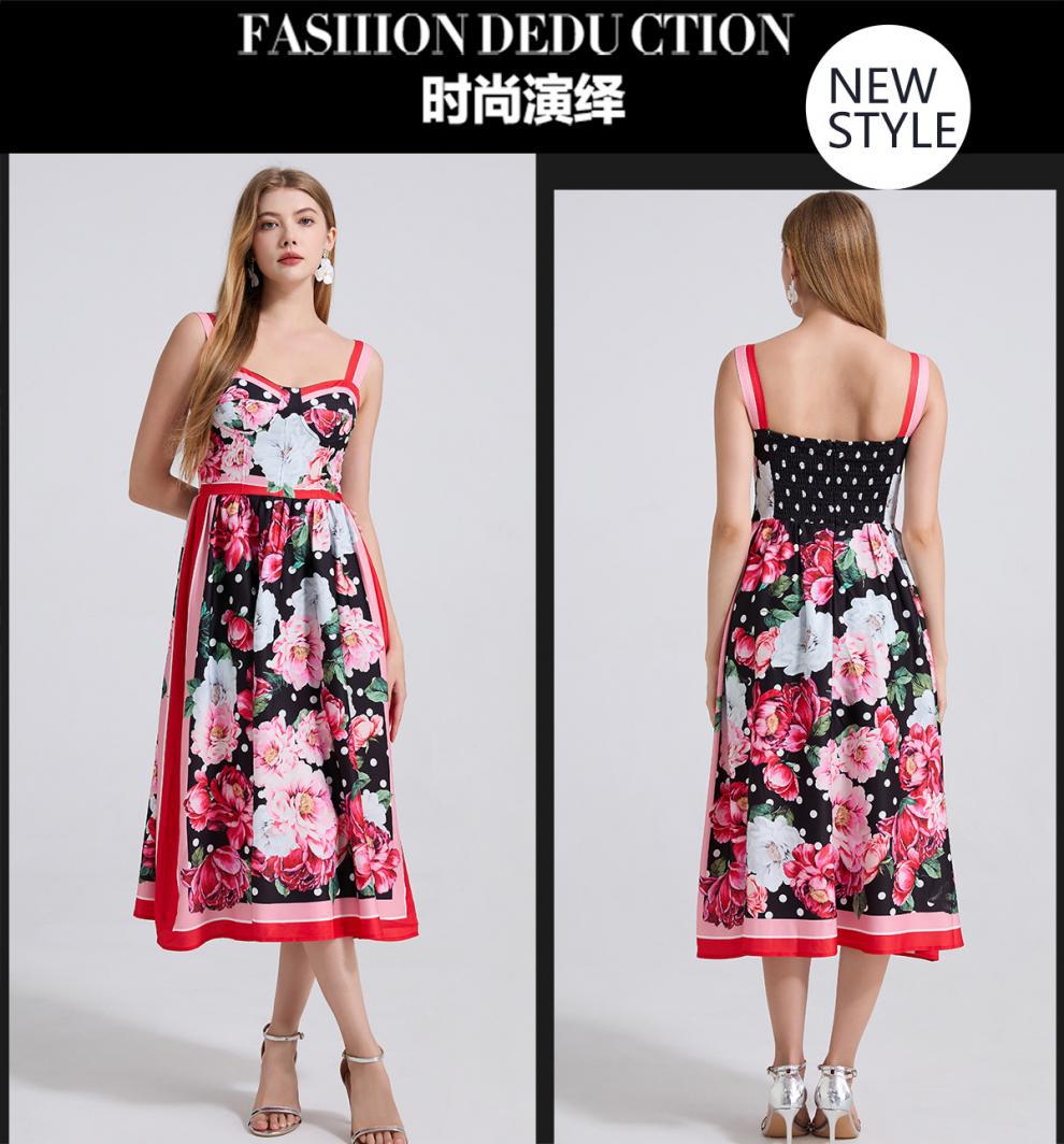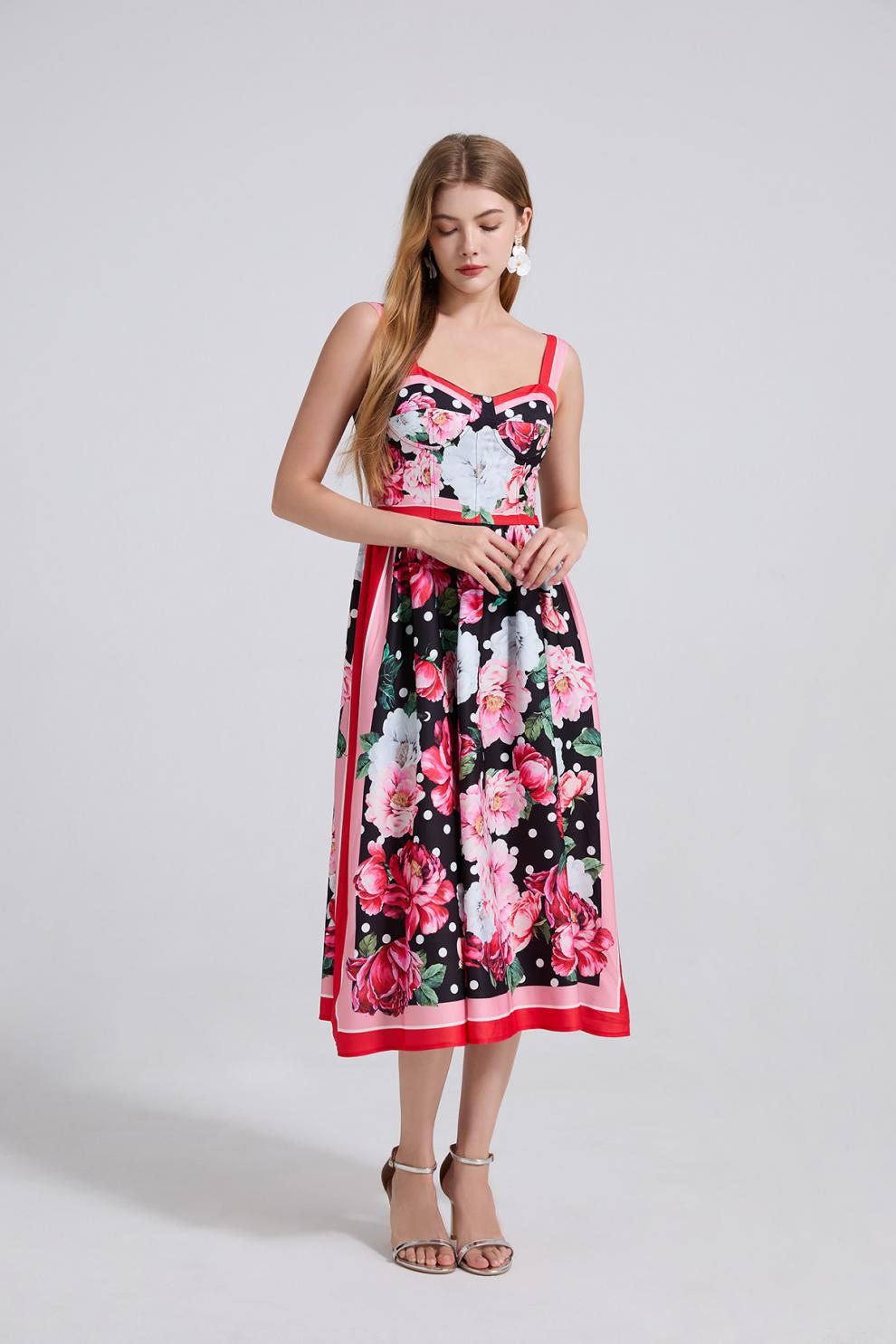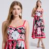 Vestido 2025 Transfronterizo de Flores con Lunares Estampado Posicionado Tridimensional Sin Tirantes con Tirantes Espalda Goma Falda Cintura Alta