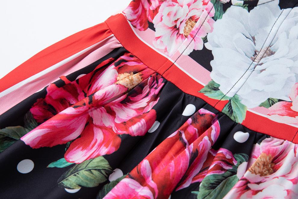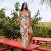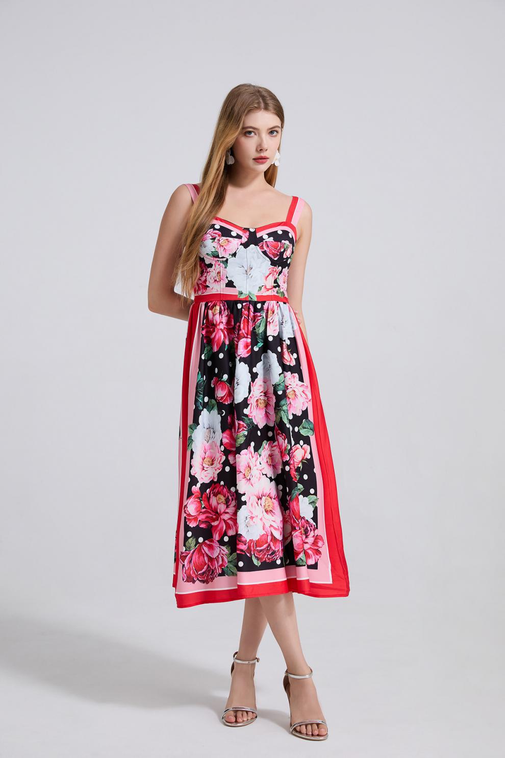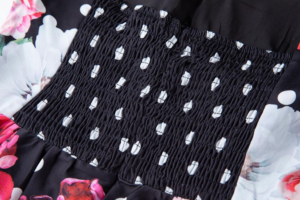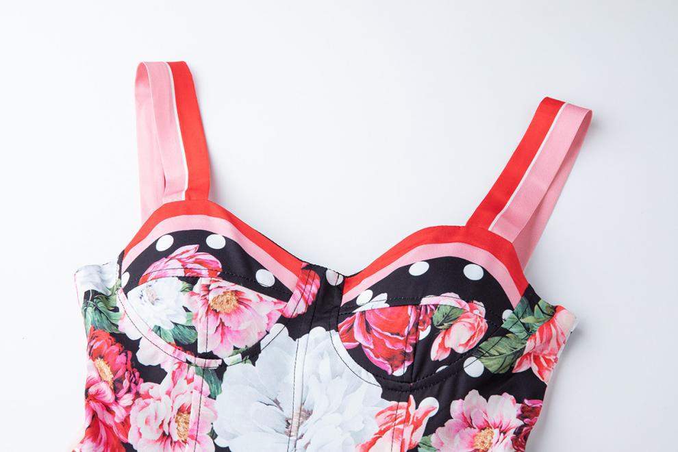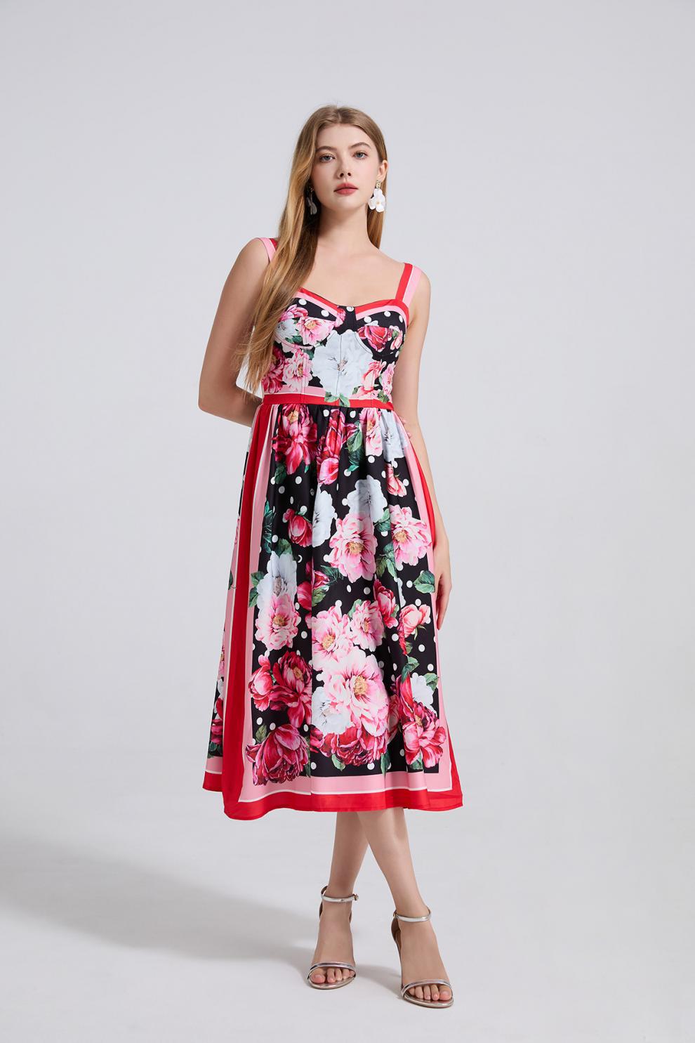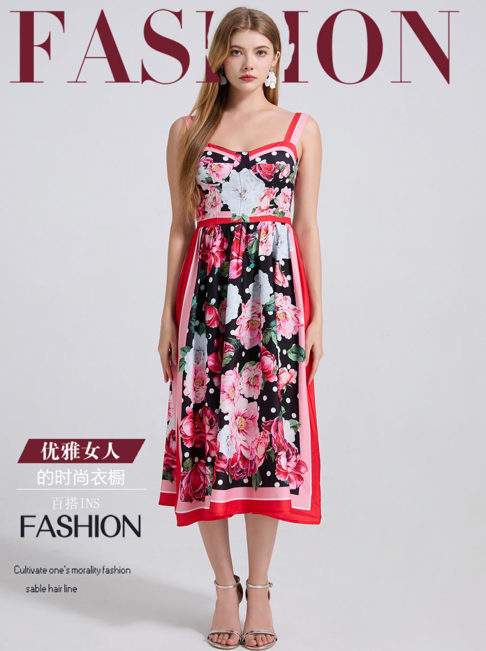 Vestido 2025 Transfronterizo de Flores con Lunares Estampado Posicionado Tridimensional Sin Tirantes con Tirantes Espalda Goma Falda Cintura Alta
