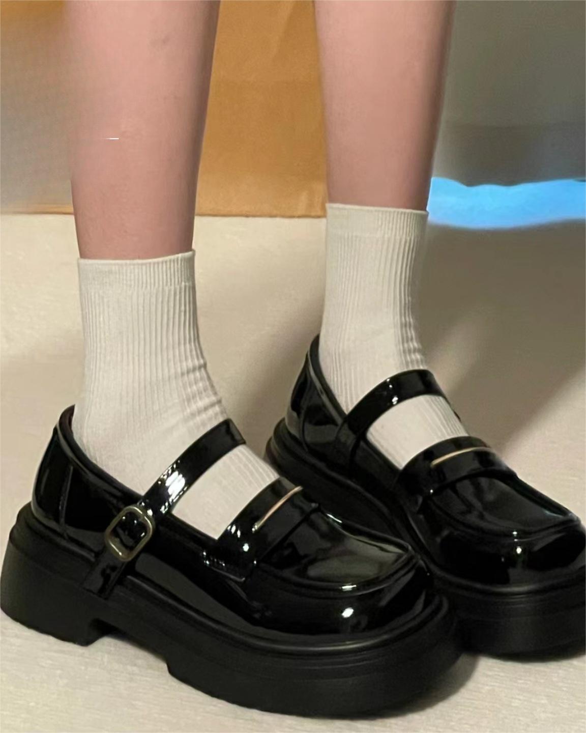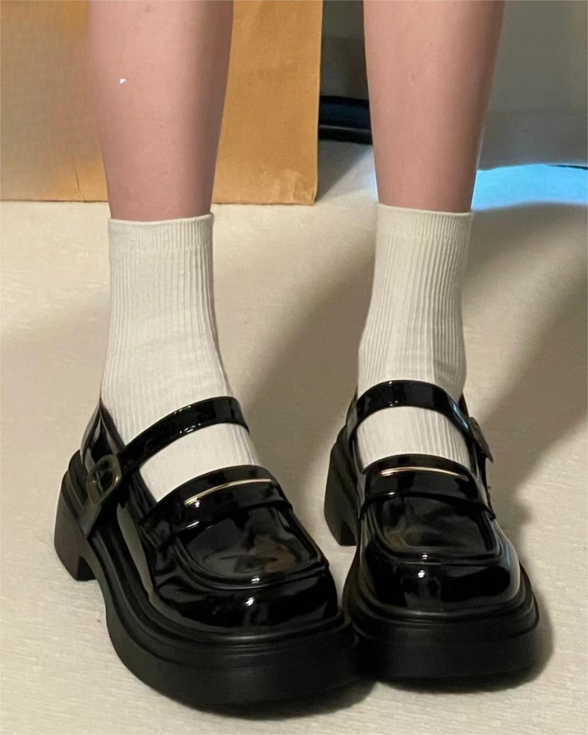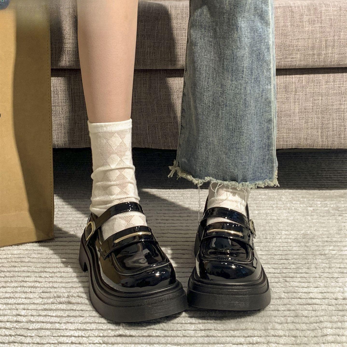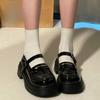 Zapatos Mary Jane de charol negro grueso para mujer, estilo retro de academia, de una sola capa y con falda, ¡nuevos 2025!