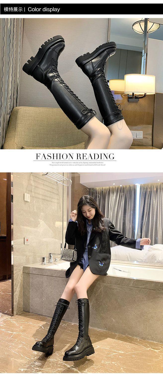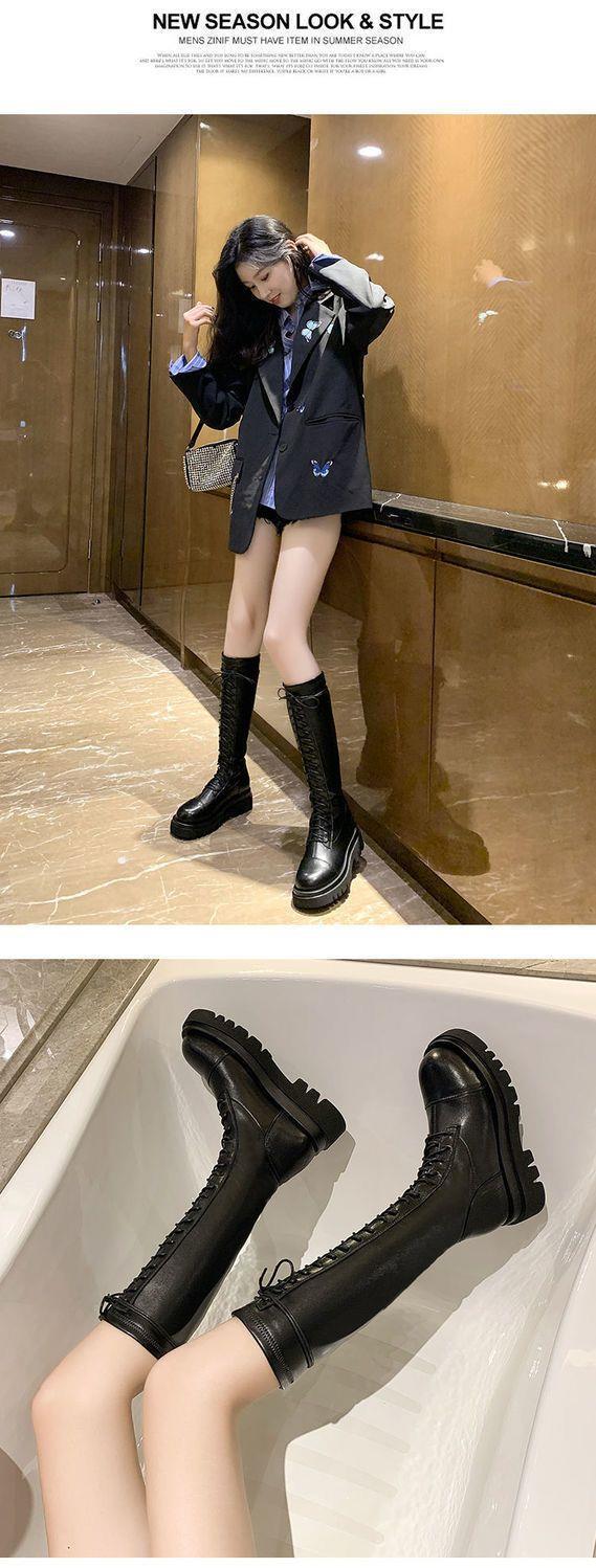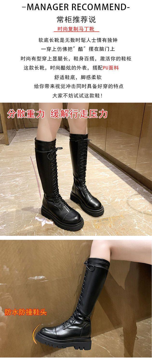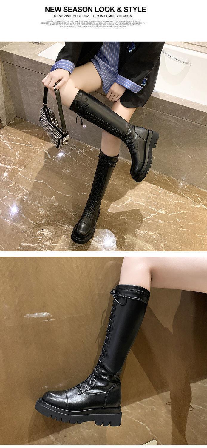 Botas altas de caballero para mujer, otoño e invierno 2021, con cordones, para estudiantes, de suela plana pero hasta la rodilla, botas elásticas