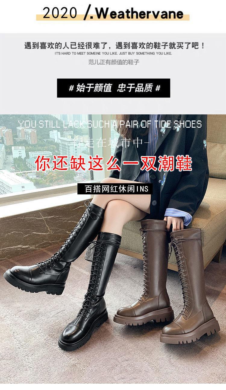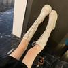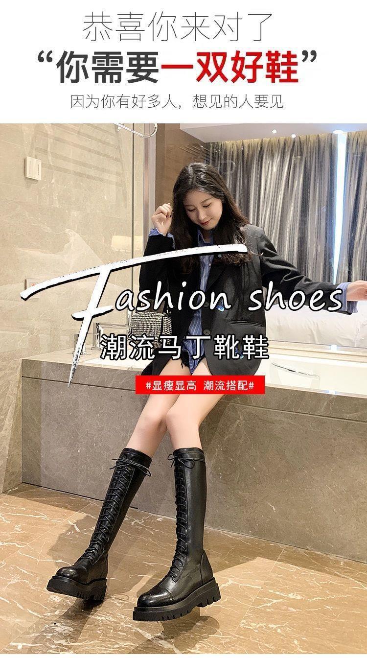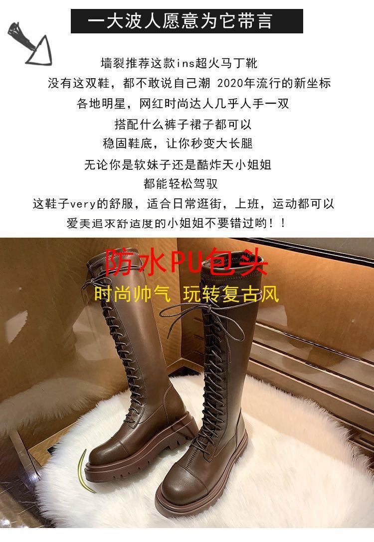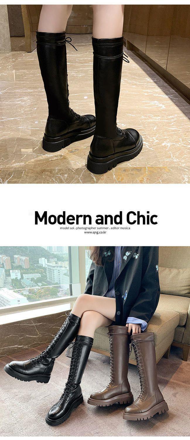 Botas altas de caballero para mujer, otoño e invierno 2021, con cordones, para estudiantes, de suela plana pero hasta la rodilla, botas elásticas