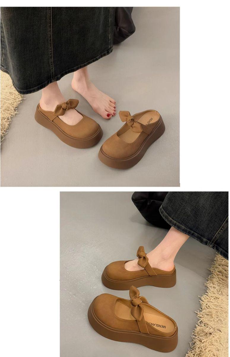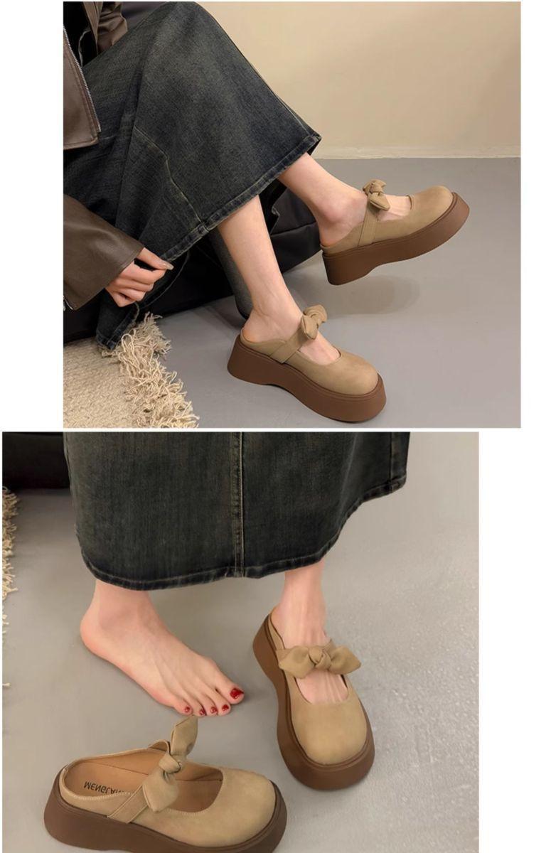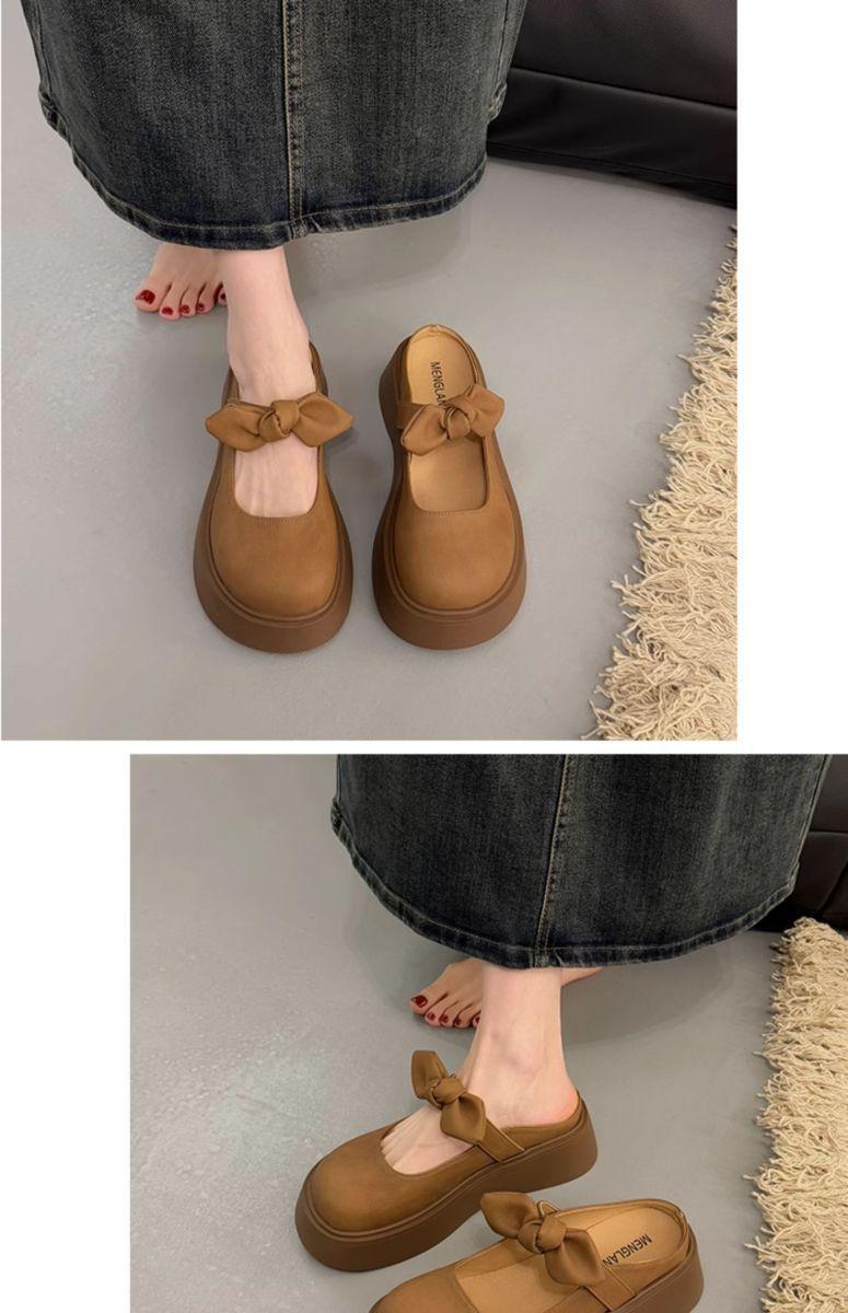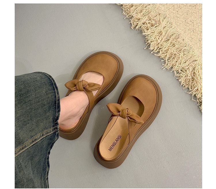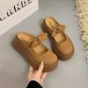 Zapatillas de tacón grueso con lazo en la puntera para mujer para uso exterior 2025 Nuevas Sandalias Mary Jane Francesas de Primavera y Verano