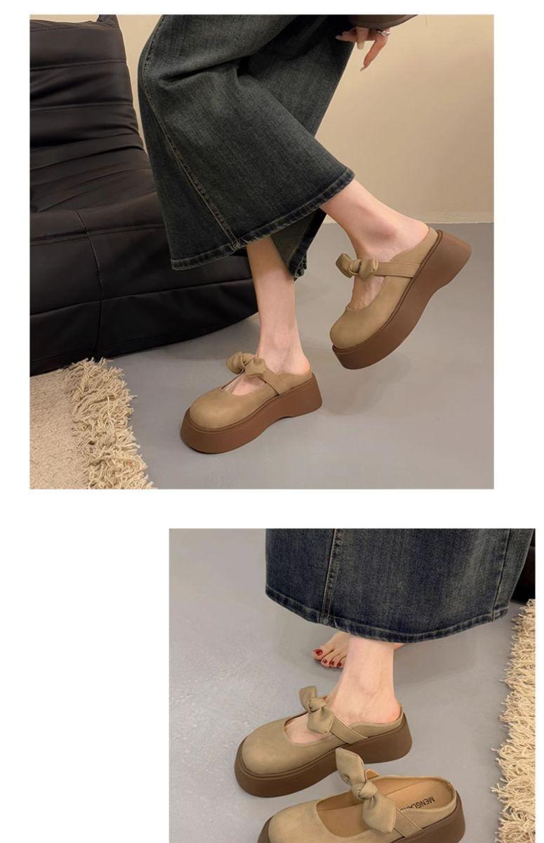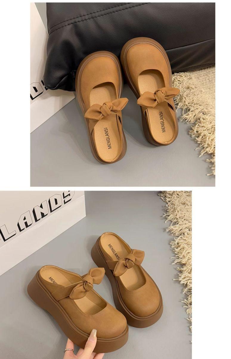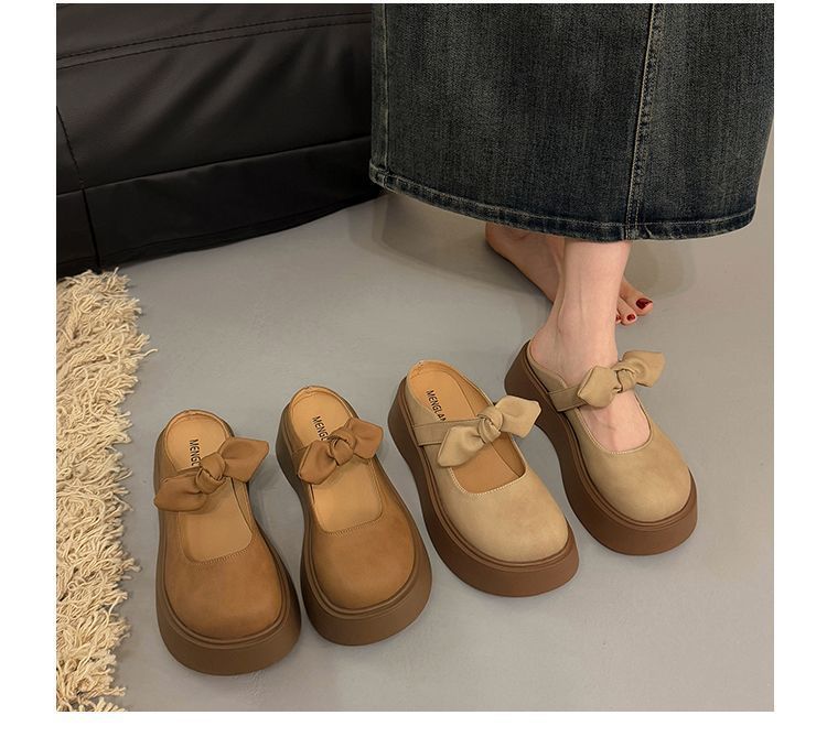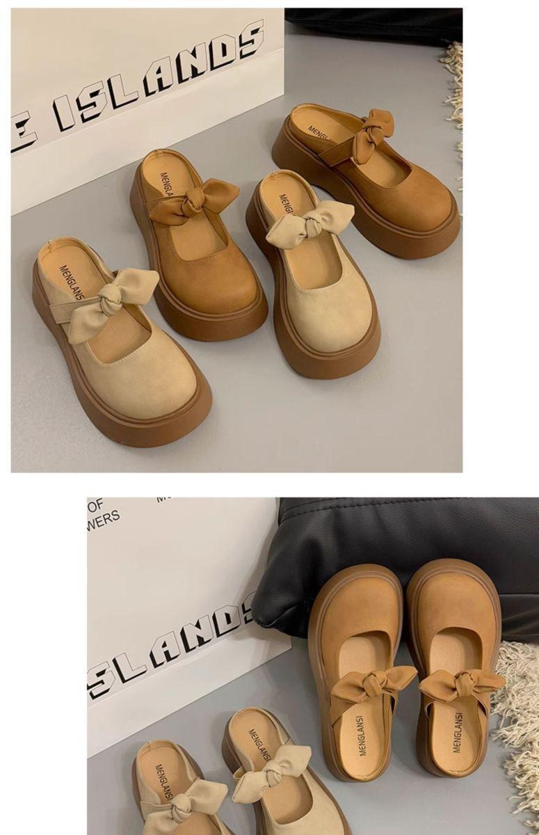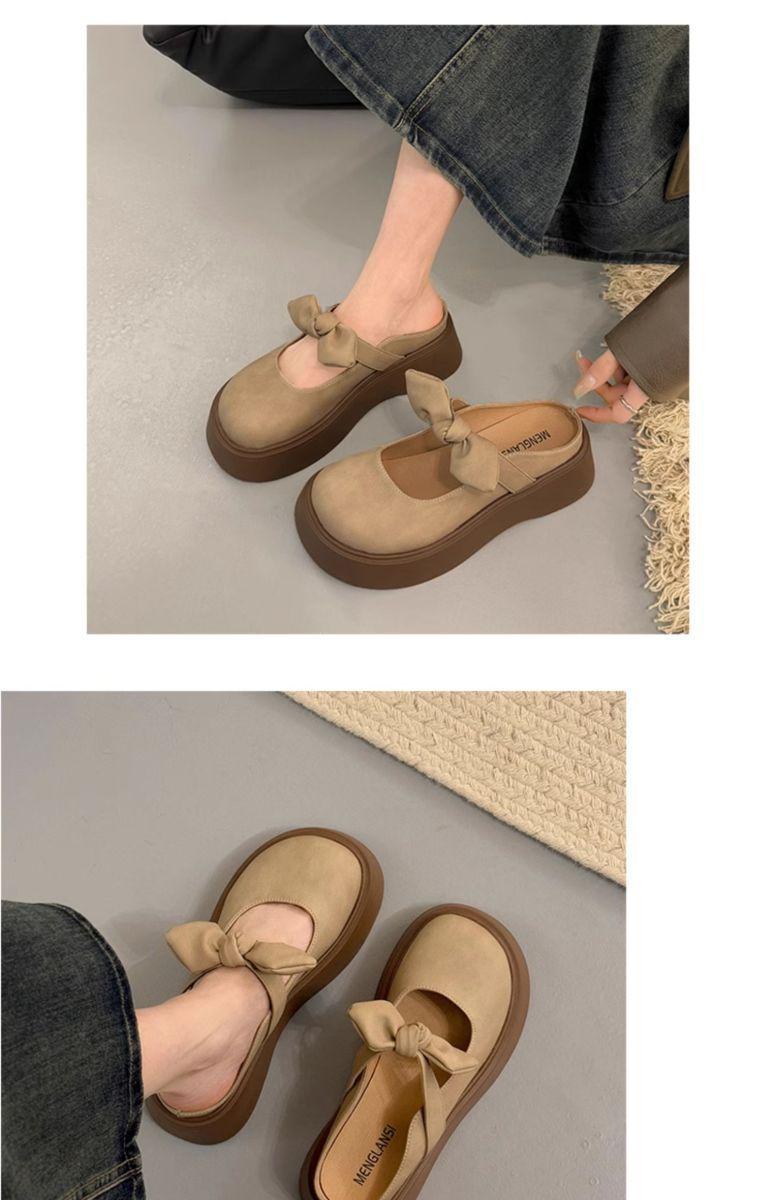 Zapatillas de tacón grueso con lazo en la puntera para mujer para uso exterior 2025 Nuevas Sandalias Mary Jane Francesas de Primavera y Verano