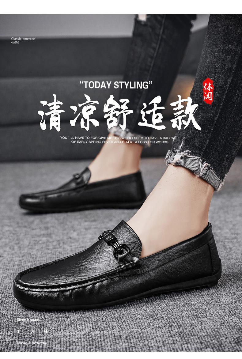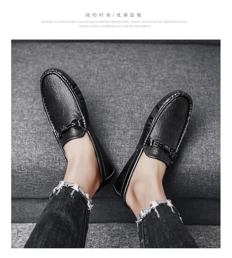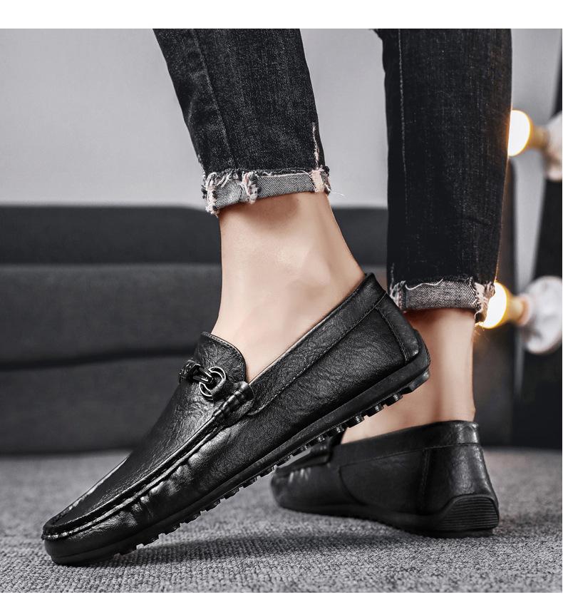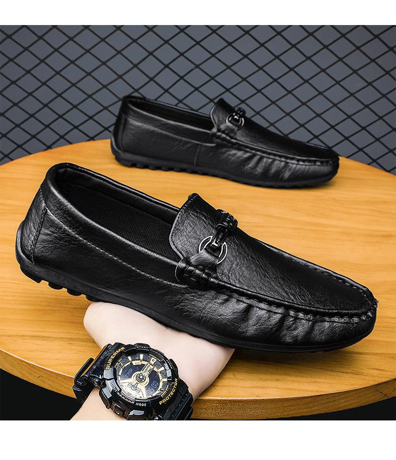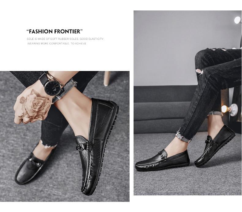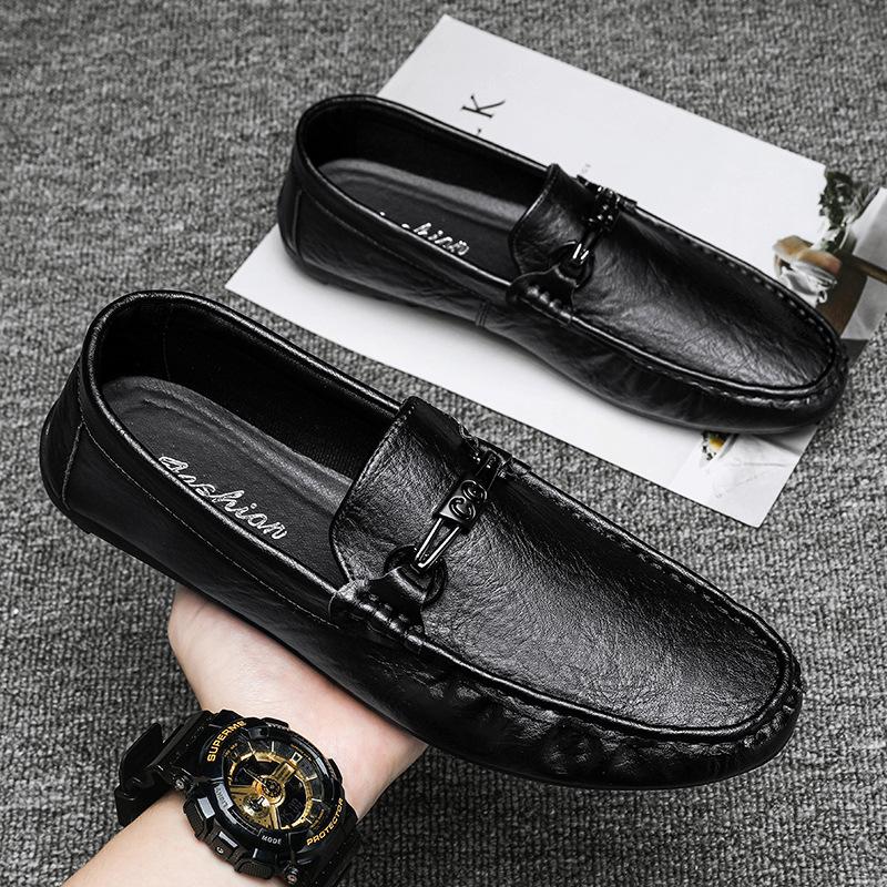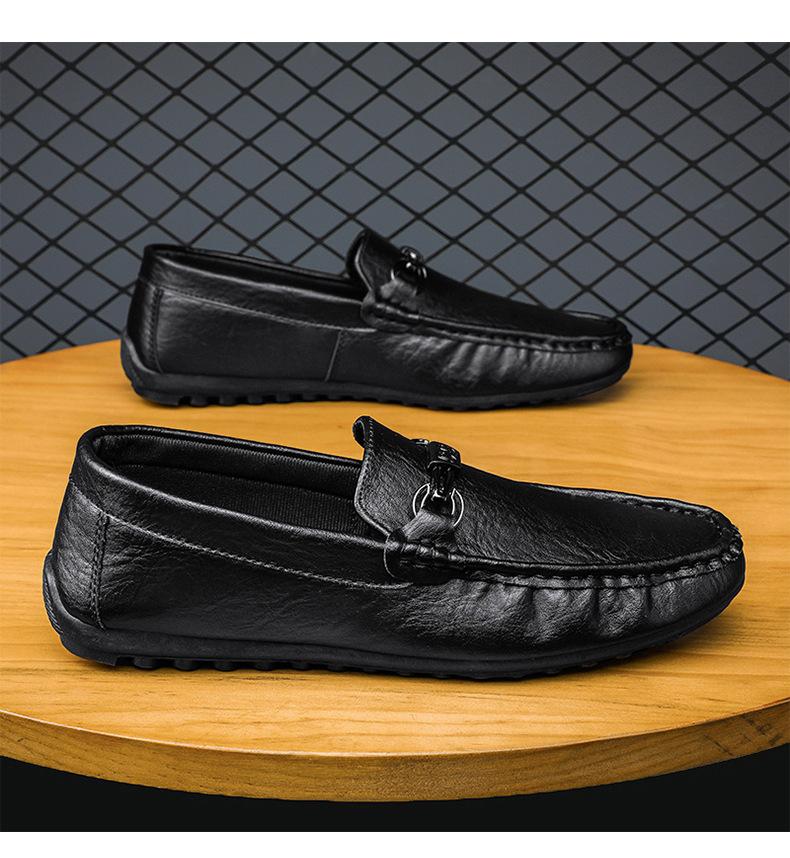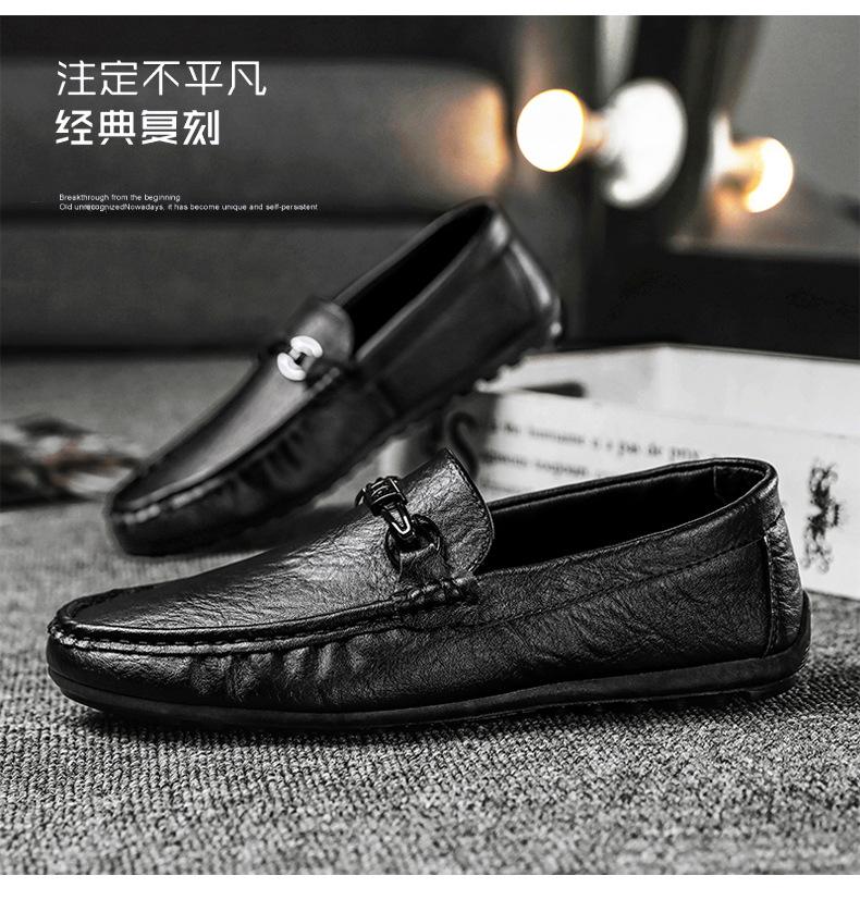 Zapatos de Cuero para Hombre de Diseño de Punta Redonda Negro y Café Transfronterizo Suela Blanda Estilo Británico Simple para Conducir Zapatos Casuales