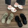 Sandalias de Punta con Correa Cruzada para Mujer para Verano 2025 Estilo Nicho Vacacional Combinable Sandalias Gruesas