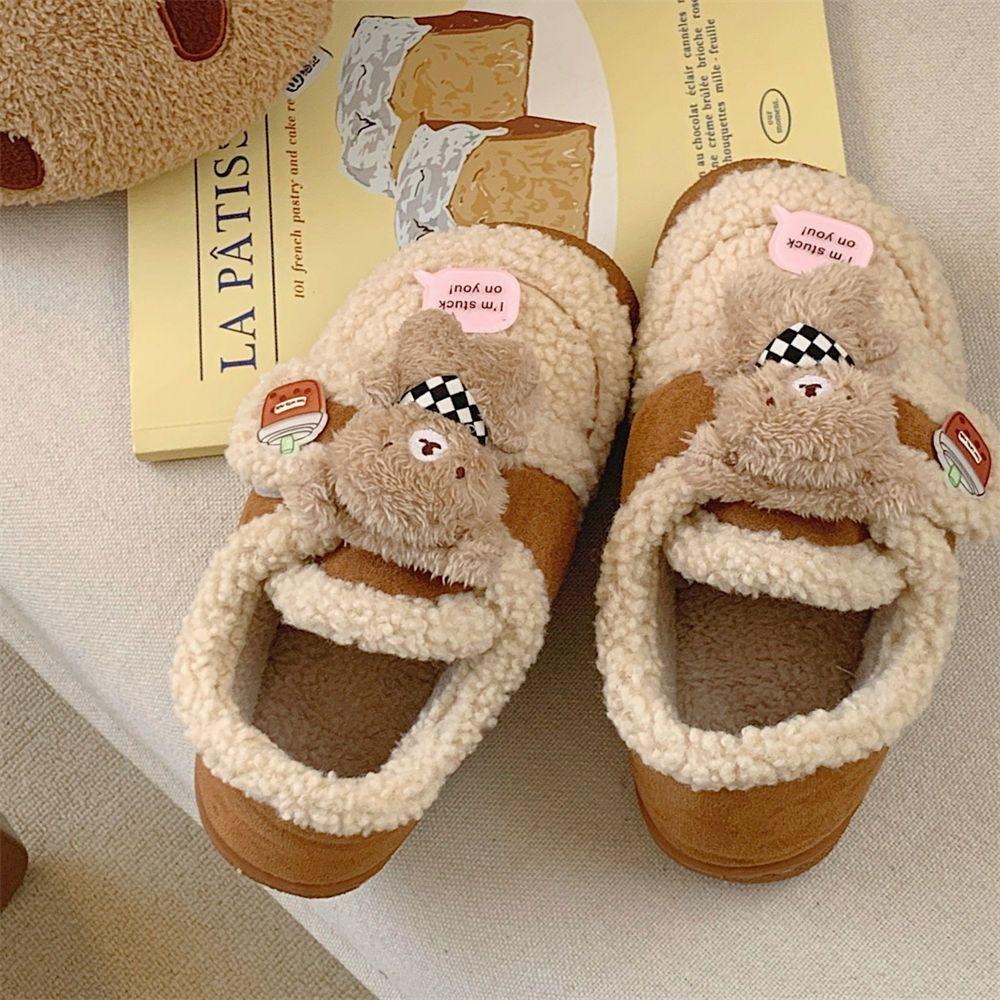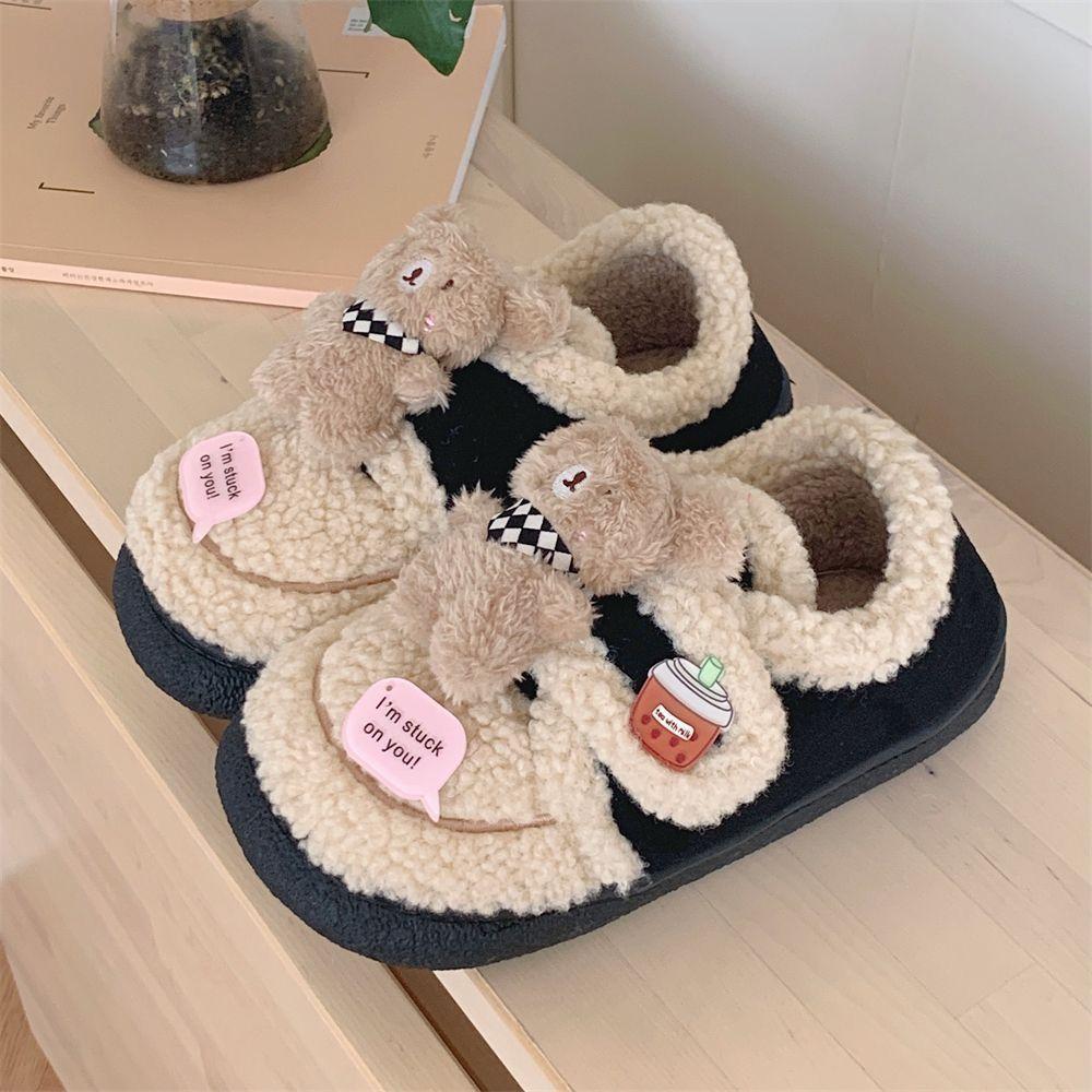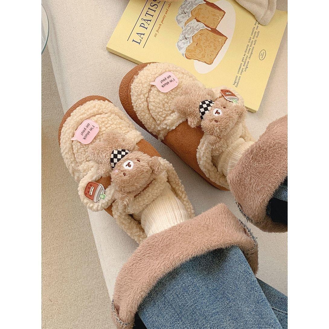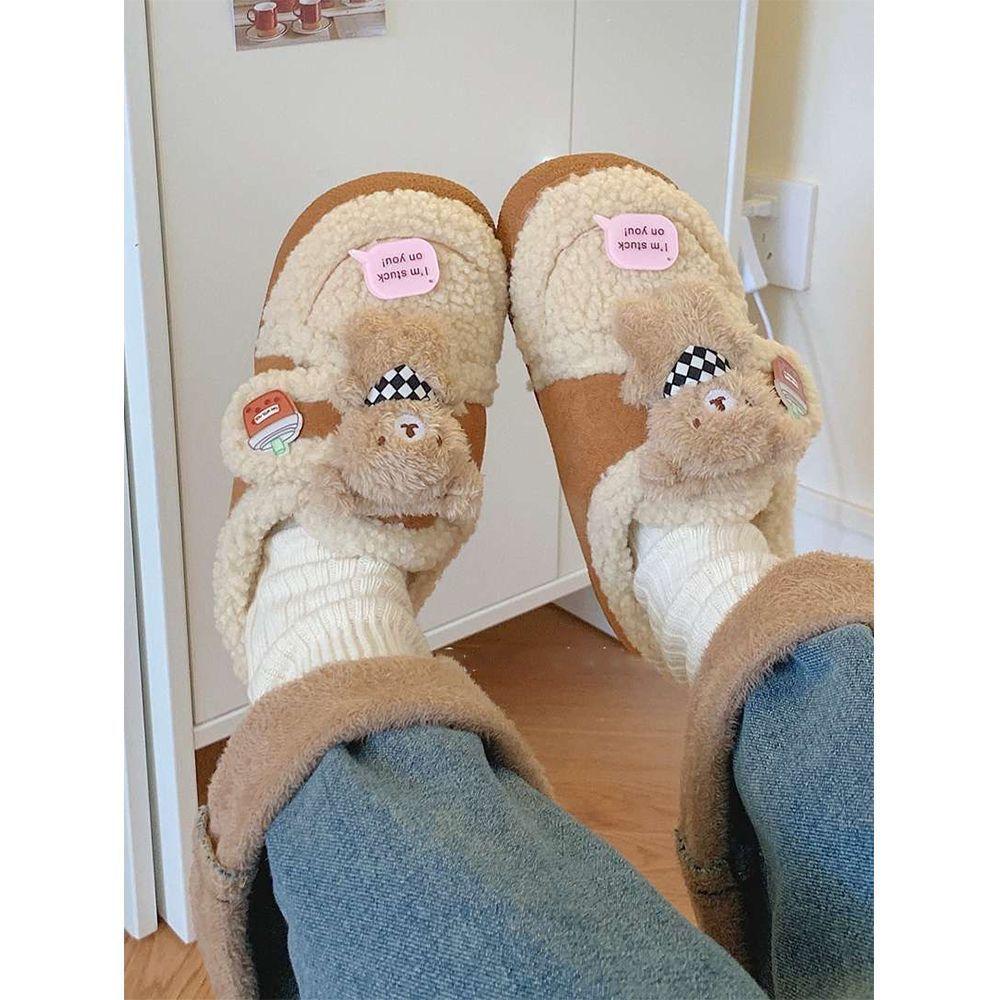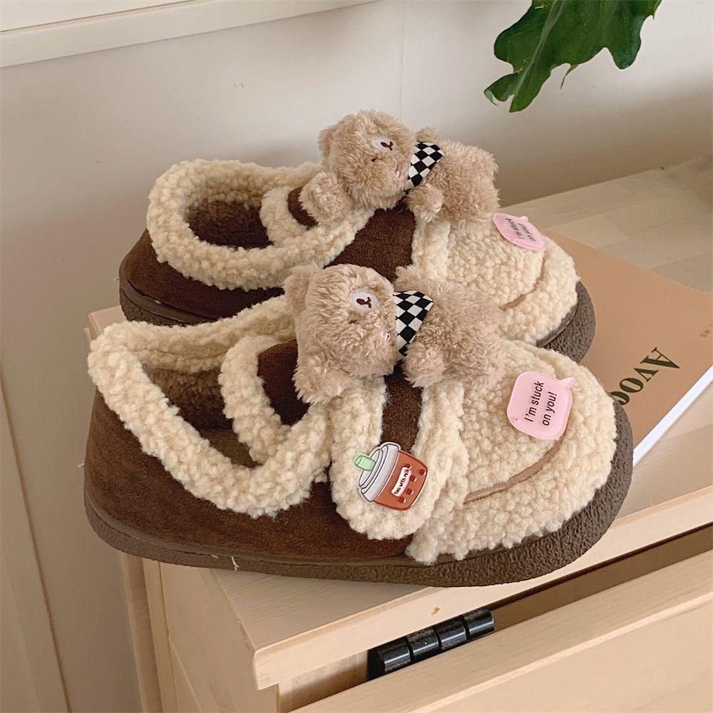 Pantuflas Cálidas de Algodón con Velcro Antideslizante para Exterior para Mujer Invierno 2024 Combinan con Todo Lindo Bufanda Oso Padre-hijo Zapatos de Guisante