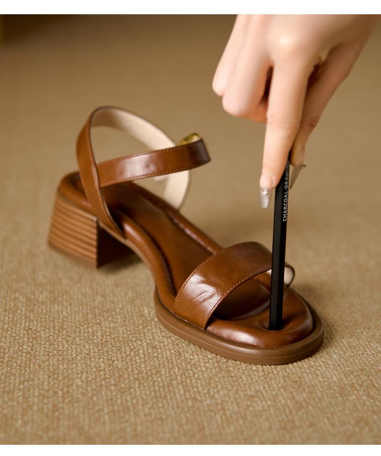 Sandalias de una palabra para mujer, retro, tacón grueso, verano, nuevo atuendo, zapatos romanos, suela suave, no cansan los pies, sandalias para vacaciones