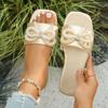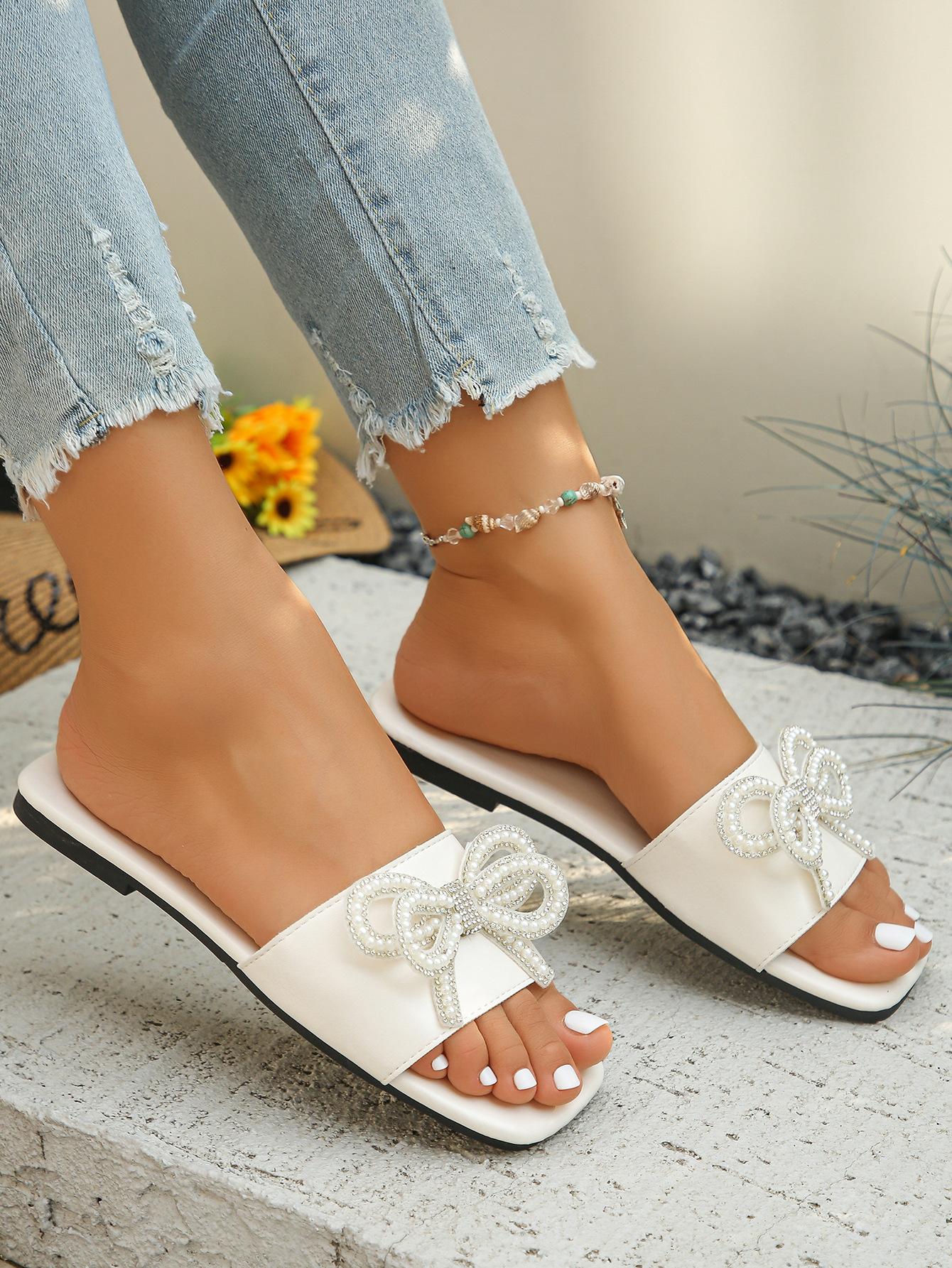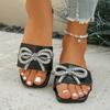 Sandalias y pantuflas planas para mujer, estilo francés, con cabeza cuadrada y diamantes de imitación, estilo informal, para exteriores de verano, 2025