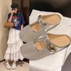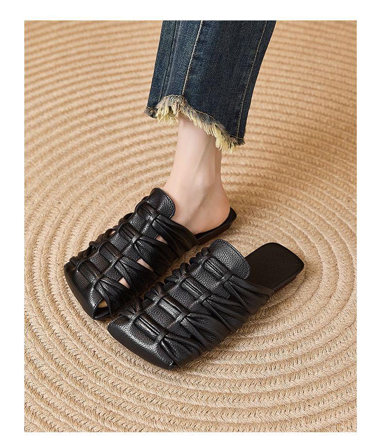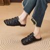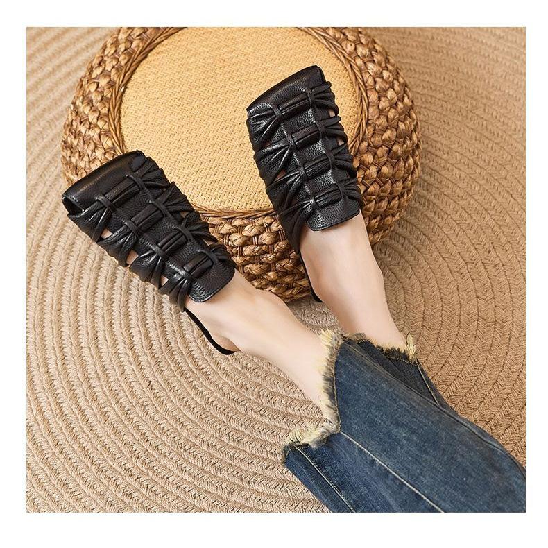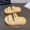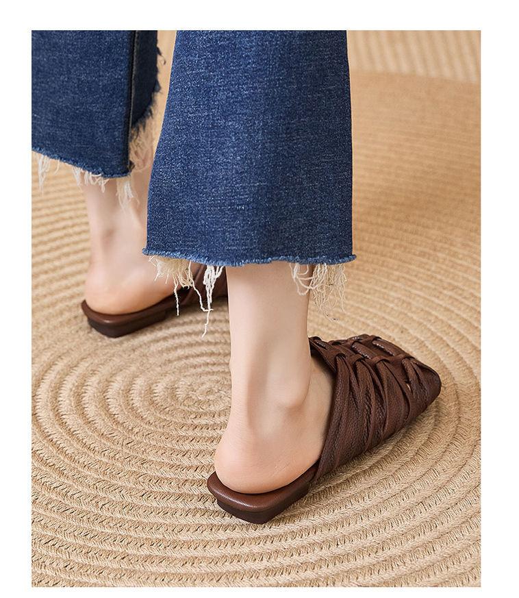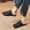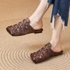 Pantuflas Marrones Trenzadas de Dedo a Dedo para Mujer 2025 Verano Nuevo Suela Blanda No Cansan Retro Punta Cuadrada Casual Medias Pantuflas