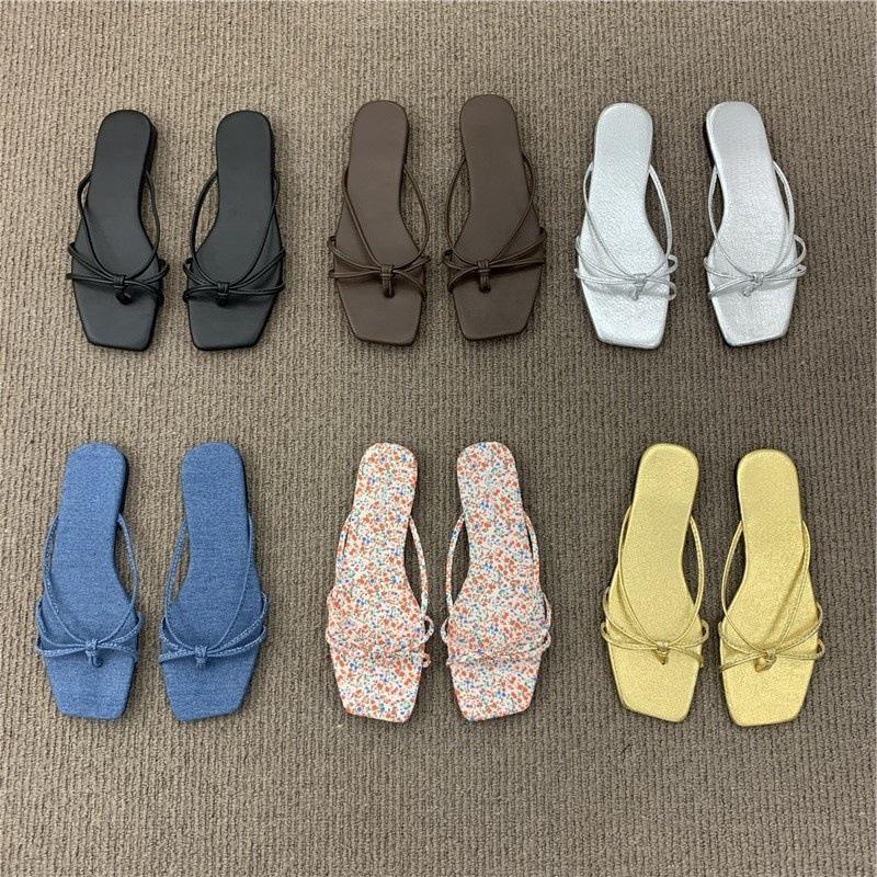 Chanclas planas francesas Zapatos de hadas Ropa exterior 2025 Nuevas Sandalias de playa de verano Sandalias plateadas