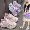 Sandalias de punta para niñas, zapatos de playa de verano, nuevos y bonitos zapatos de princesa para niñas, sandalias deportivas de suela suave con dibujos animados