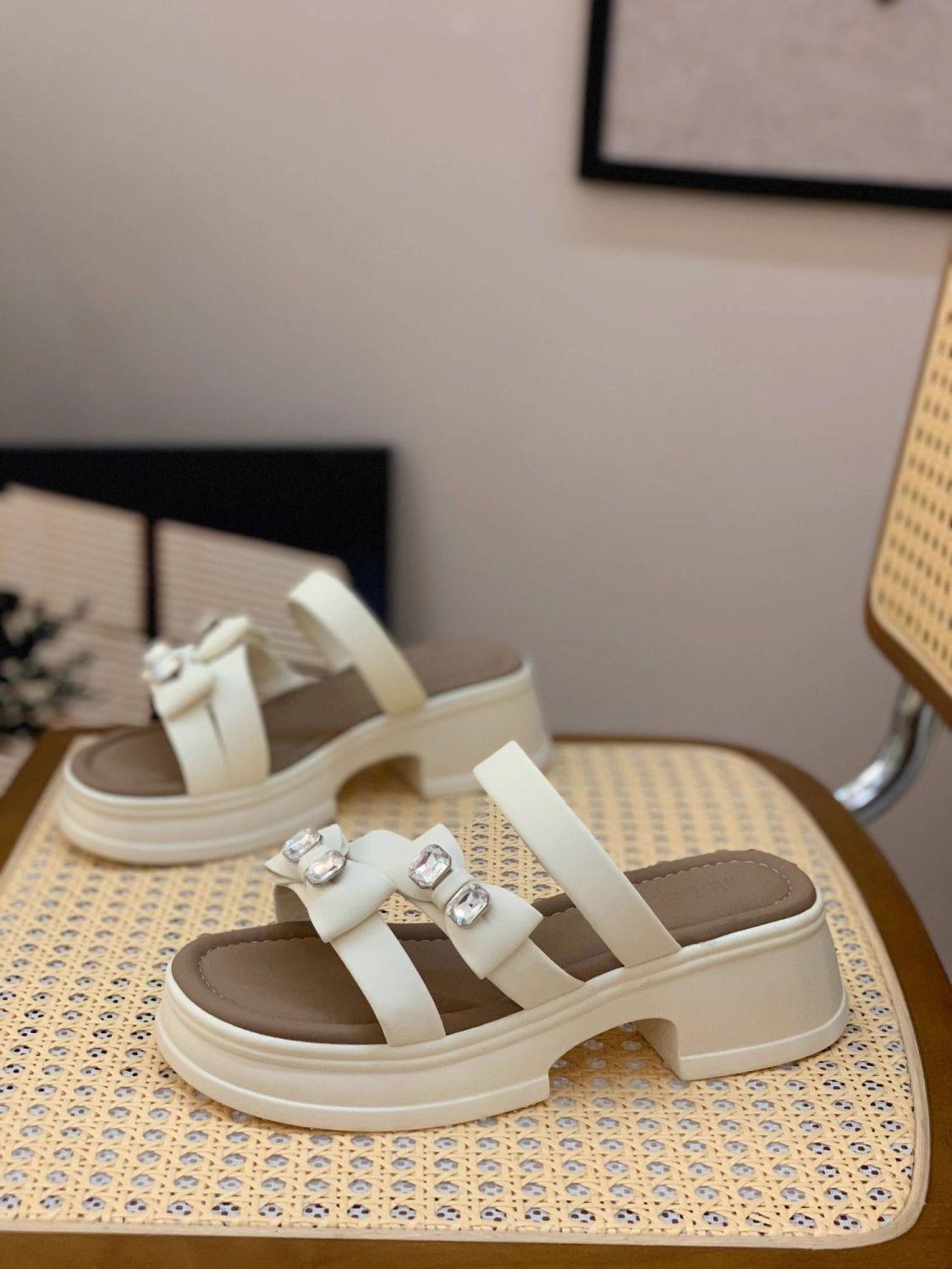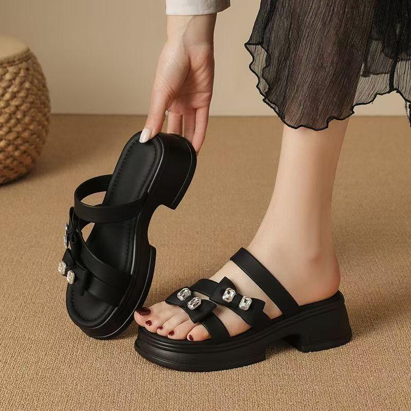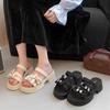 Sandalias Adelgazantes de Suela Gruesa, Pantuflas de Cuña a la Moda, Versátiles Zapatos de Plataforma de Verano 2025 para Mujer con Pedrería de Estilo Caliente