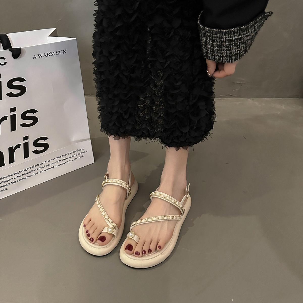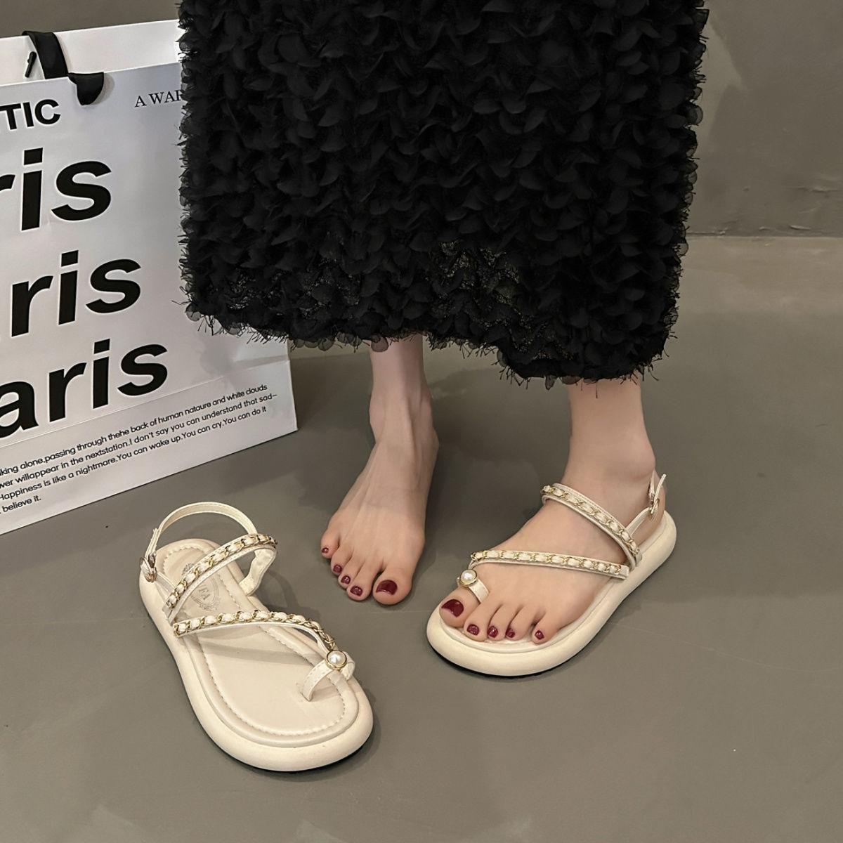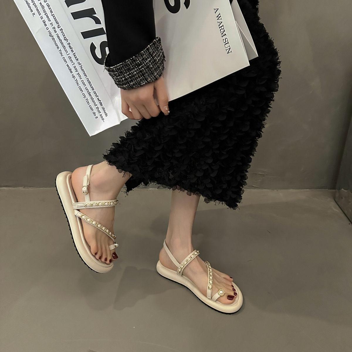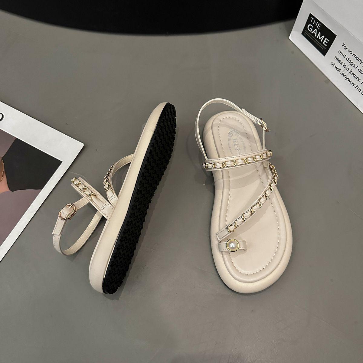 Sandalias de playa con tiras antideslizantes para mujer, calzado exterior de verano 2024, estilo hada de celebridades de Internet, zapatos planos romanos