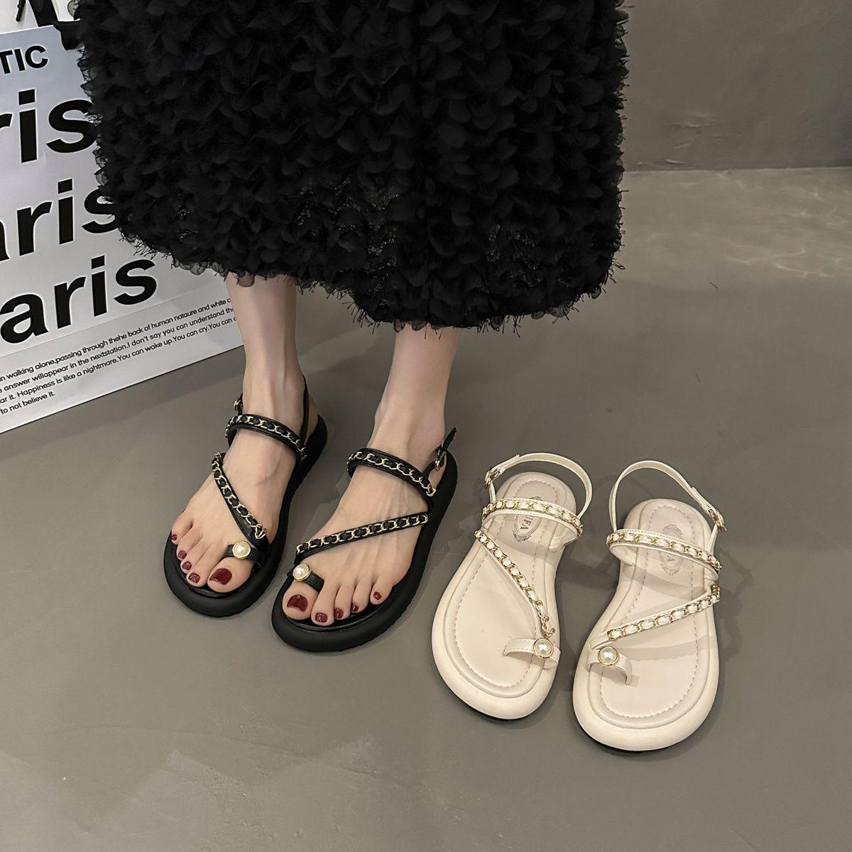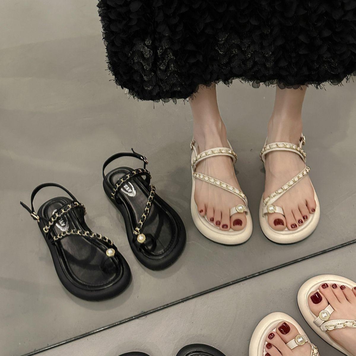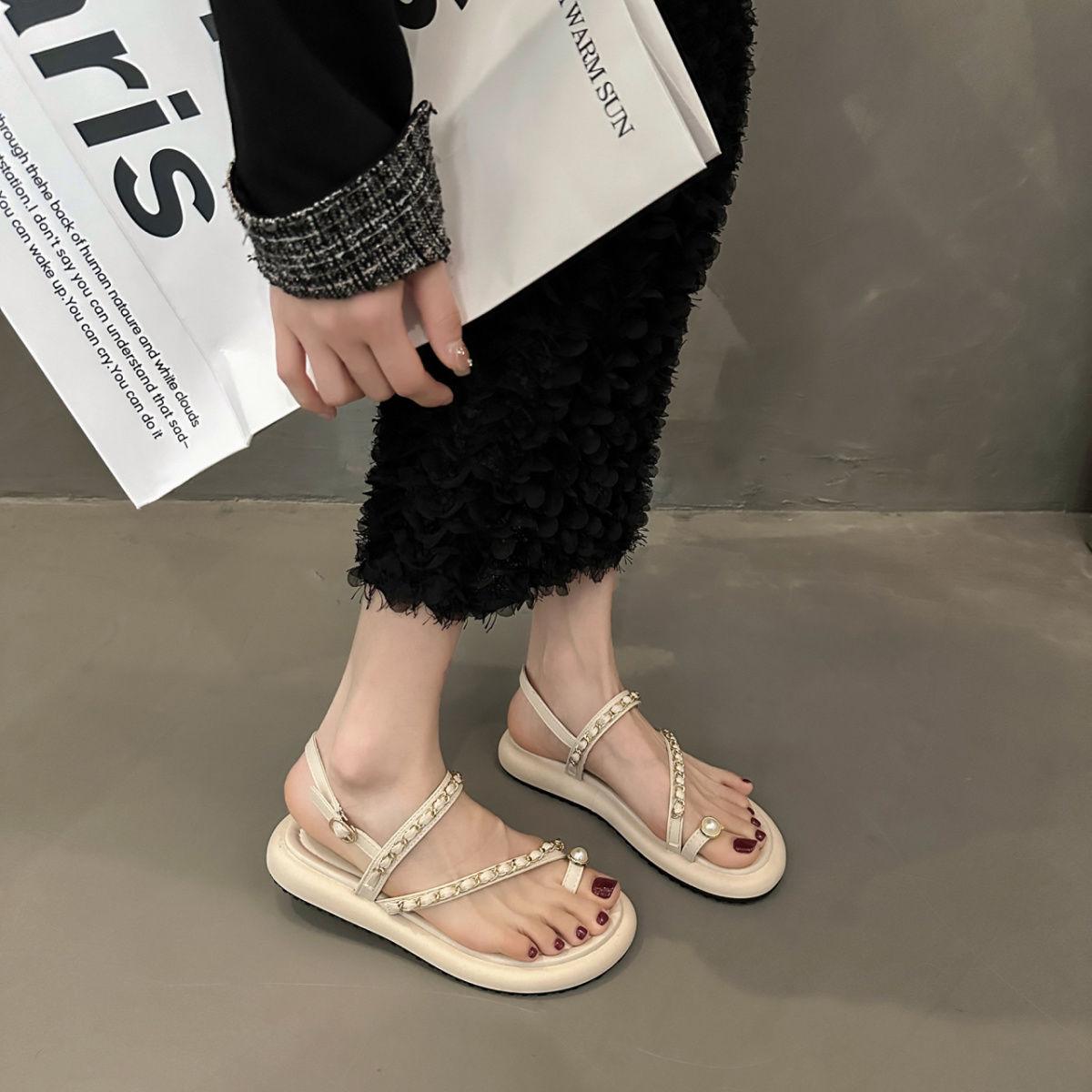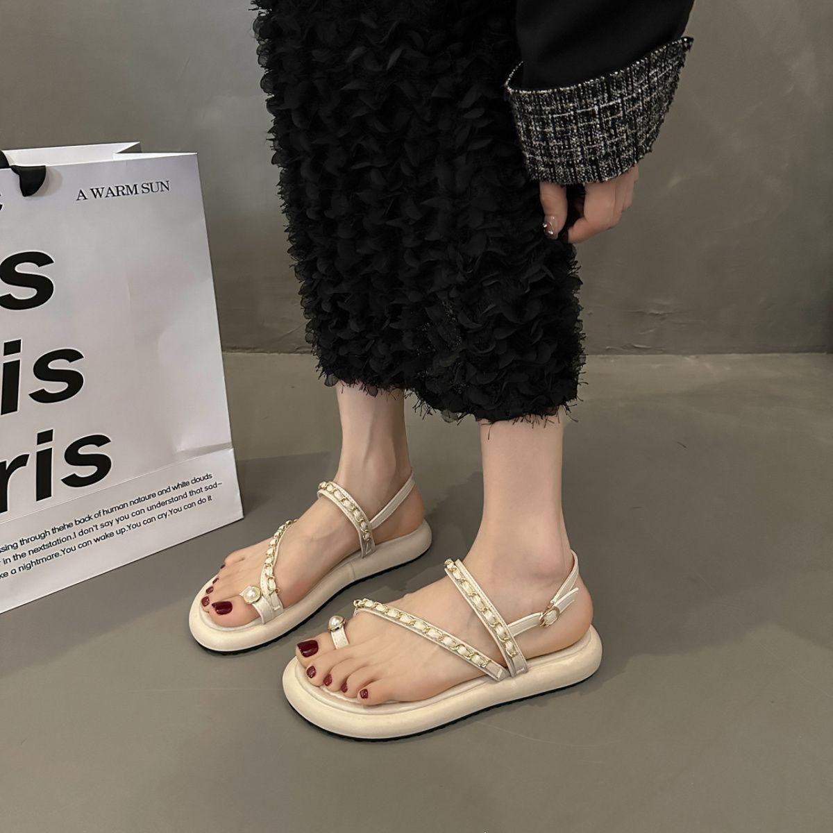 Sandalias de playa con tiras antideslizantes para mujer, calzado exterior de verano 2024, estilo hada de celebridades de Internet, zapatos planos romanos