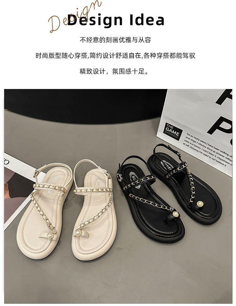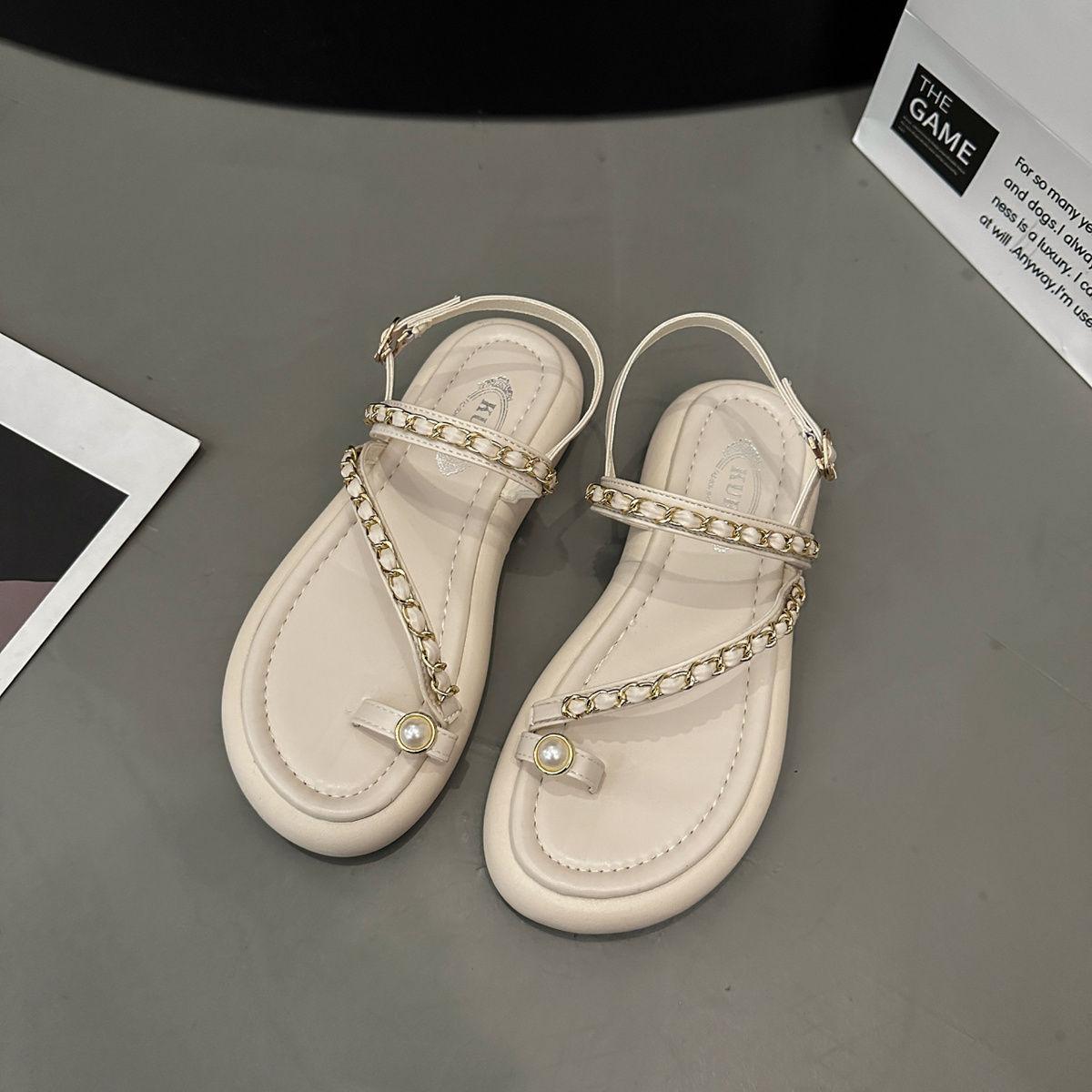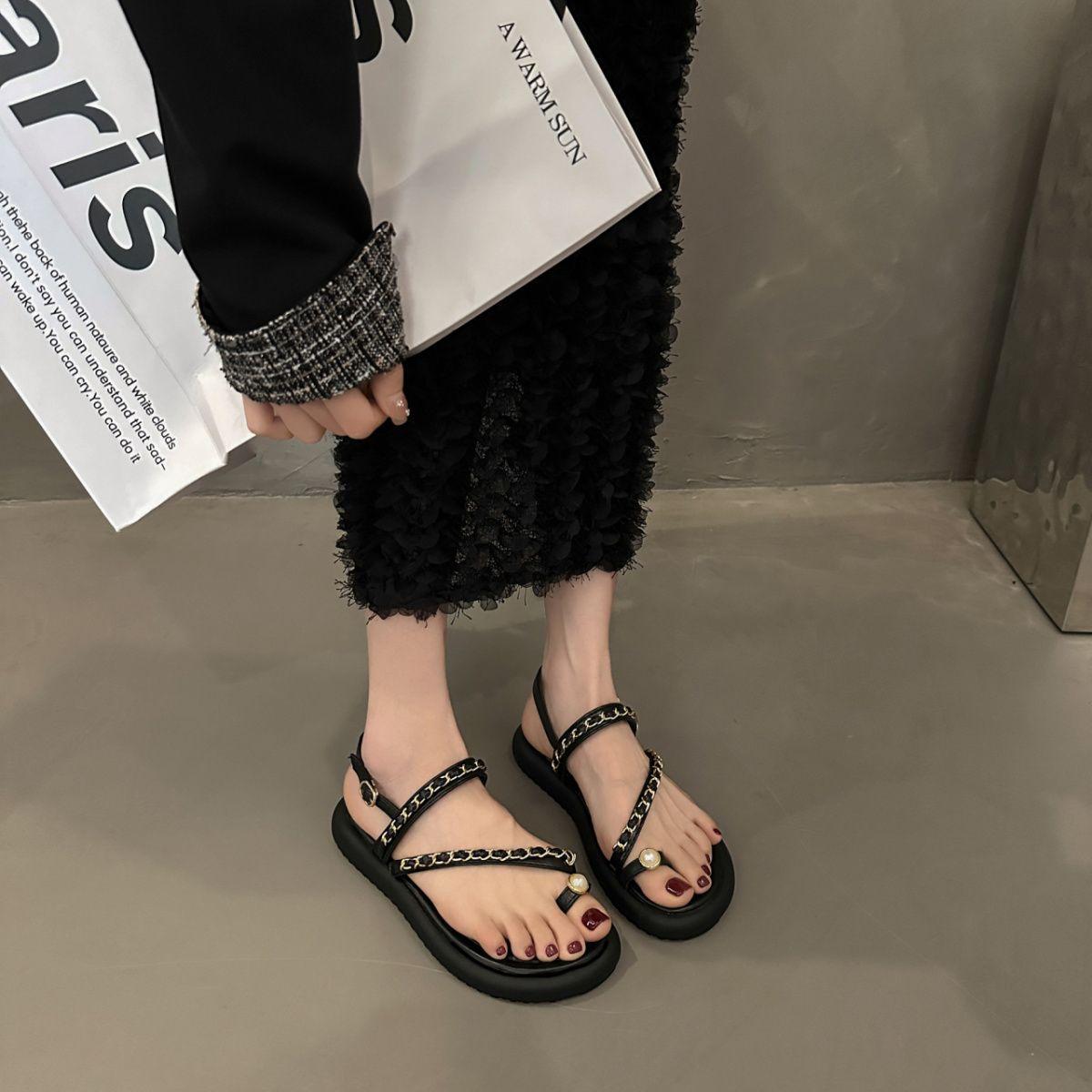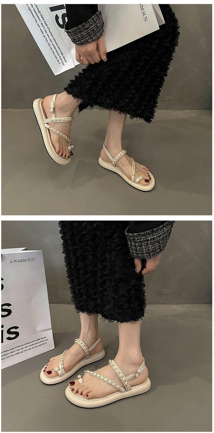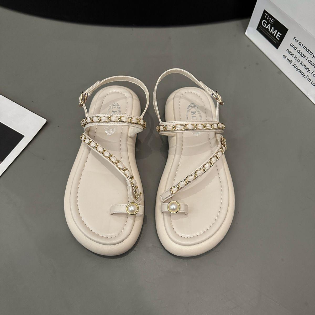 Sandalias de playa con tiras antideslizantes para mujer, calzado exterior de verano 2024, estilo hada de celebridades de Internet, zapatos planos romanos