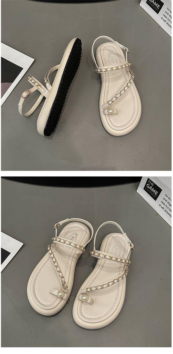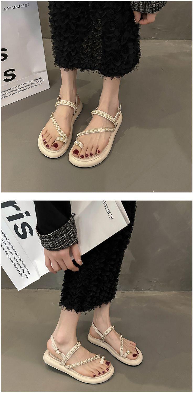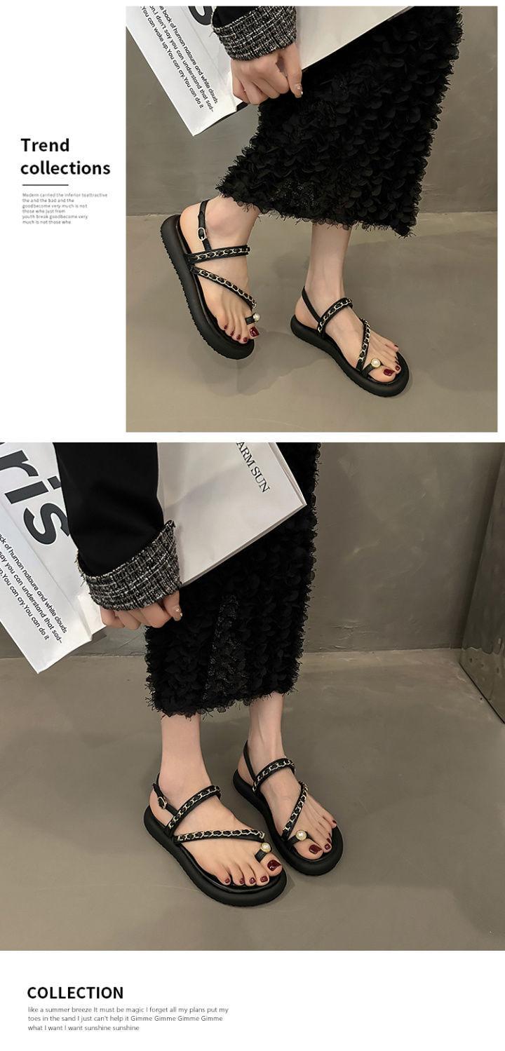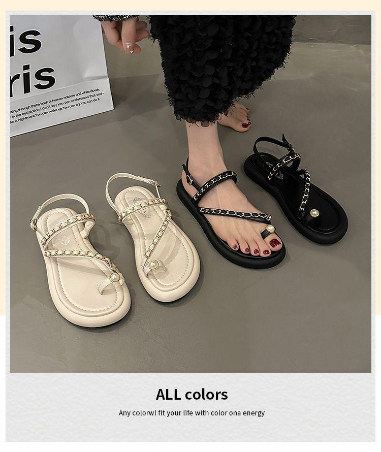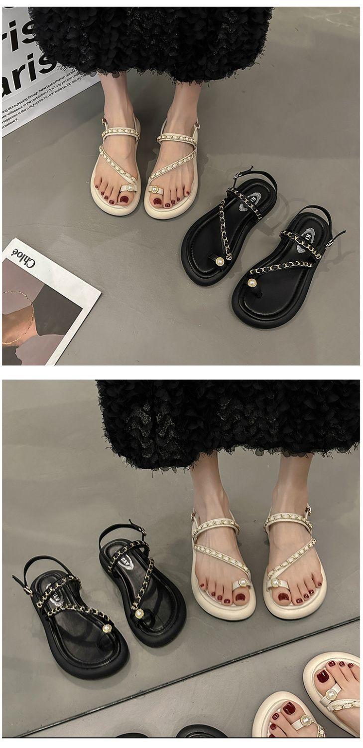 Sandalias de playa con tiras antideslizantes para mujer, calzado exterior de verano 2024, estilo hada de celebridades de Internet, zapatos planos romanos