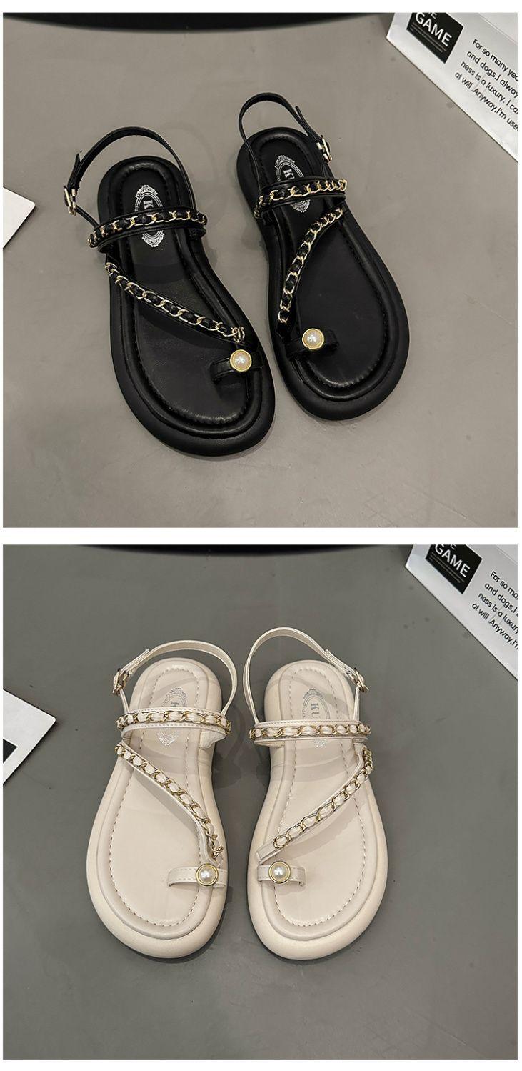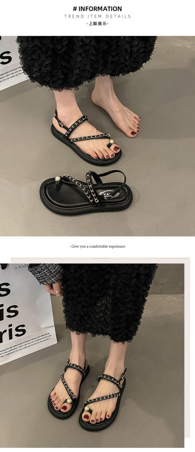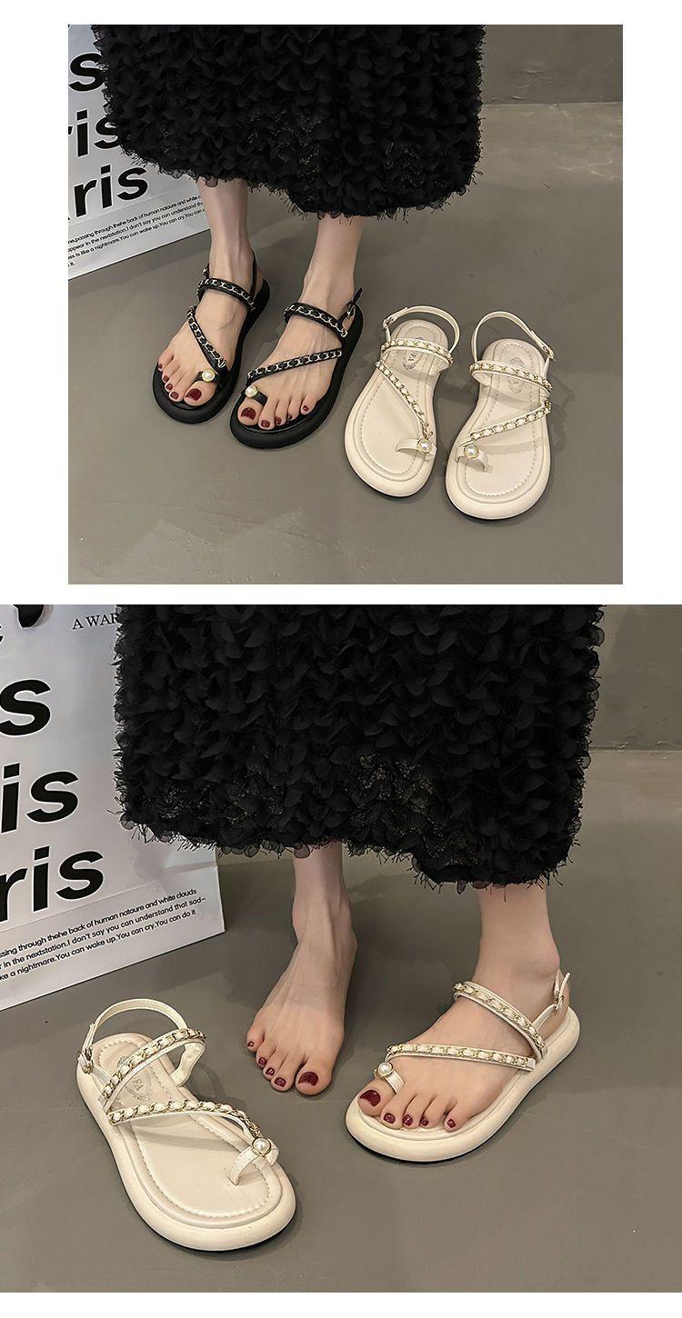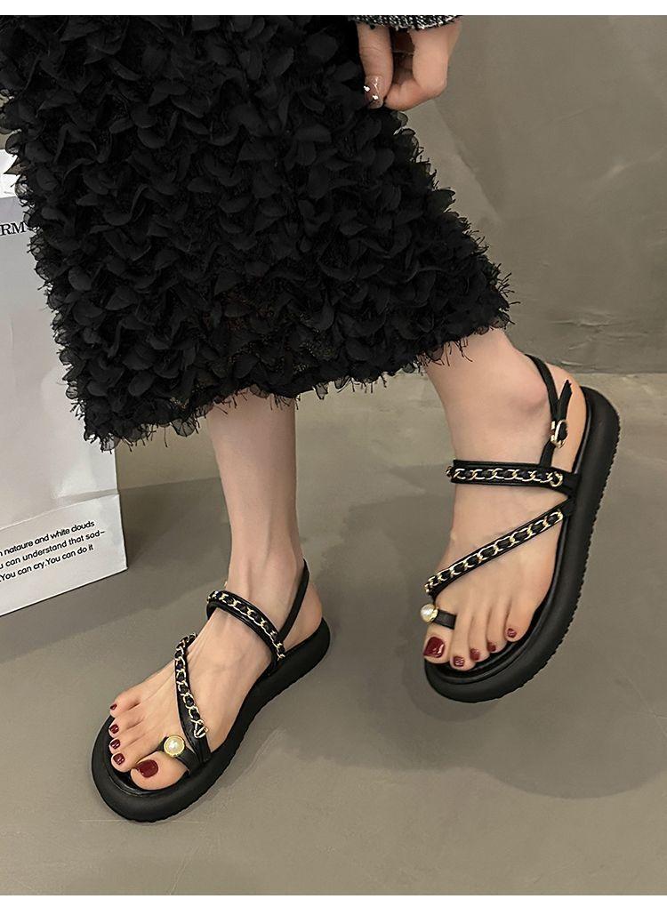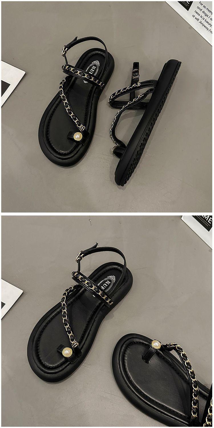 Sandalias de playa con tiras antideslizantes para mujer, calzado exterior de verano 2024, estilo hada de celebridades de Internet, zapatos planos romanos